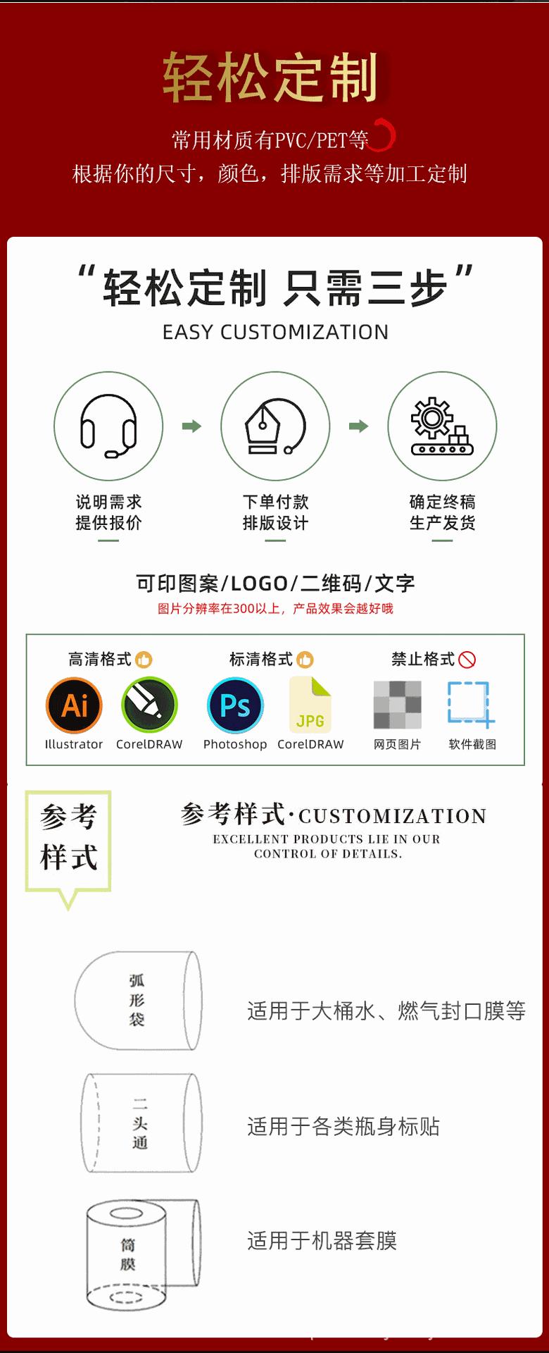 Película de Embalaje Impresión a Color Químico de Uso Diario Personalizado Película de Etiqueta Película Termorretráctil para Cuerpo de Botella Etiqueta Película Termorretráctil Sellado de Plástico Fabricante