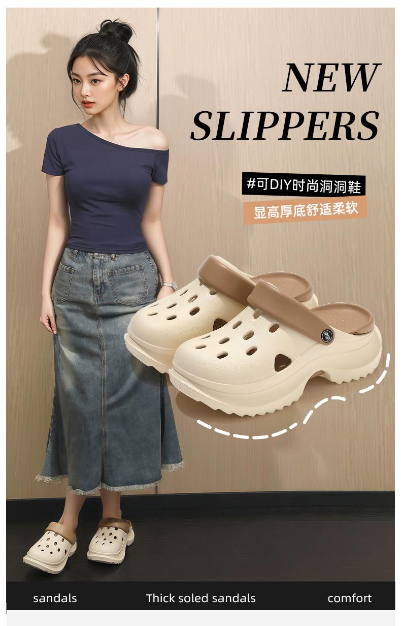 Zapatos de agujeros de suela gruesa para mujer, ropa exterior de verano, sandalias transpirables, playa casual, antideslizantes, para aumentar la altura, resistentes al desgaste, pantuflas frescas para mujer, venta al por mayor
