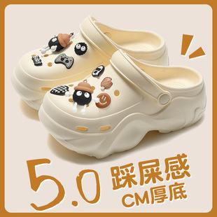 Zapatos de suela gruesa con agujero para mujer en verano, sandalias de playa de suela gruesa antideslizantes, puntera cerrada, sensación de pisada de mierda, sandalias con hebilla para uso doméstico en verano al por mayor