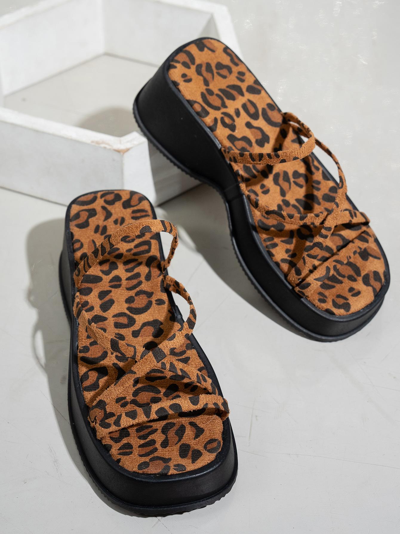 Comercio Exterior Talla Europea Pantuflas Estampado Leopardo Transfronterizas Pantuflas de Playa Verano para Mujer Moda Sandalias y Pantuflas de Suela Gruesa Tendencia