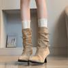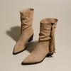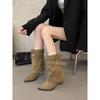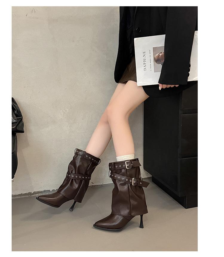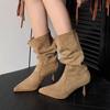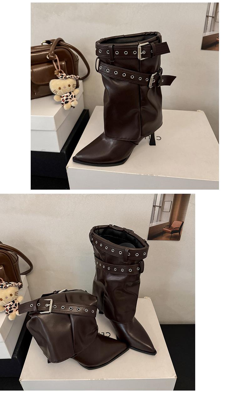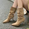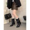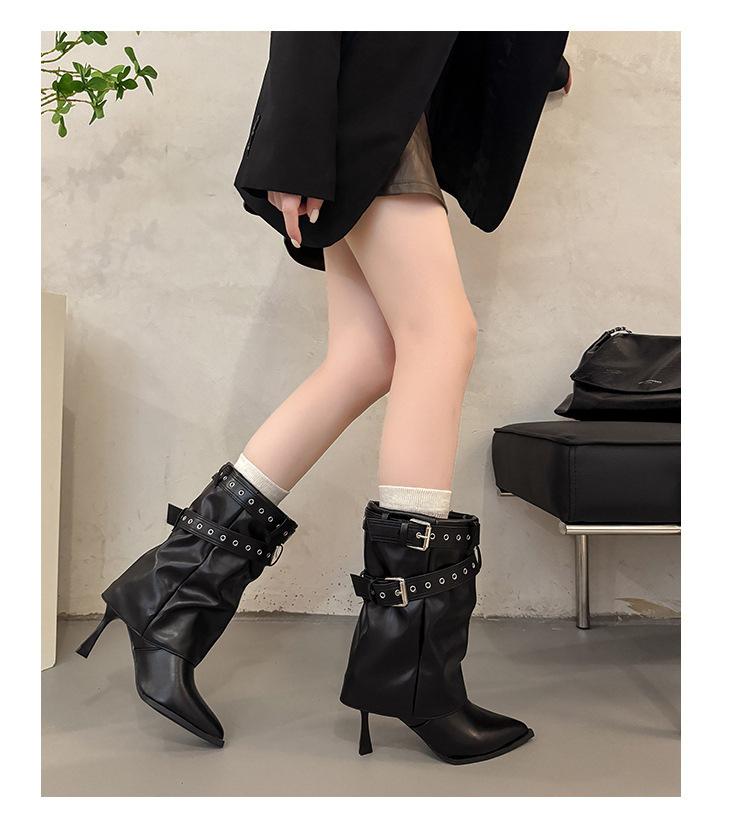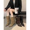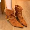 Botas Retro Stiletto de Media Caña para Mujer 2025 Nuevo Otoño/Invierno Versátil Punta Afilada Botas Vaqueras Occidentales Hebilla Botas de Moda