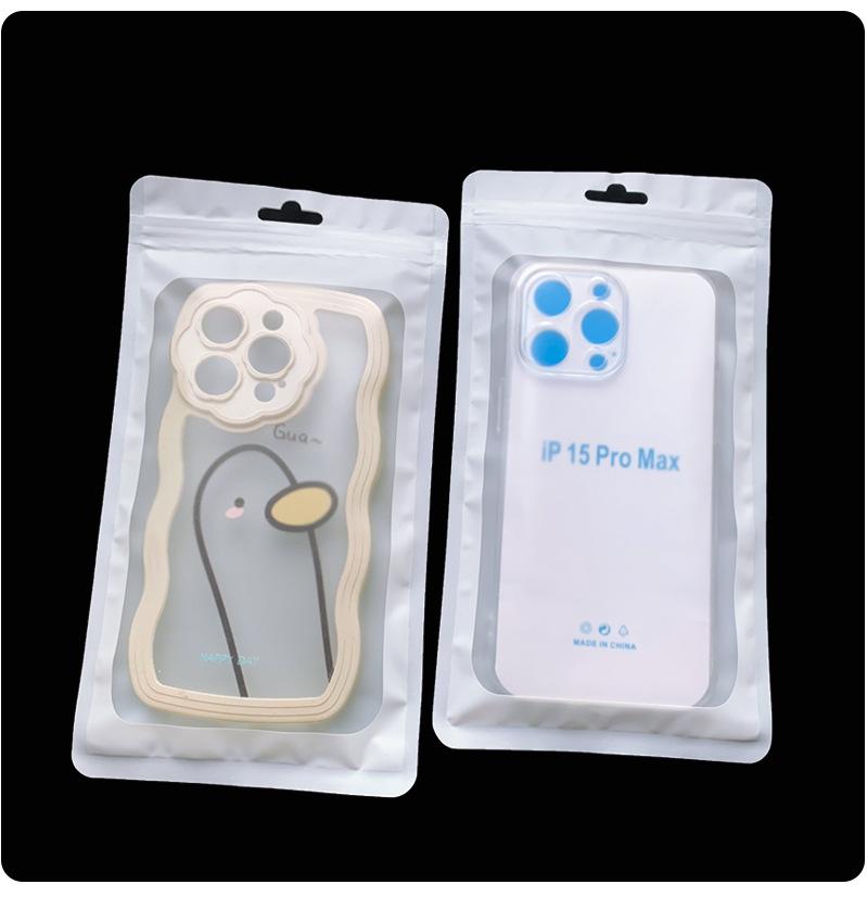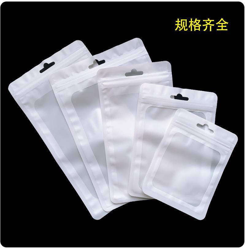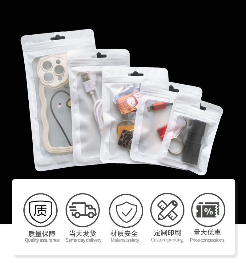 Película Blanca Escarchada Mate Perlada Yin y Yang Hueso Bolsa Ziplock Engrosada Funda para Teléfono Móvil Bolsa de Embalaje para Cable de Datos Venta al por Mayor