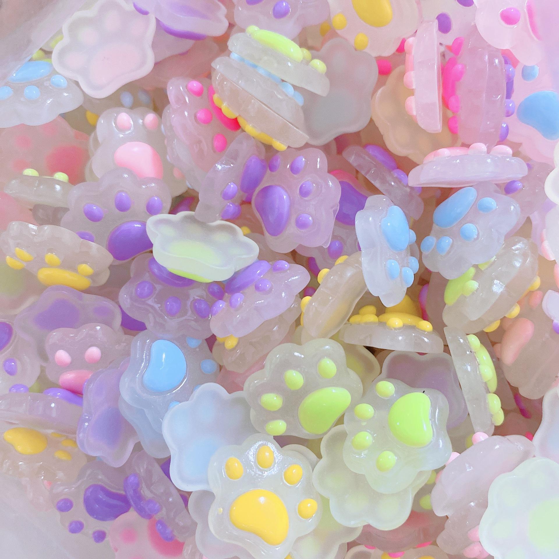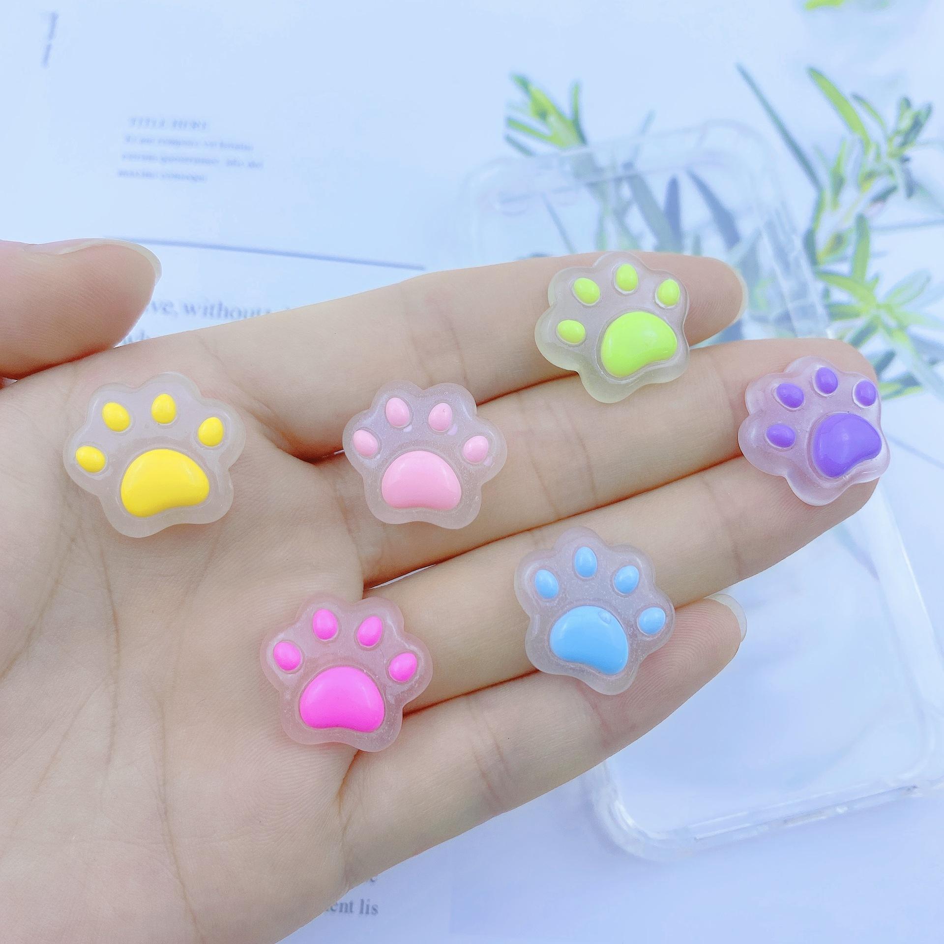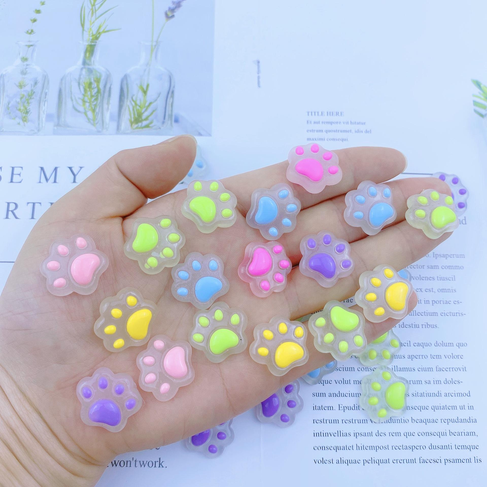 Huellas de garras de gato luminosas de dibujos animados, gelatina de hielo, color transparente, accesorios de resina, horquilla para el cabello DIY, pegamento en crema, material para funda de teléfono móvil