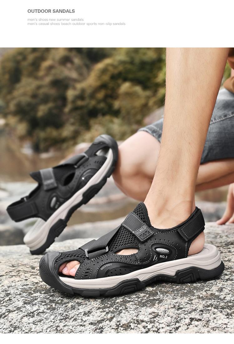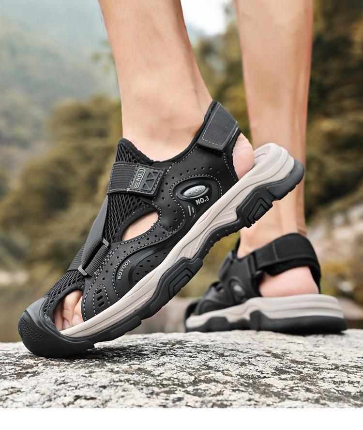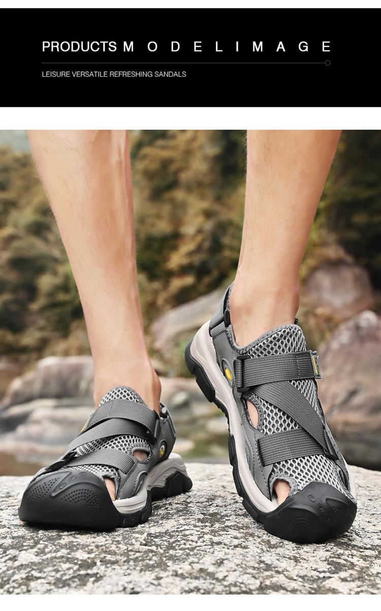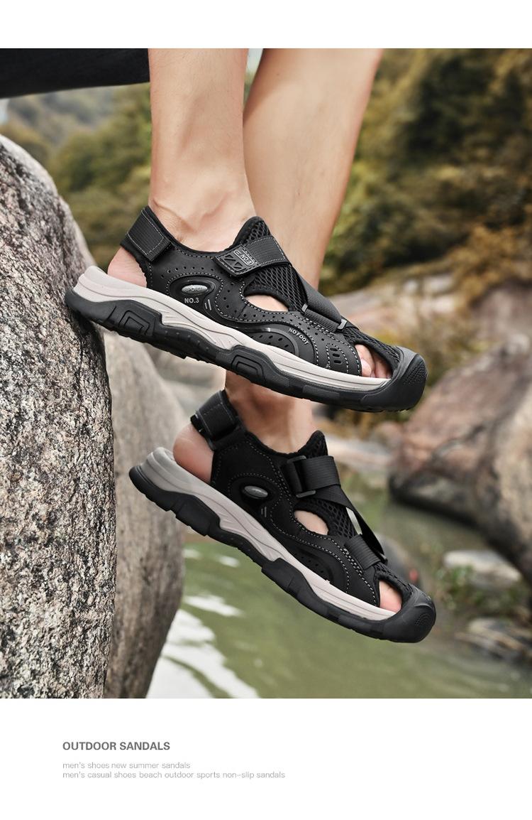 Sapatos Masculinos de Couro Genuíno para Exterior Tamanho Plus Mais Vendidos Verão Novo Baotou Esportivo Casual Solado Macio Sandálias de Praia