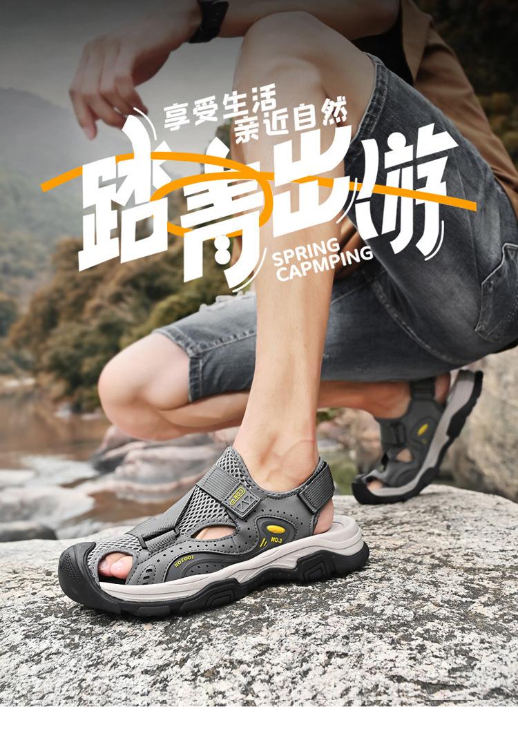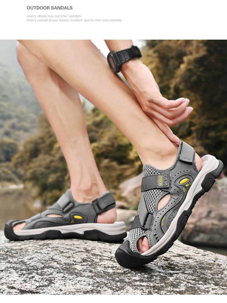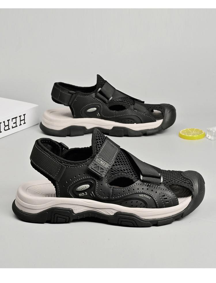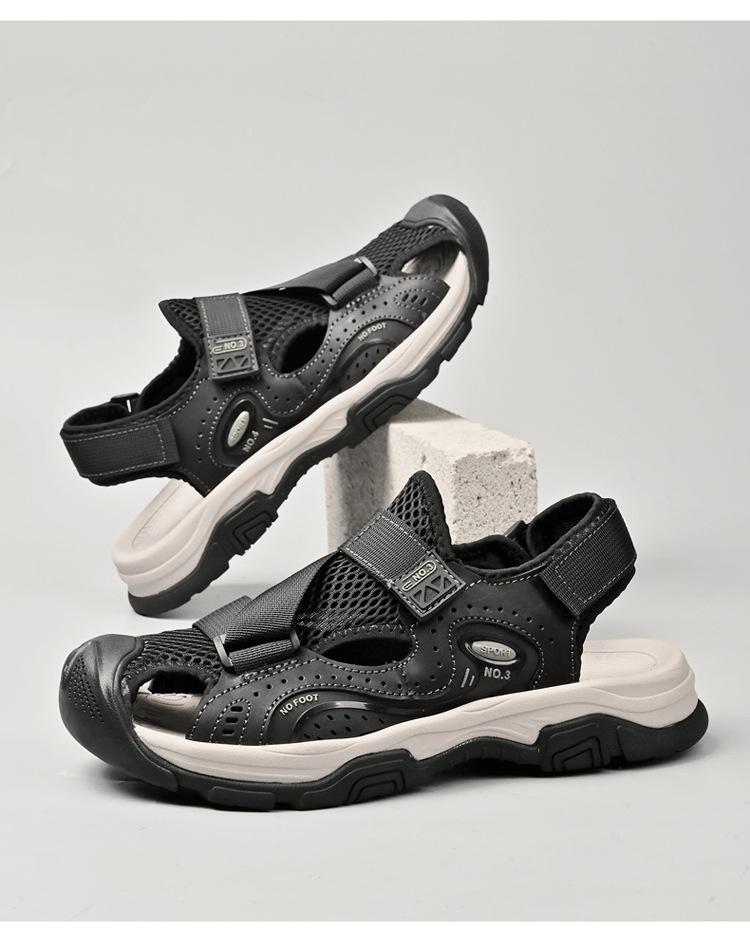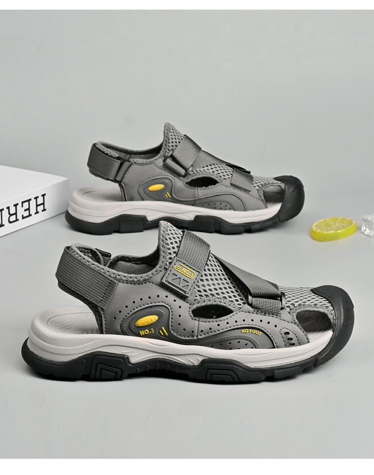 Sapatos Masculinos de Couro Genuíno para Exterior Tamanho Plus Mais Vendidos Verão Novo Baotou Esportivo Casual Solado Macio Sandálias de Praia