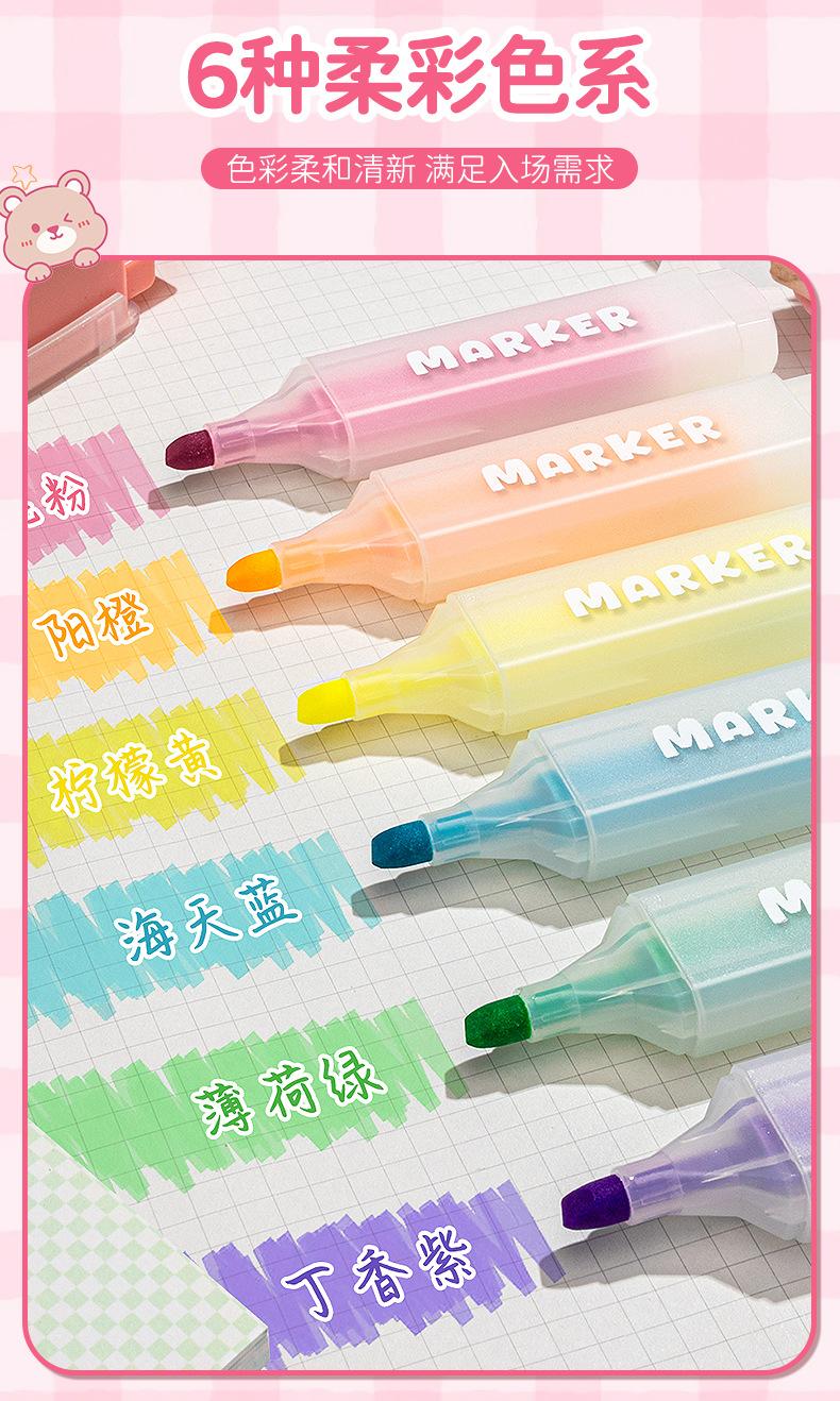 True color highlighter fluorescent marker pen for students, colorful marker pen for primary school students an...