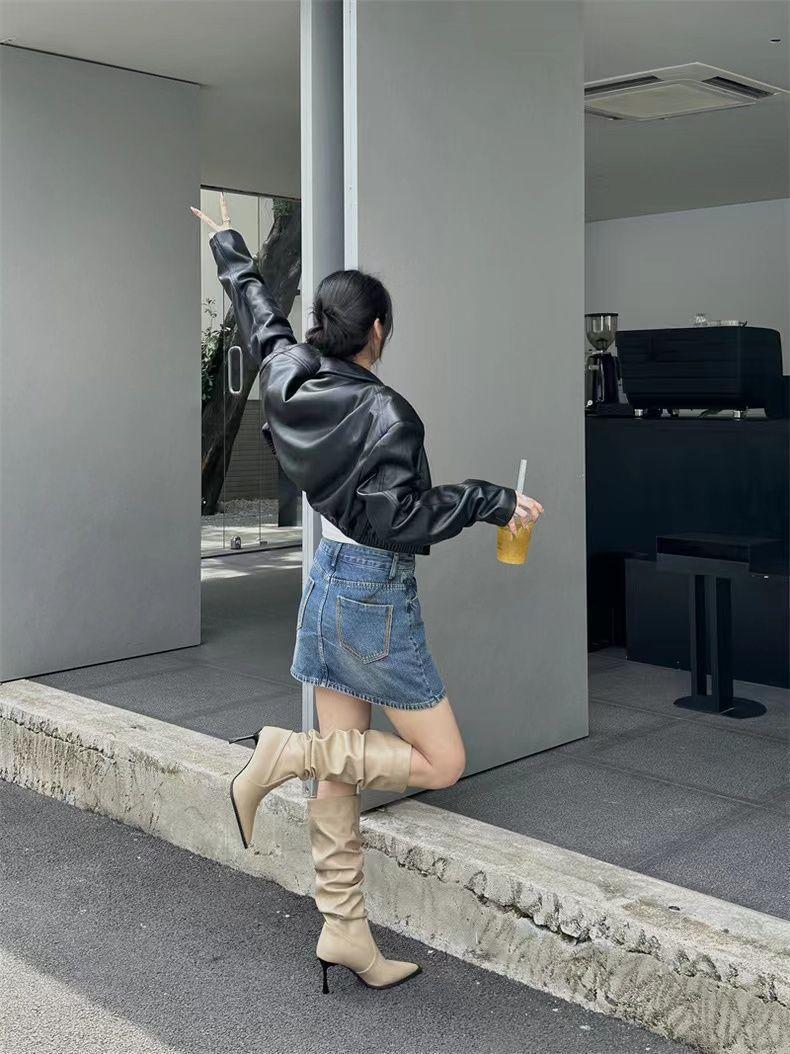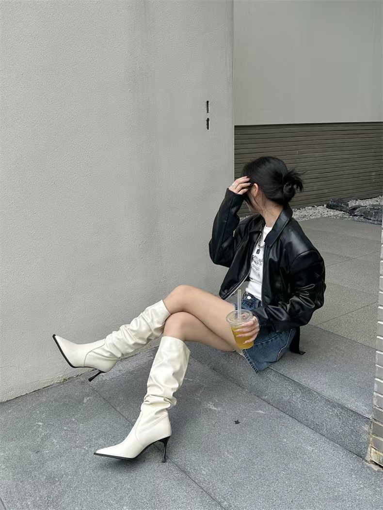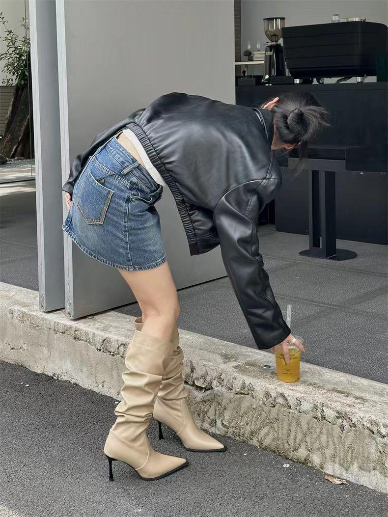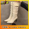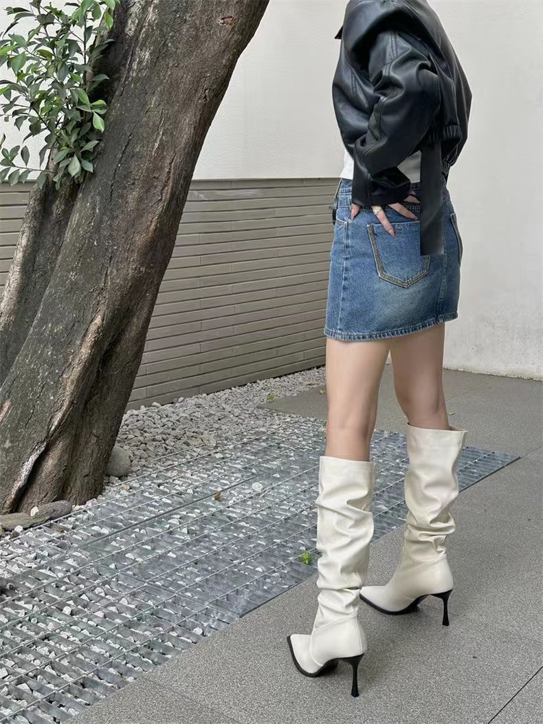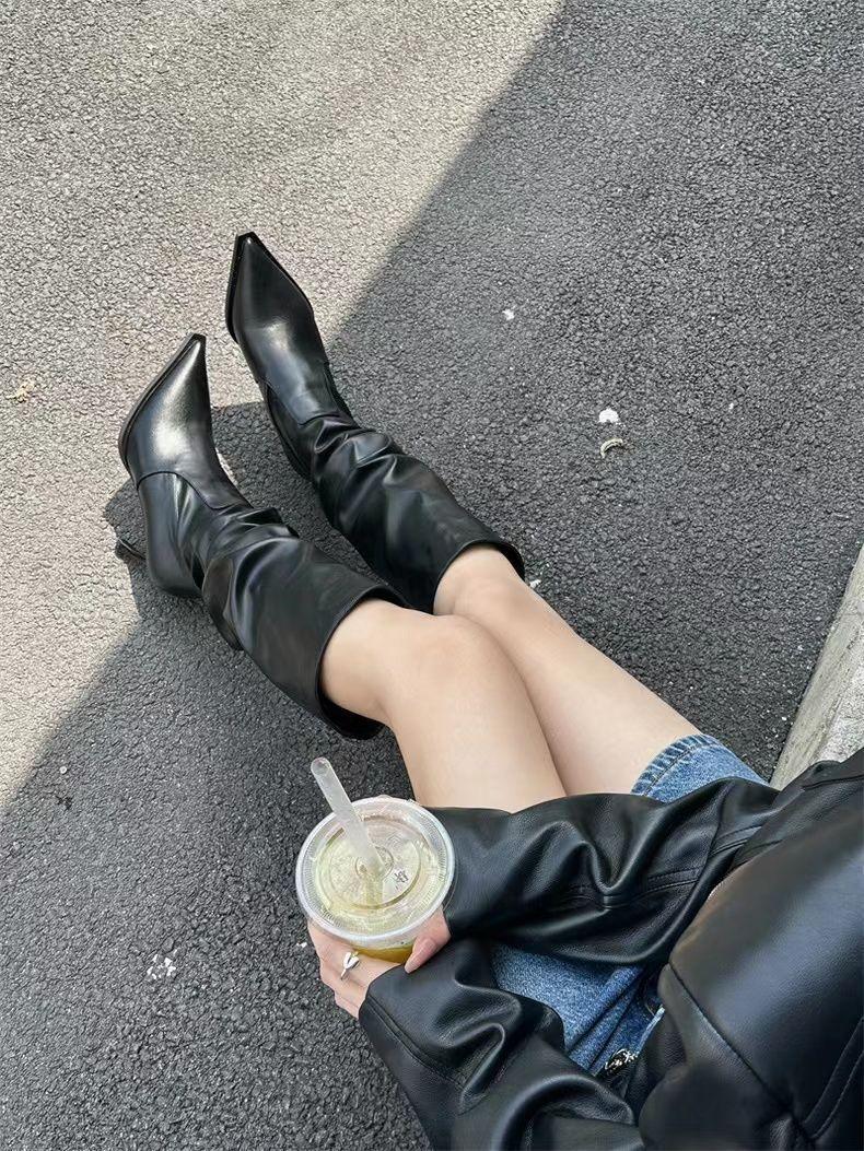 Botas Altas Vintage Fruncidas de Punta Tacón Alto Mujer 2025 Otoño/Invierno Nueva Moda Tacón de Aguja Botas Largas Mujer
