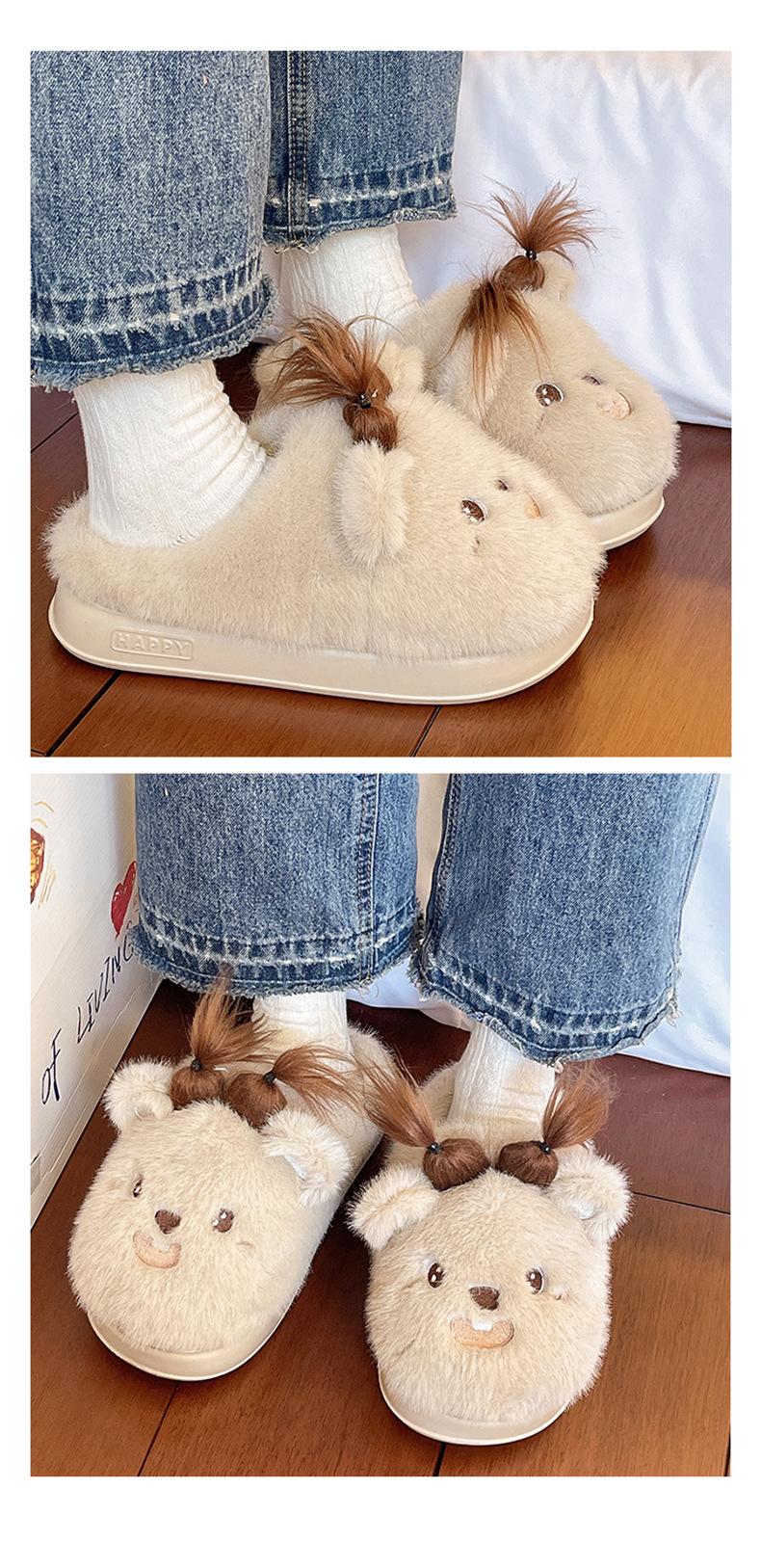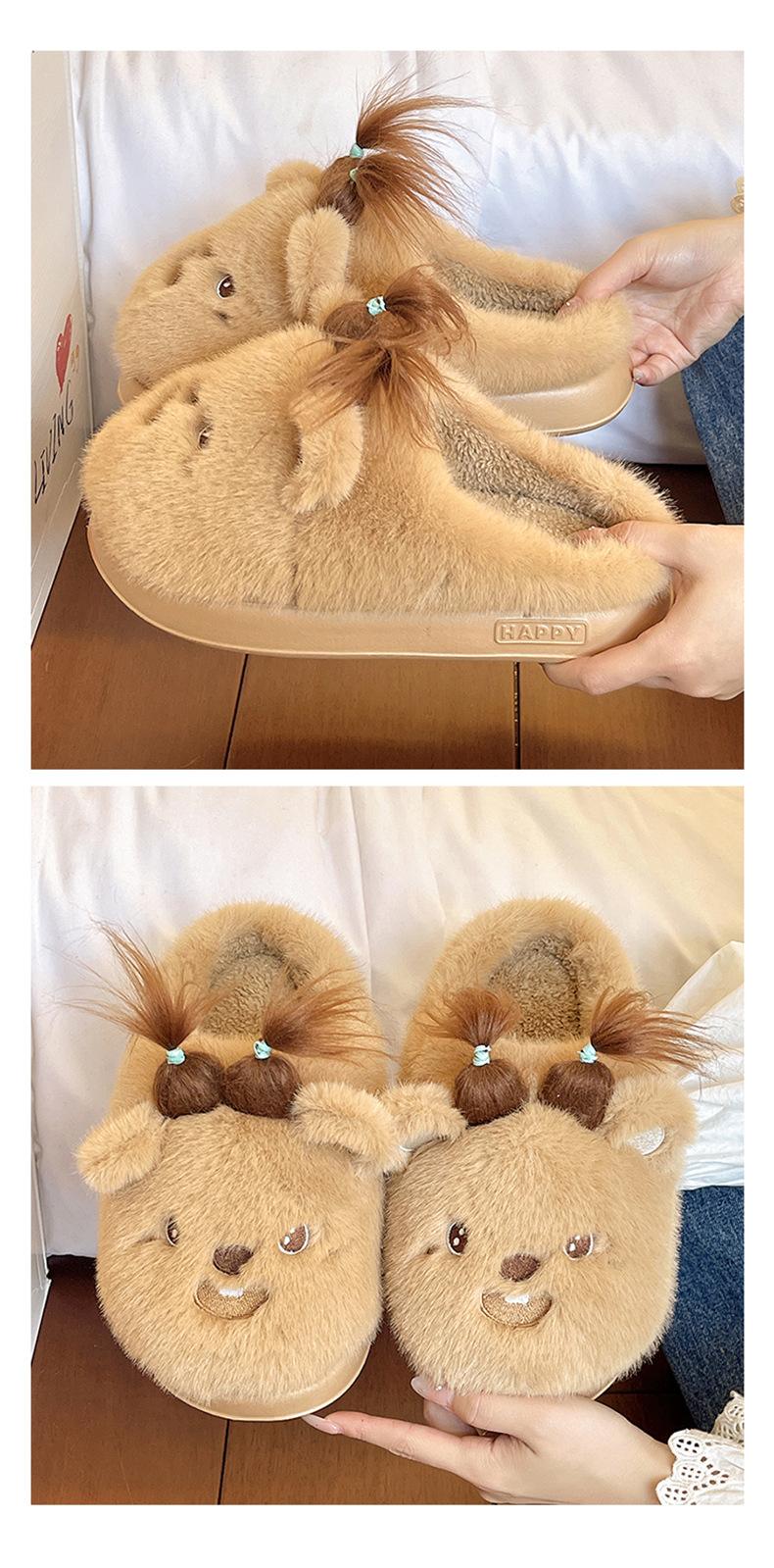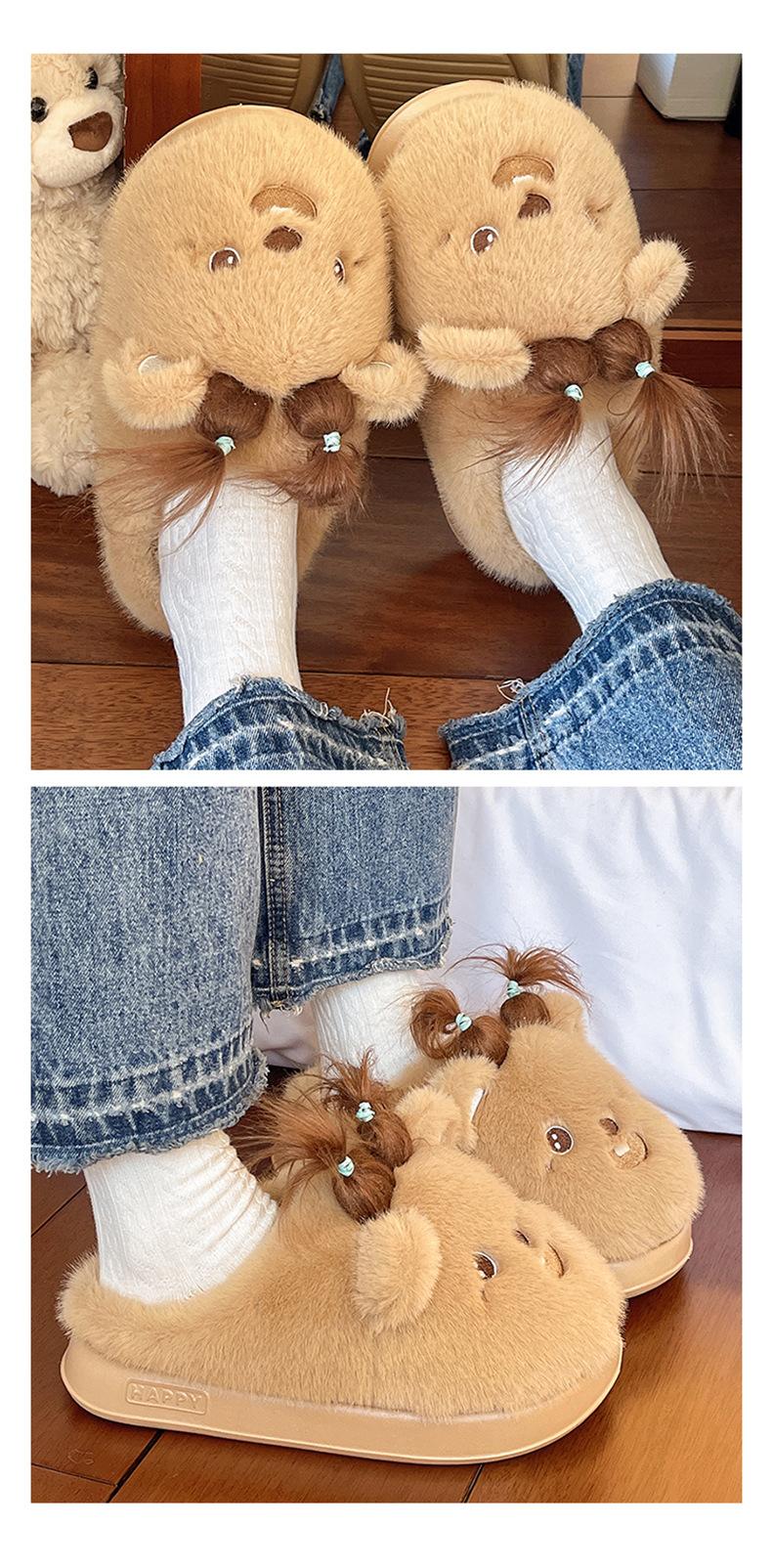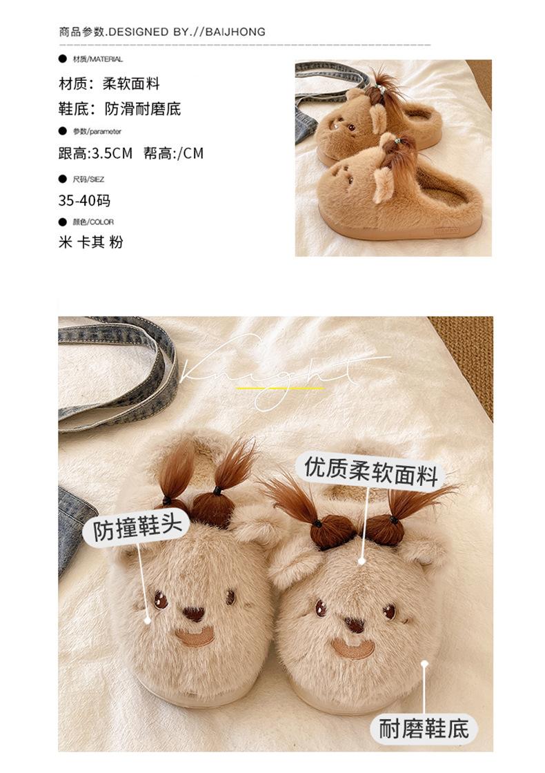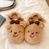 Pantuflas suaves y lindas de osito, pantuflas peludas para mujer, otoño e invierno, cómodas, sensación de pisar mierda, pantuflas de algodón de suela suave, antideslizantes, ligeras, de punta cerrada