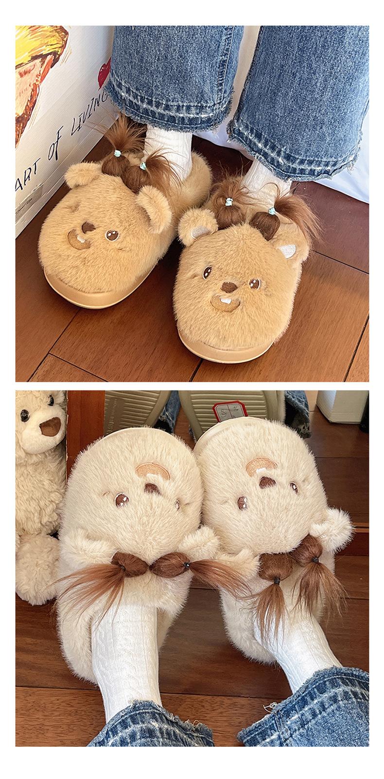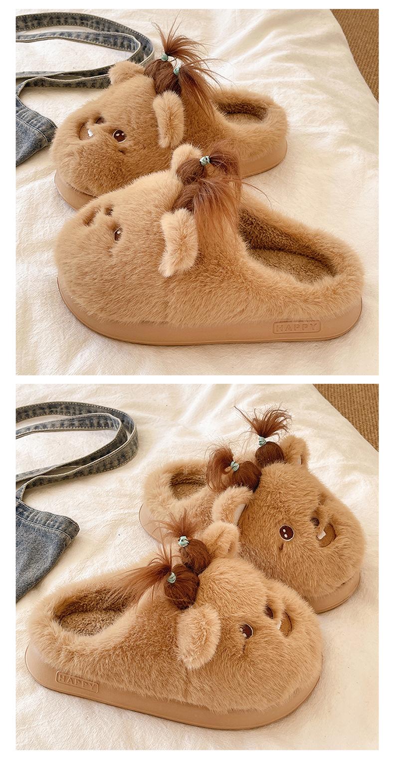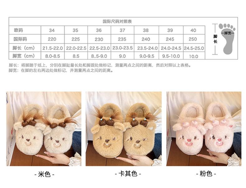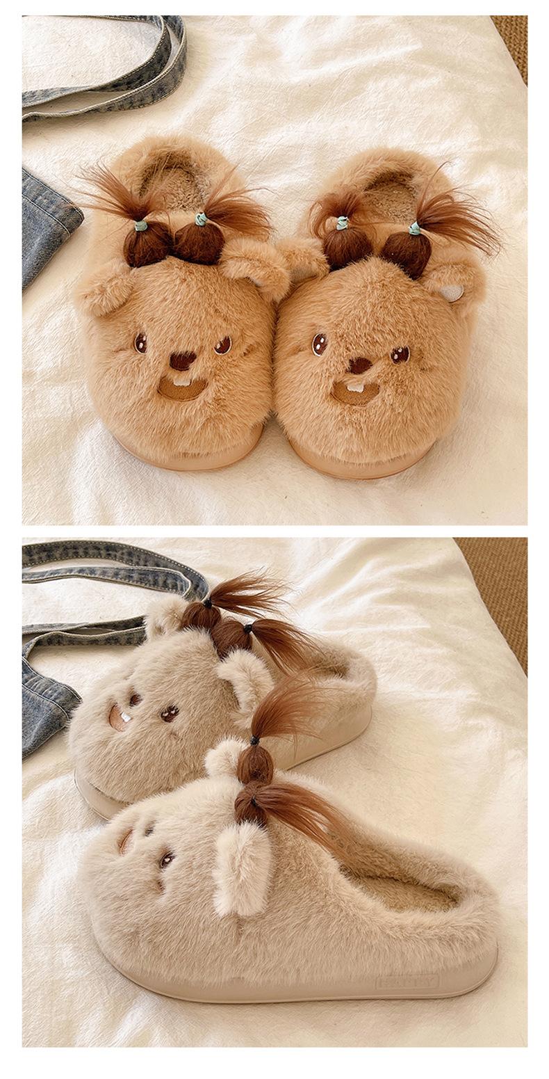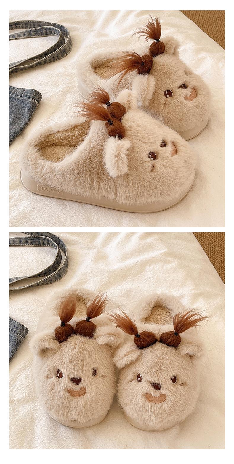 Pantuflas suaves y lindas de osito, pantuflas peludas para mujer, otoño e invierno, cómodas, sensación de pisar mierda, pantuflas de algodón de suela suave, antideslizantes, ligeras, de punta cerrada