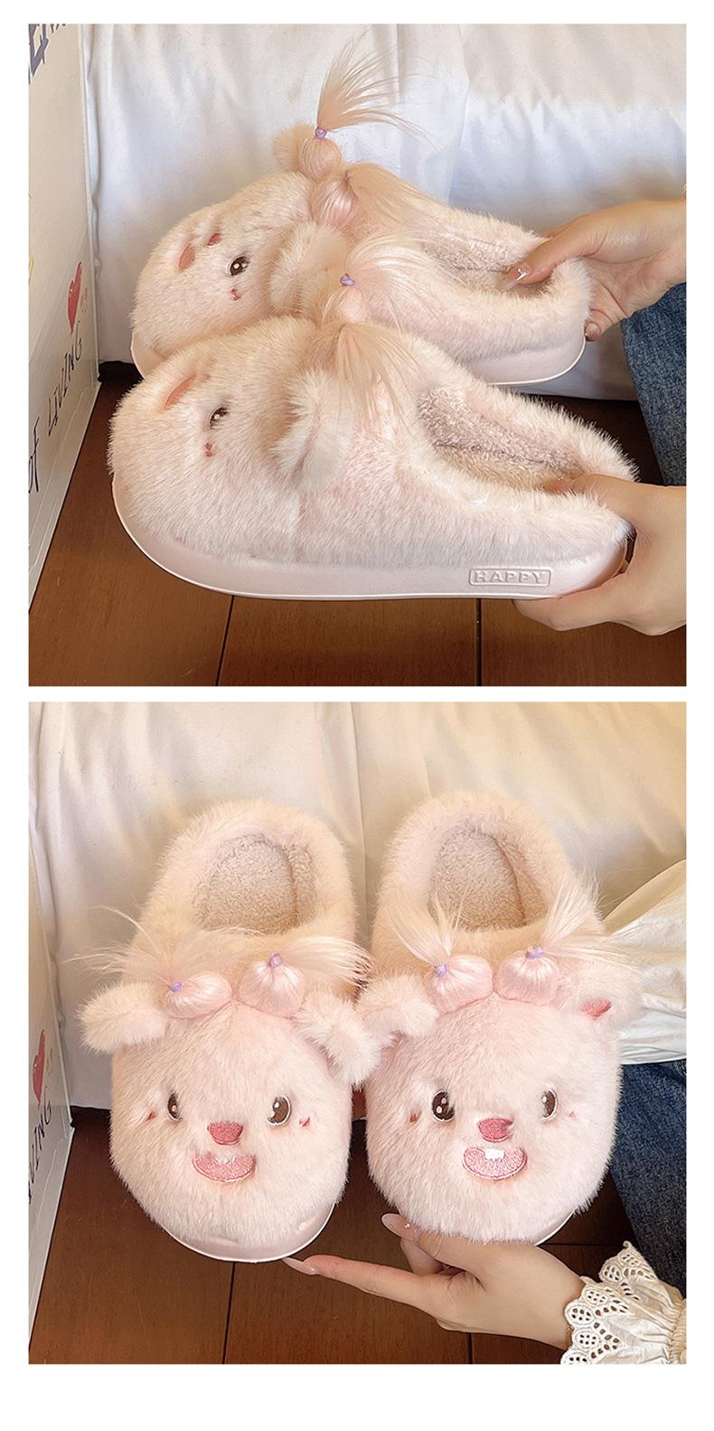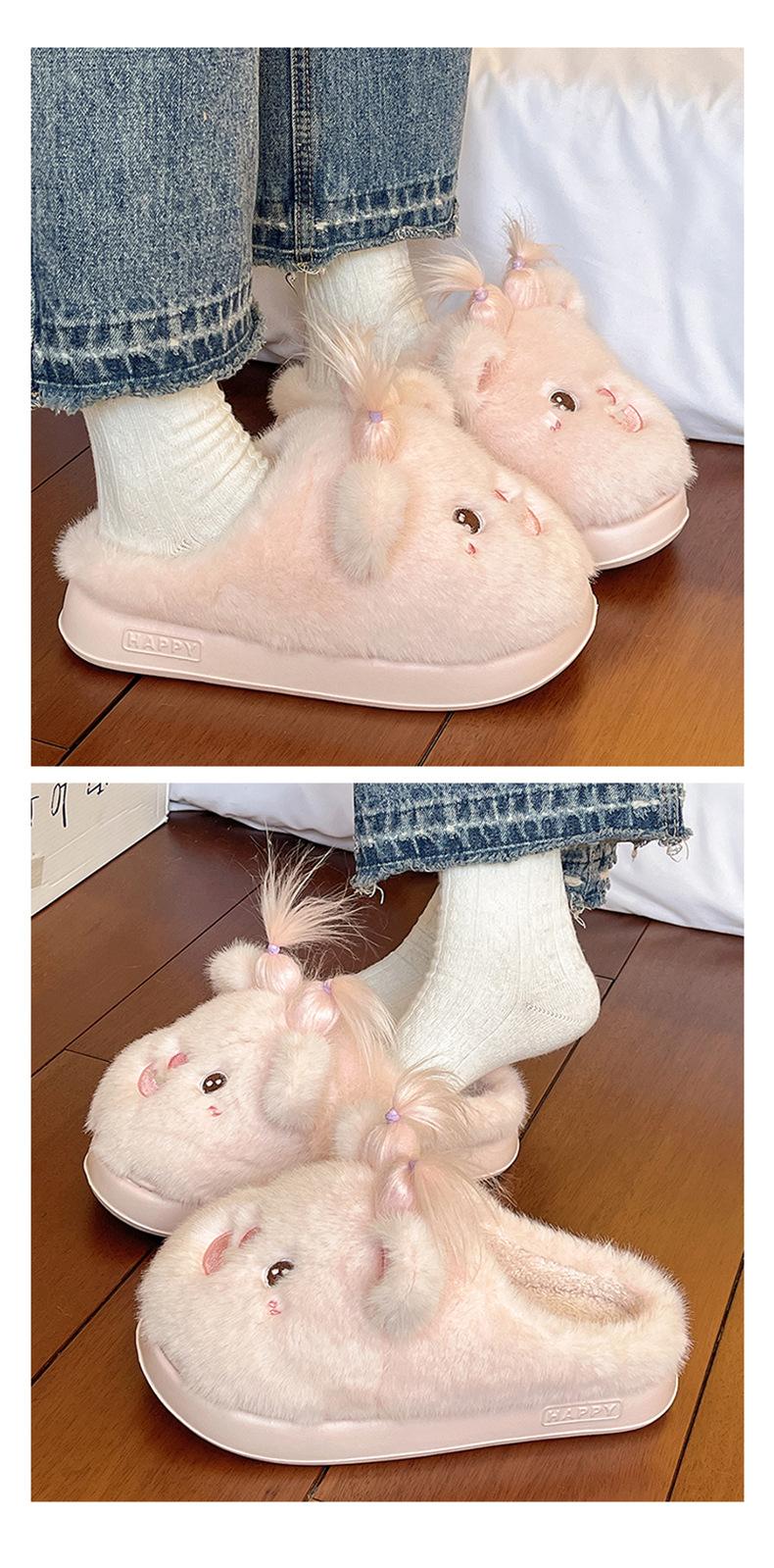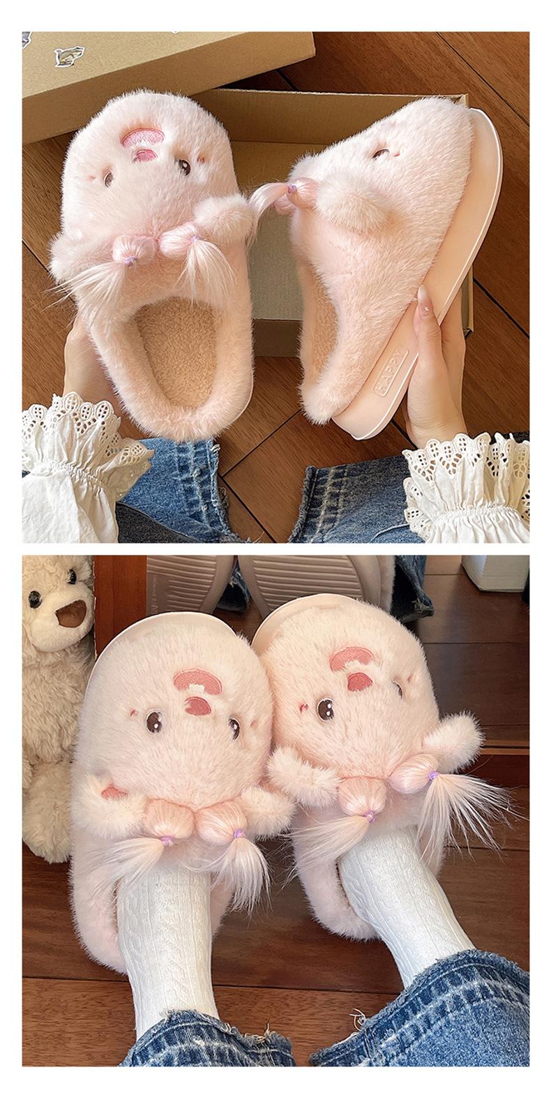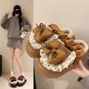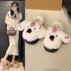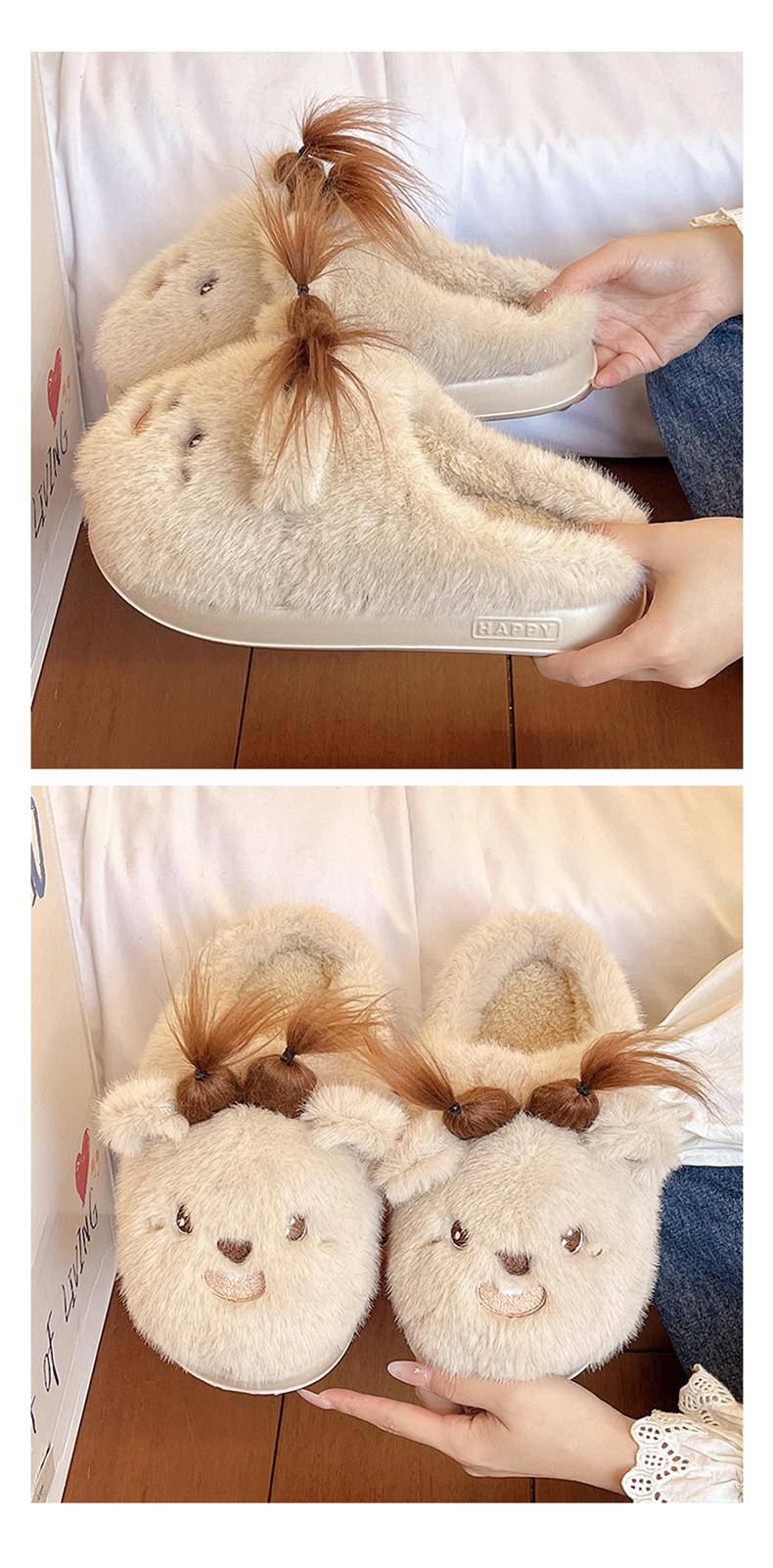Pantuflas suaves y lindas de osito, pantuflas peludas para mujer, otoño e invierno, cómodas, sensación de pisar mierda, pantuflas de algodón de suela suave, antideslizantes, ligeras, de punta cerrada