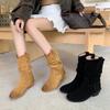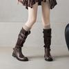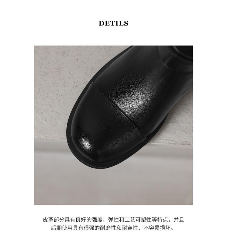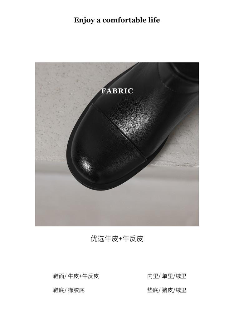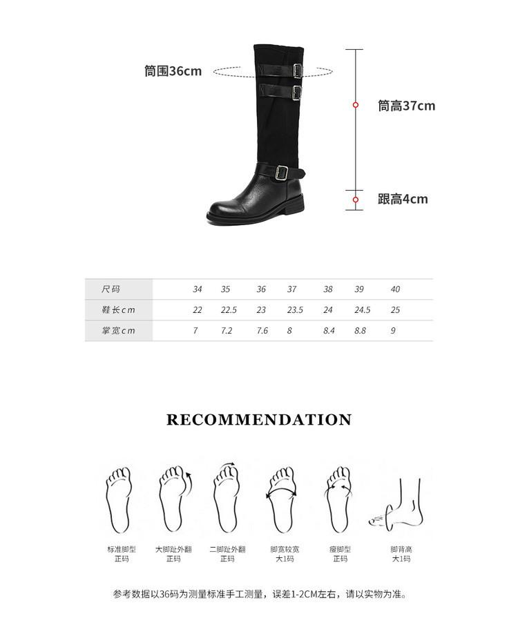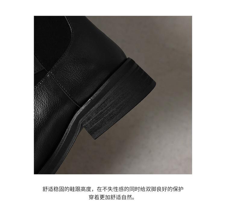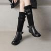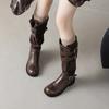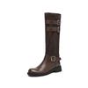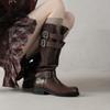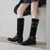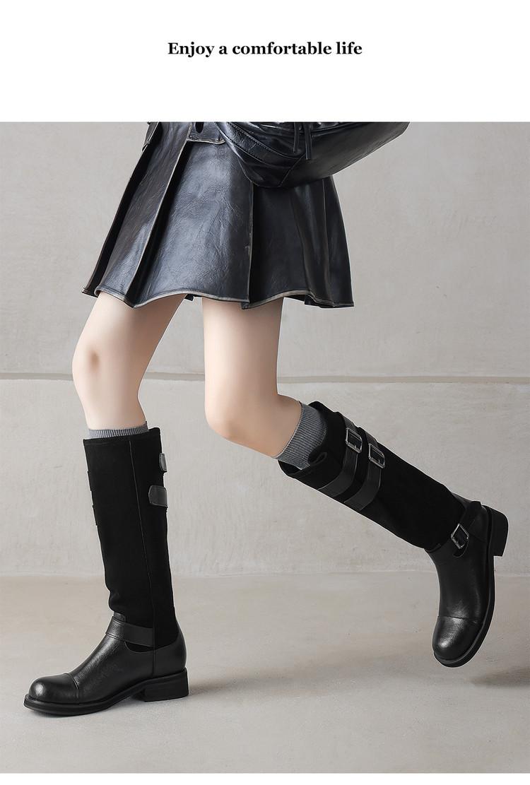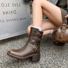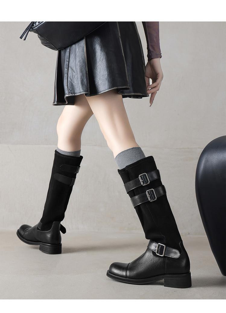 Botas de Moda de Punta Redonda y Tacón Grueso para Mujer 2025 Otoño/Invierno Nuevas Botas de Caballero con Hebilla de Tacón Plano y Tacón Medio de Piel de Vaca
