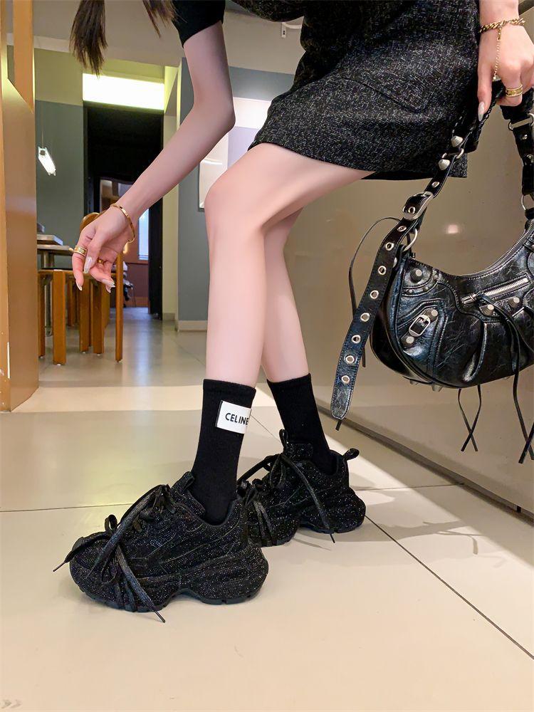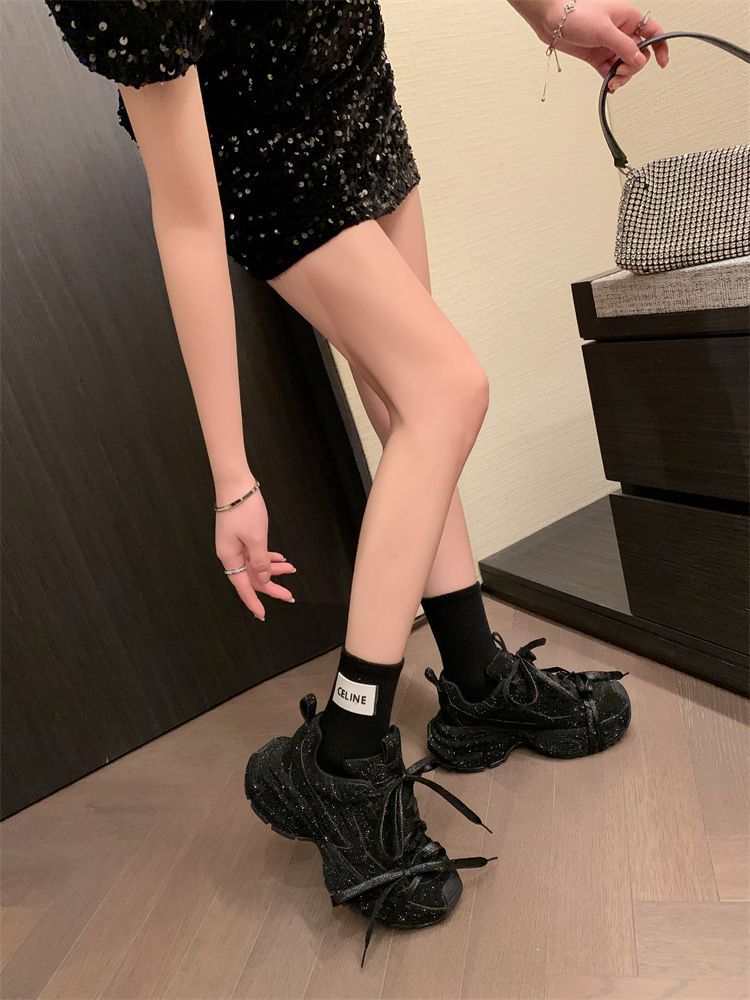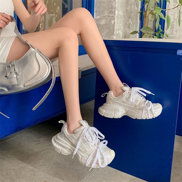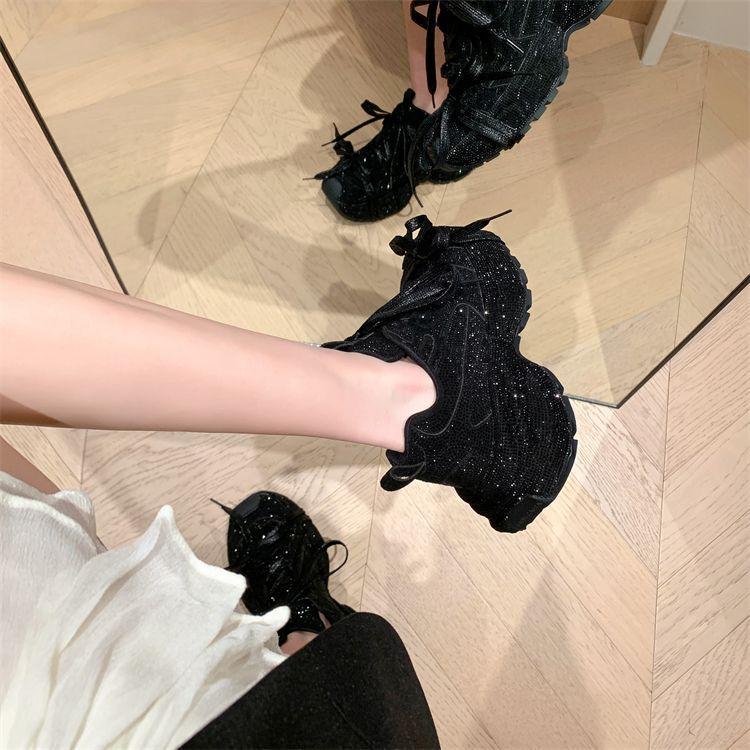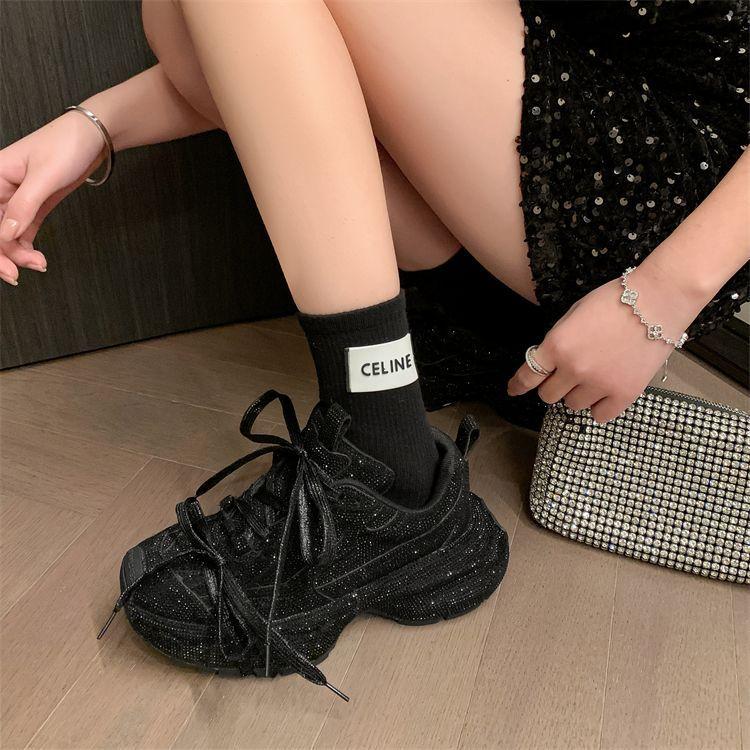Tenis de diamantes de imitación de alto valor estilo lleno de estrellas, zapatos de plataforma de suela gruesa, zapatos casuales de papá, mujeres 2025 nuevo otoño