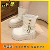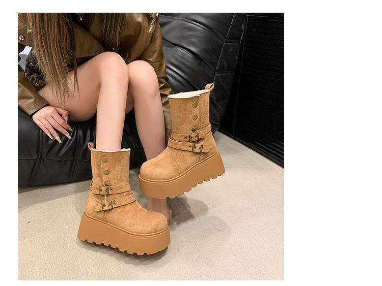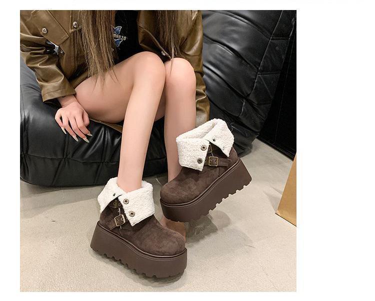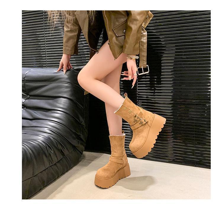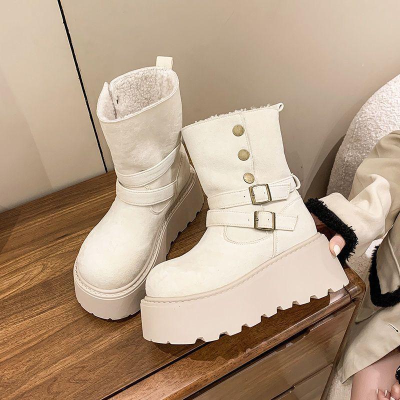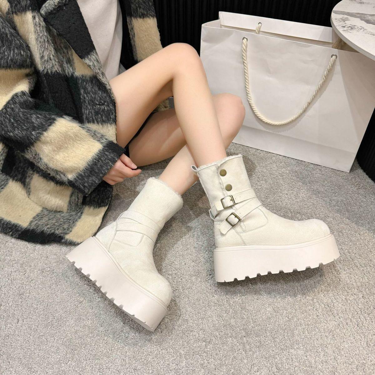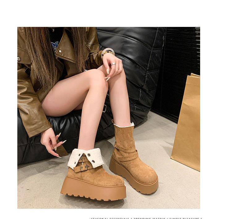 Botas de Nieve Casuales de Plataforma Gruesa Bidireccionales para Mujer 2025 Otoño/Invierno Nueva Moda Versátiles Plus Terciopelo Cómodas Botas de Media Caña para Mujer
