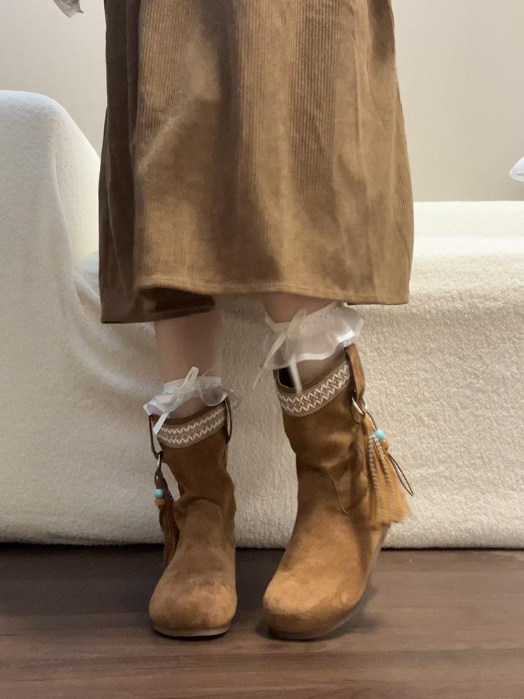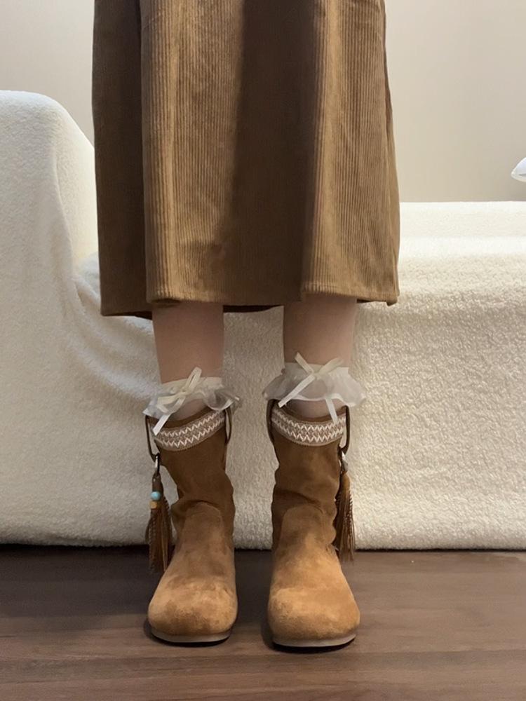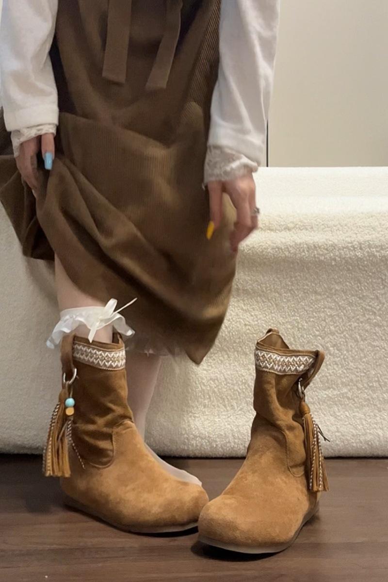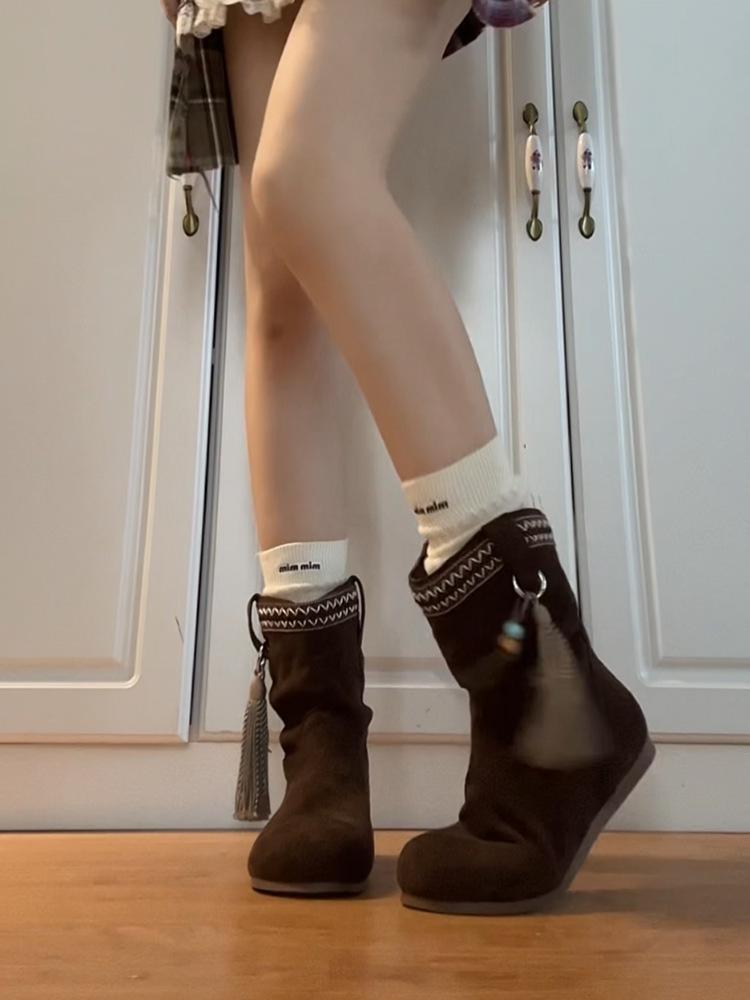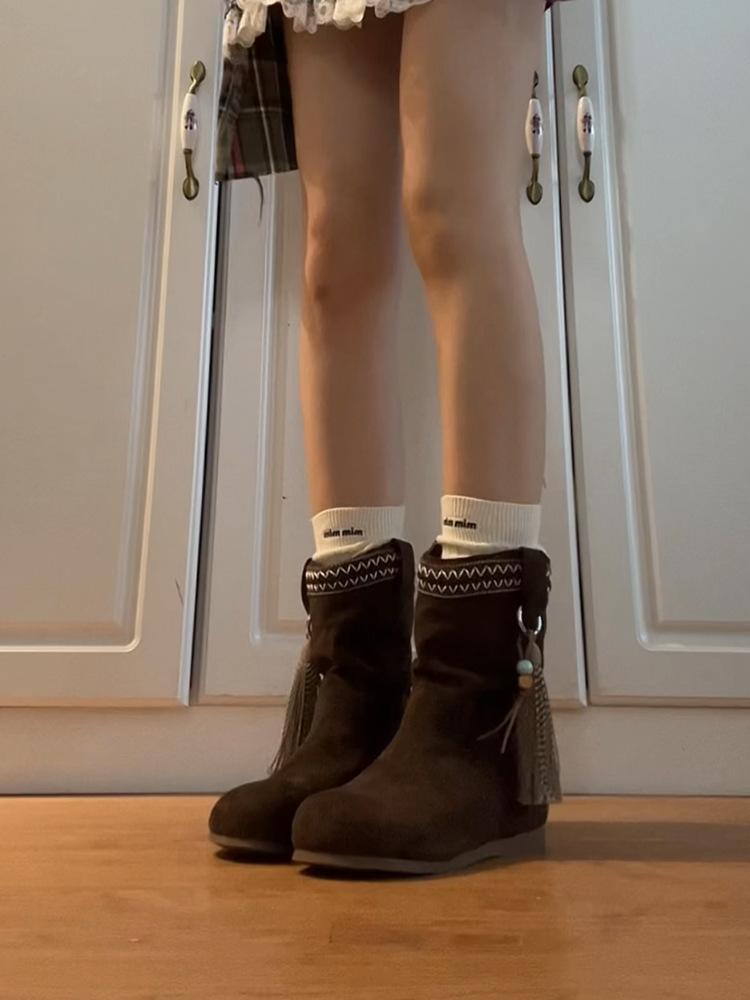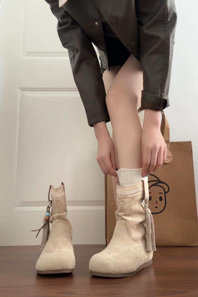 Botas de moda hasta media pantorrilla con diseño de borlas, estilo retro de hadas de otoño e invierno, tacón grueso, ropa exterior versátil para aumentar la altura, botines cortos, botas Martin