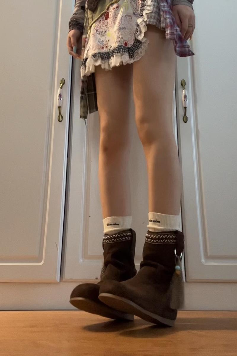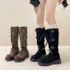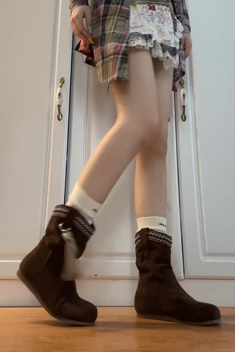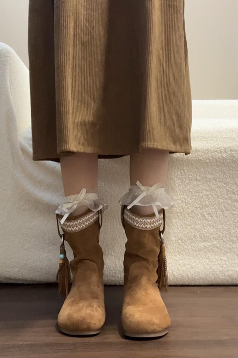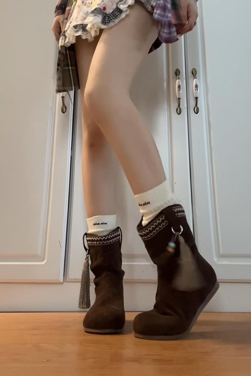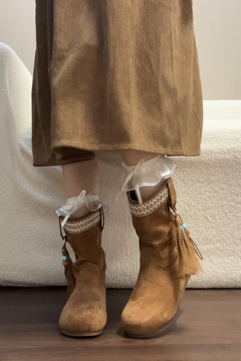 Botas de moda hasta media pantorrilla con diseño de borlas, estilo retro de hadas de otoño e invierno, tacón grueso, ropa exterior versátil para aumentar la altura, botines cortos, botas Martin