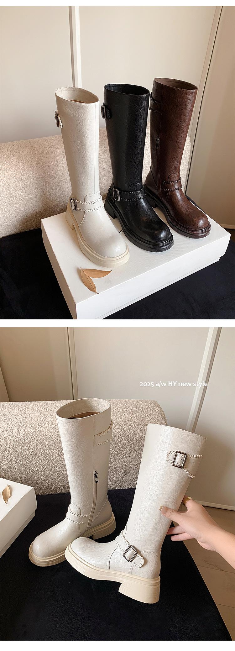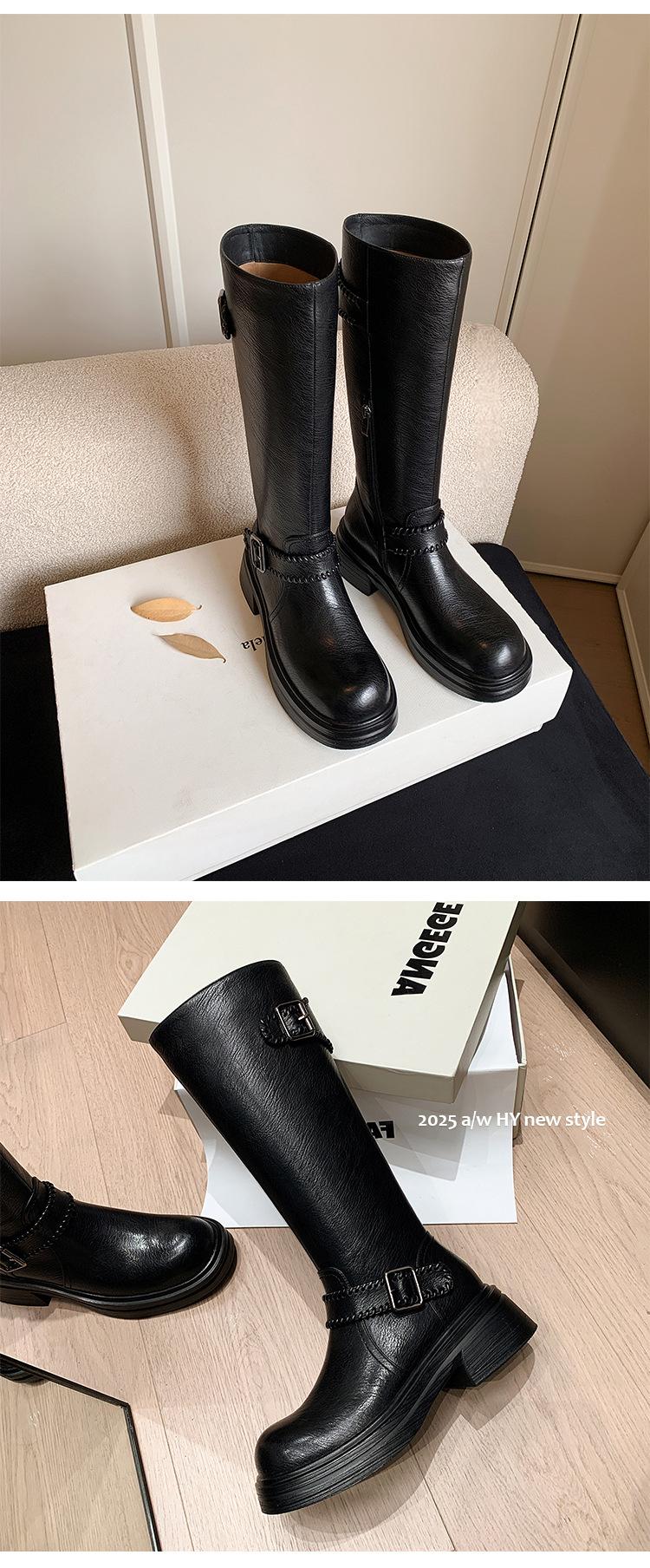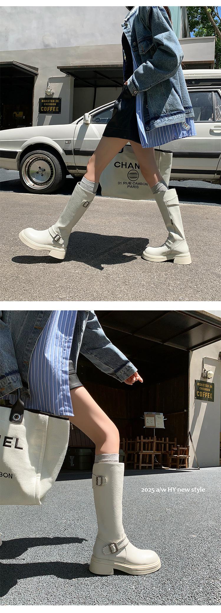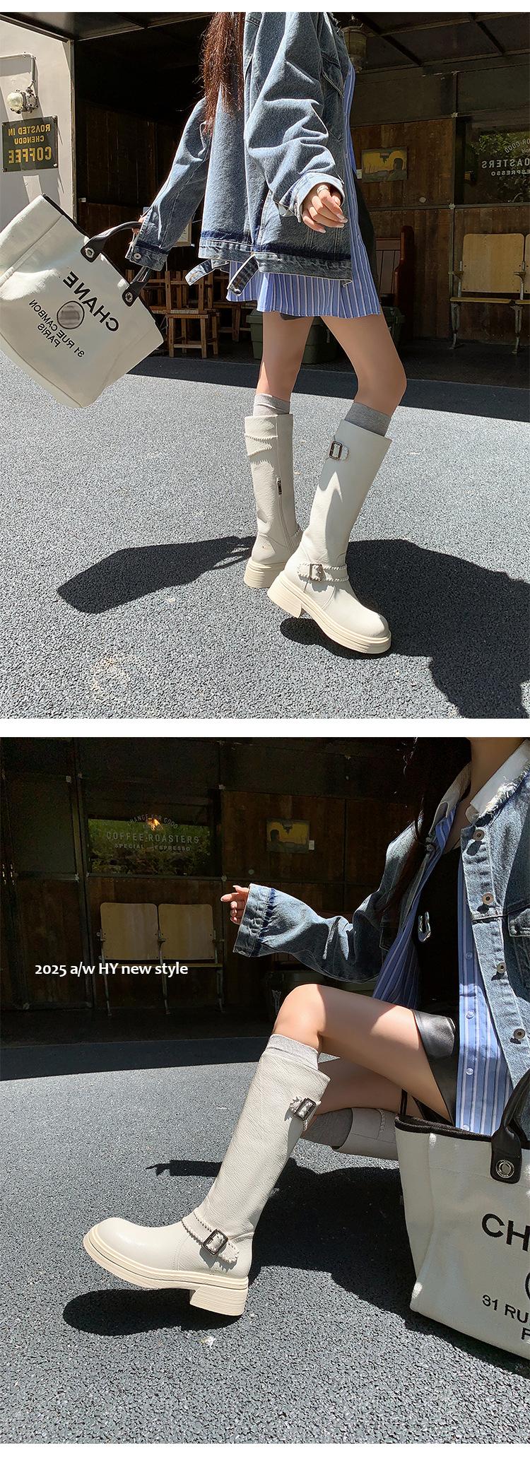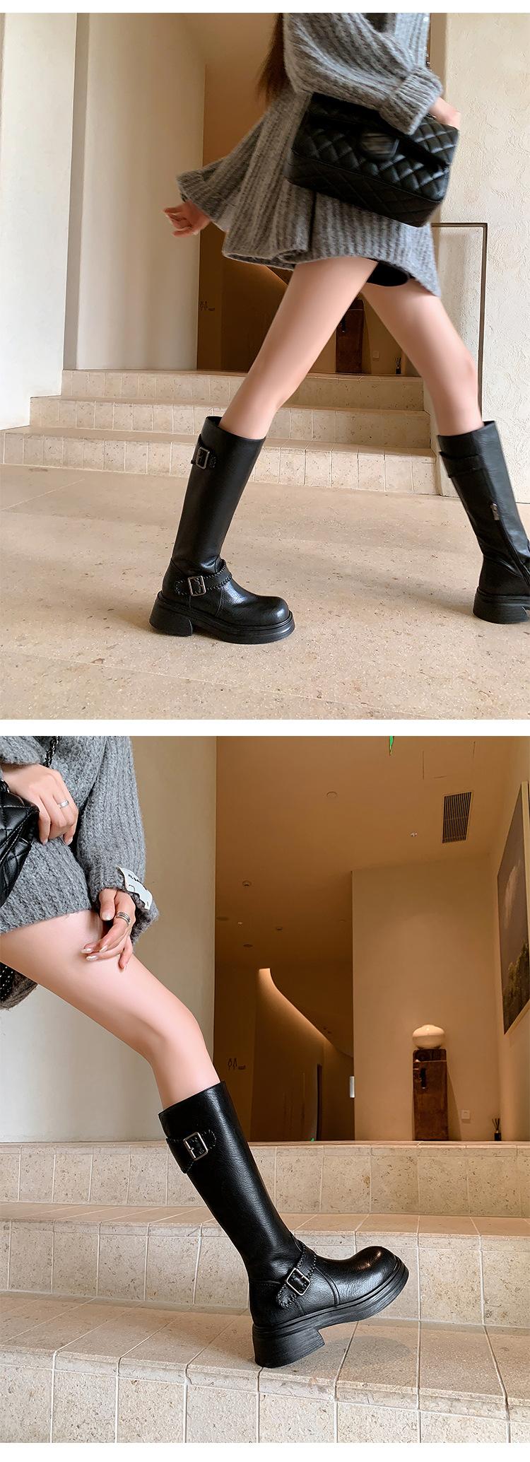 Dulce Chica Cool Picante Botas Simples de Caballero por Encima de la Rodilla 2025 Otoño/Invierno Nuevo Punta Redonda Suela Gruesa Tacón Ancho Hebilla Botas Altas