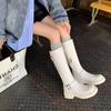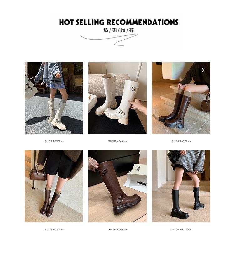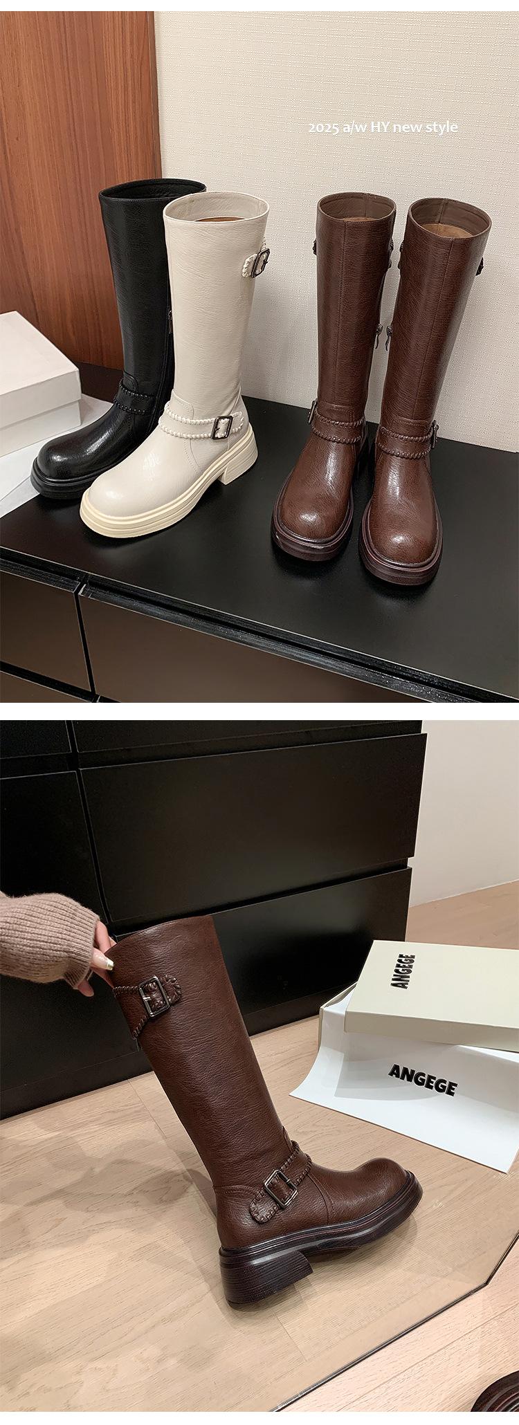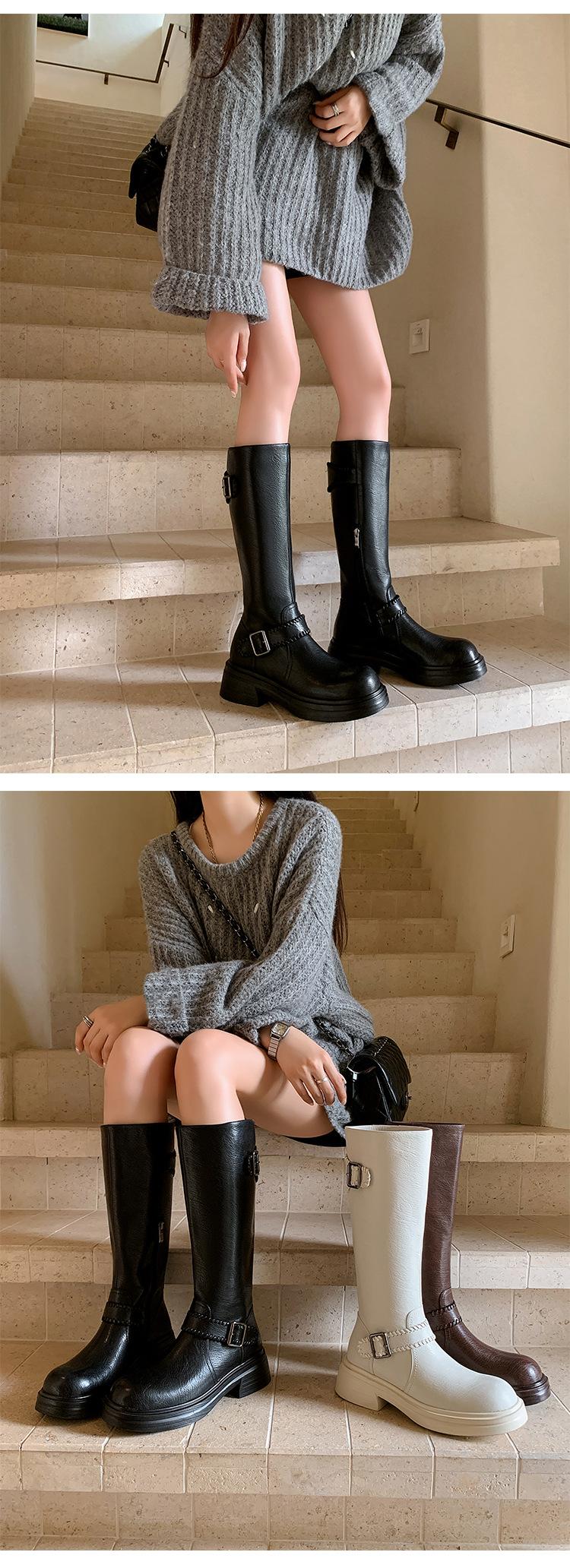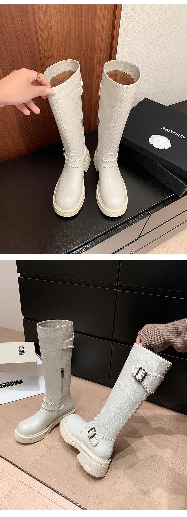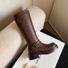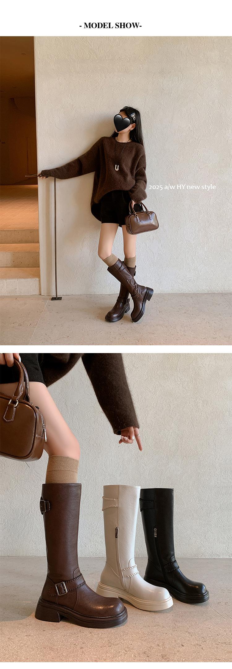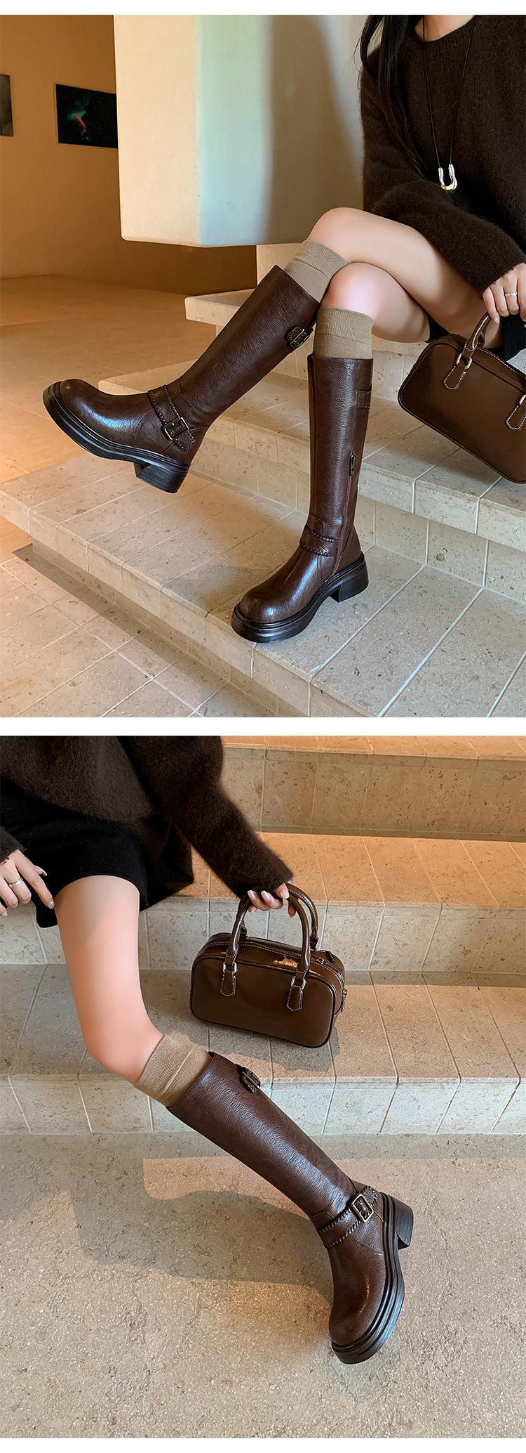 Dulce Chica Cool Picante Botas Simples de Caballero por Encima de la Rodilla 2025 Otoño/Invierno Nuevo Punta Redonda Suela Gruesa Tacón Ancho Hebilla Botas Altas