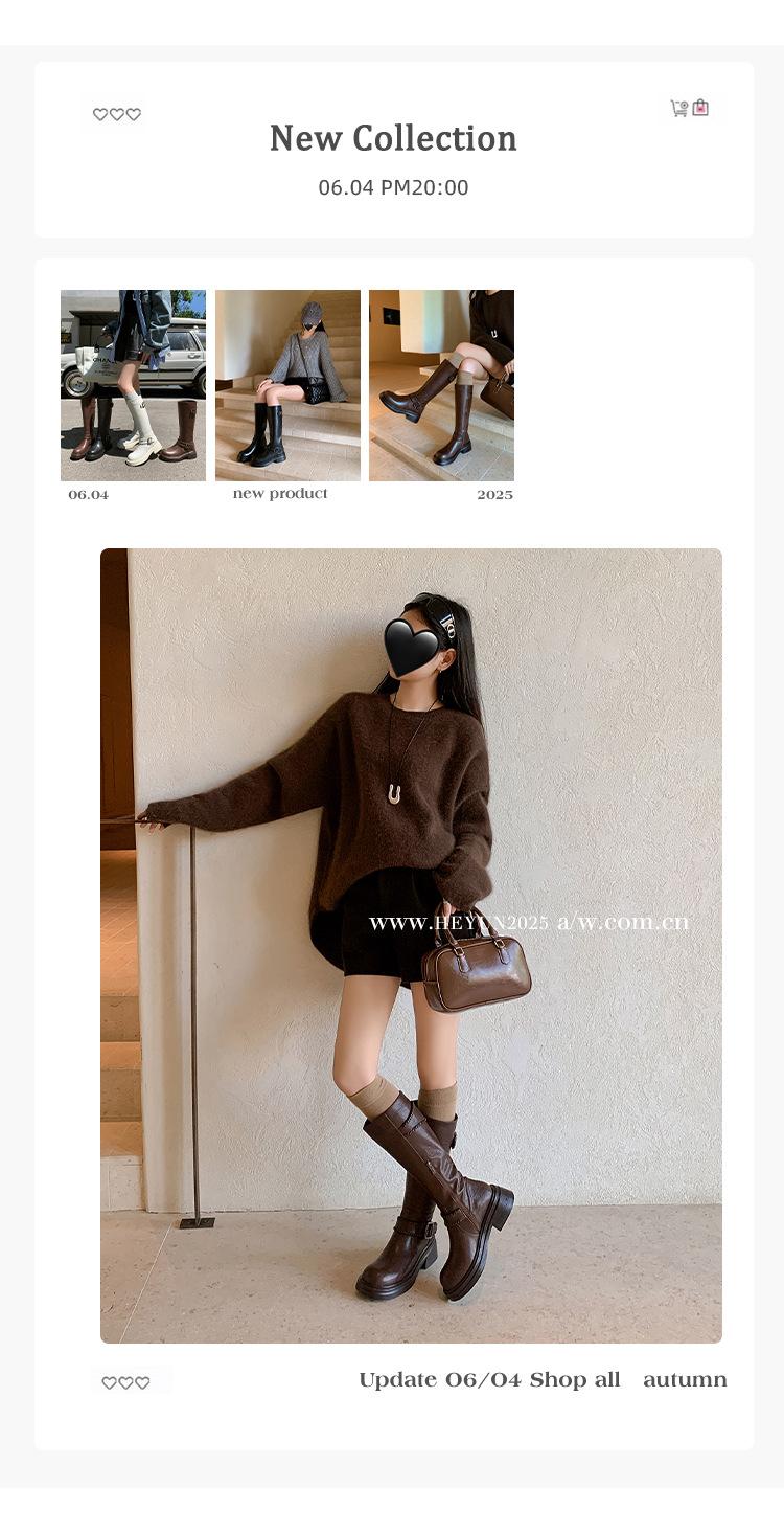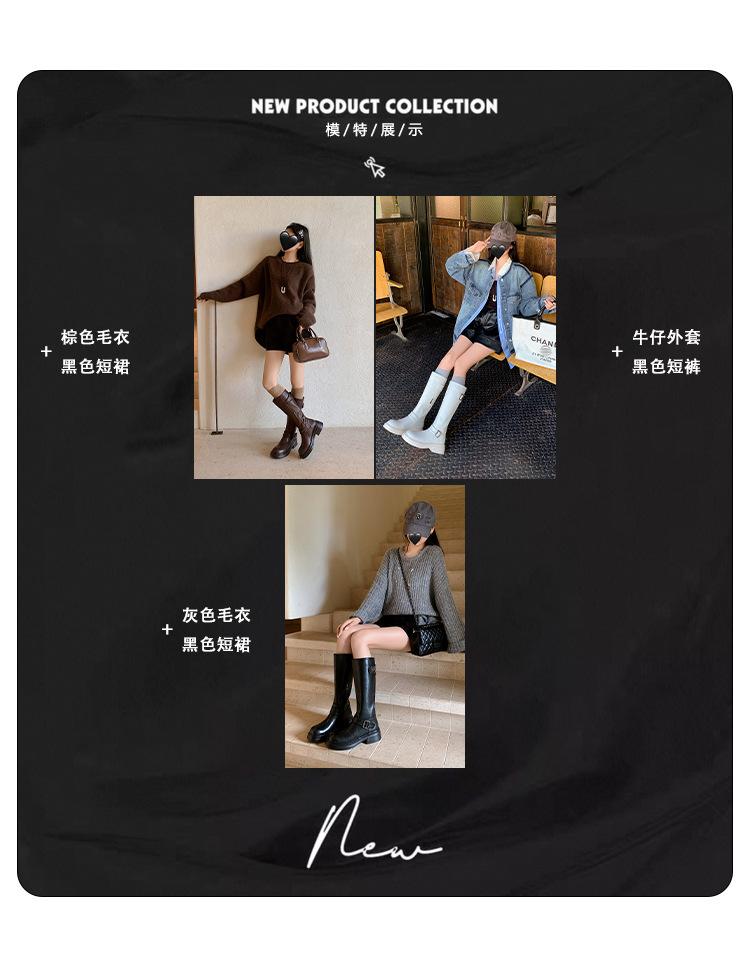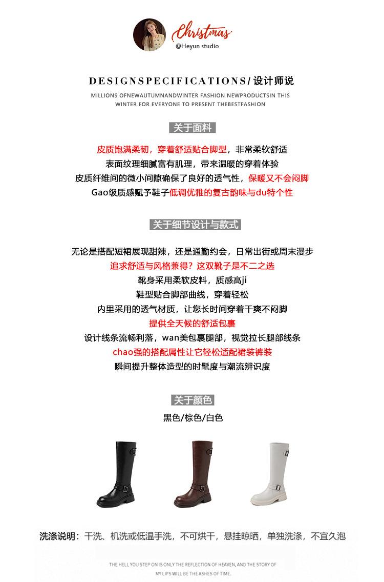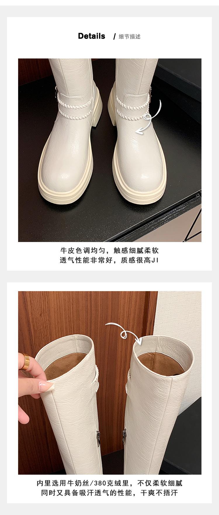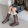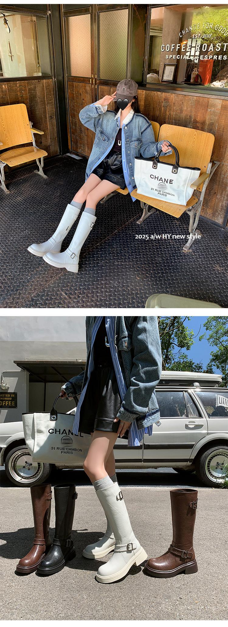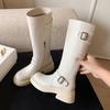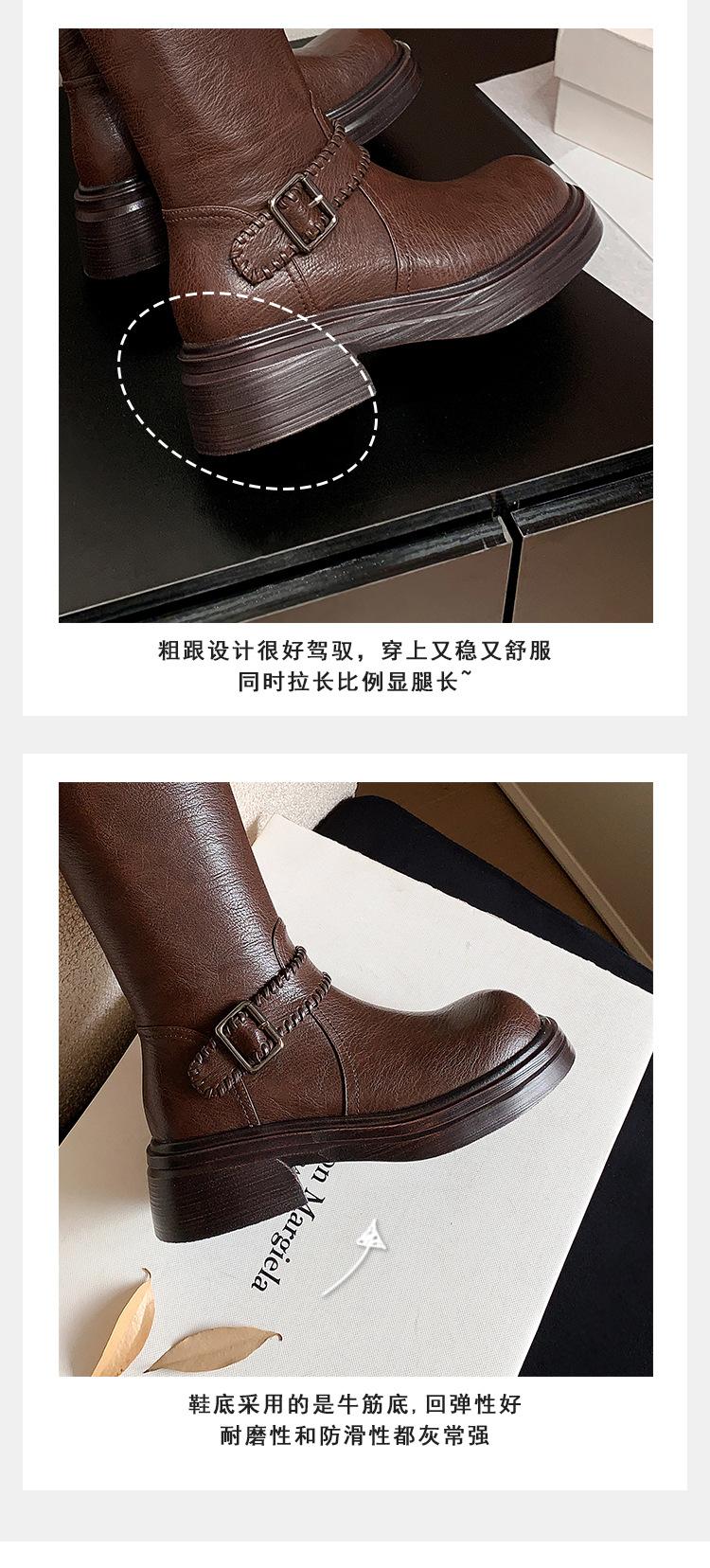 Dulce Chica Cool Picante Botas Simples de Caballero por Encima de la Rodilla 2025 Otoño/Invierno Nuevo Punta Redonda Suela Gruesa Tacón Ancho Hebilla Botas Altas