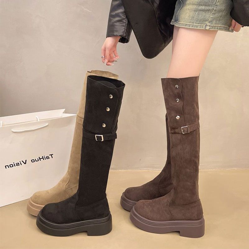 Botas largas de gamuza hasta el muslo con suela gruesa para mujer, nuevo estilo de otoño e invierno 2025, botas de caballero de caña alta adelgazantes