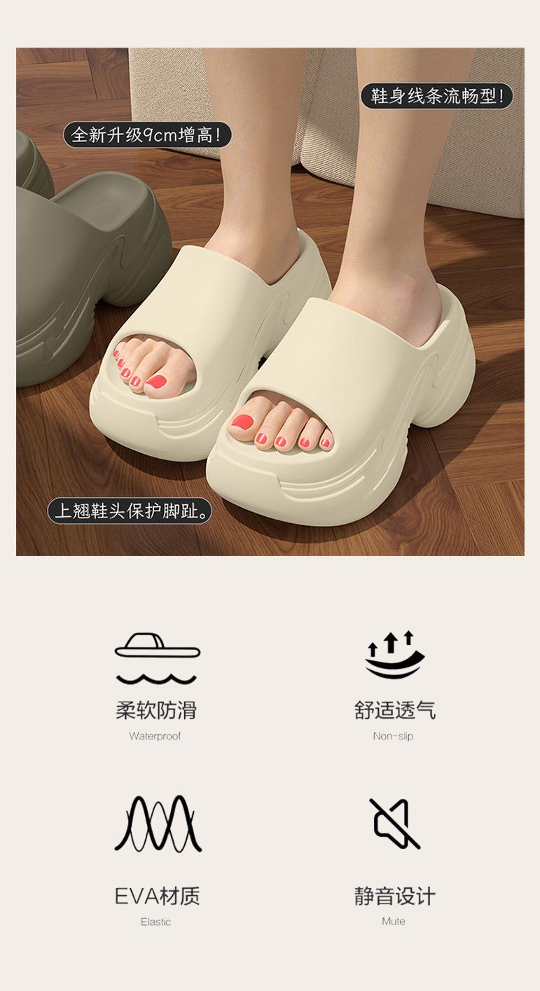 Estilo Caliente de Verano Moda para Mujer Suela Gruesa Aumento de Altura 8.0cm Exterior Antideslizante Resistente al Desgaste Playa Transpirable Pantuflas