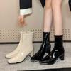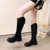 Otoño/Invierno 2025 Nuevas Botas de Mujer de Tacón Medio de Tacón Cuadrado y Punta Redonda por Encima de la Rodilla Moda Europea y Americana Botas de Mujer de Suela Gruesa para Comercio Exterior