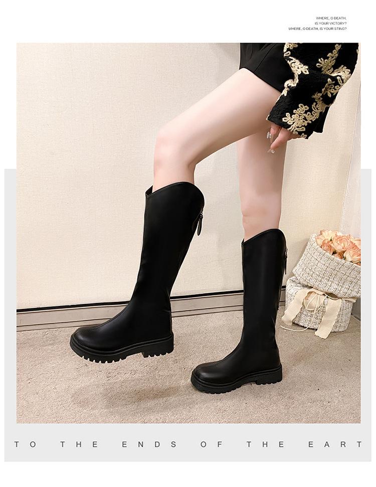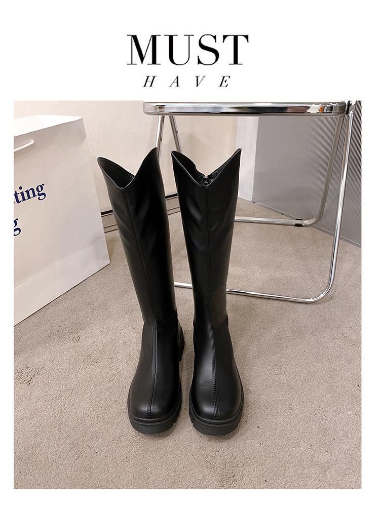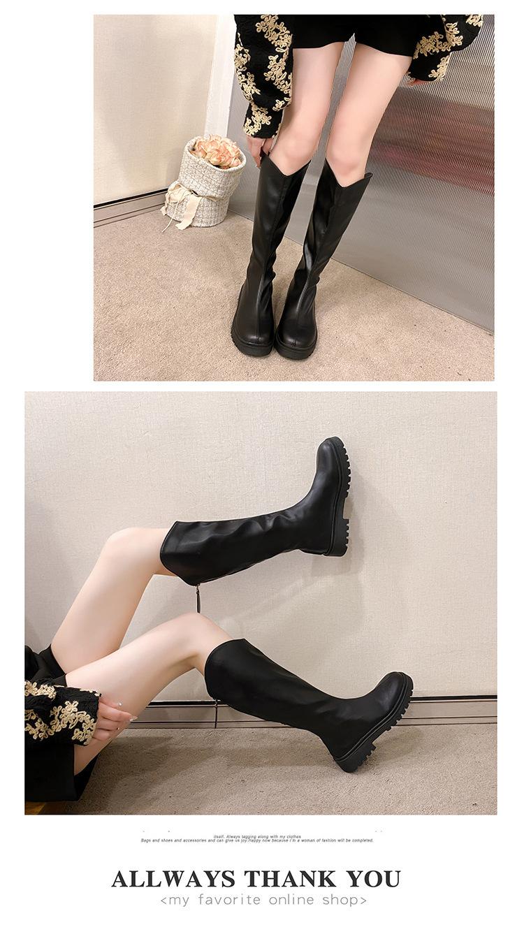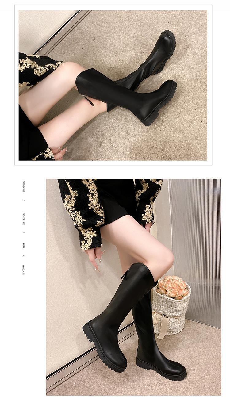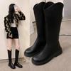 2025 Otoño e Invierno Nuevo Estilo Tacón Medio Tacón Cuadrado Punta Redonda Botas para Mujer Tendencia Europea y Americana Suela Gruesa Exportación Sobre la Rodilla Botas de Mujer