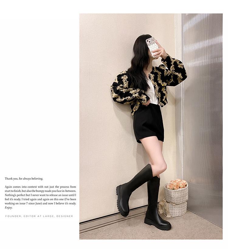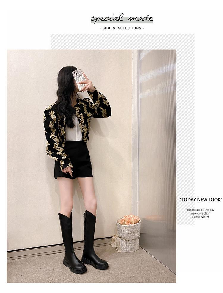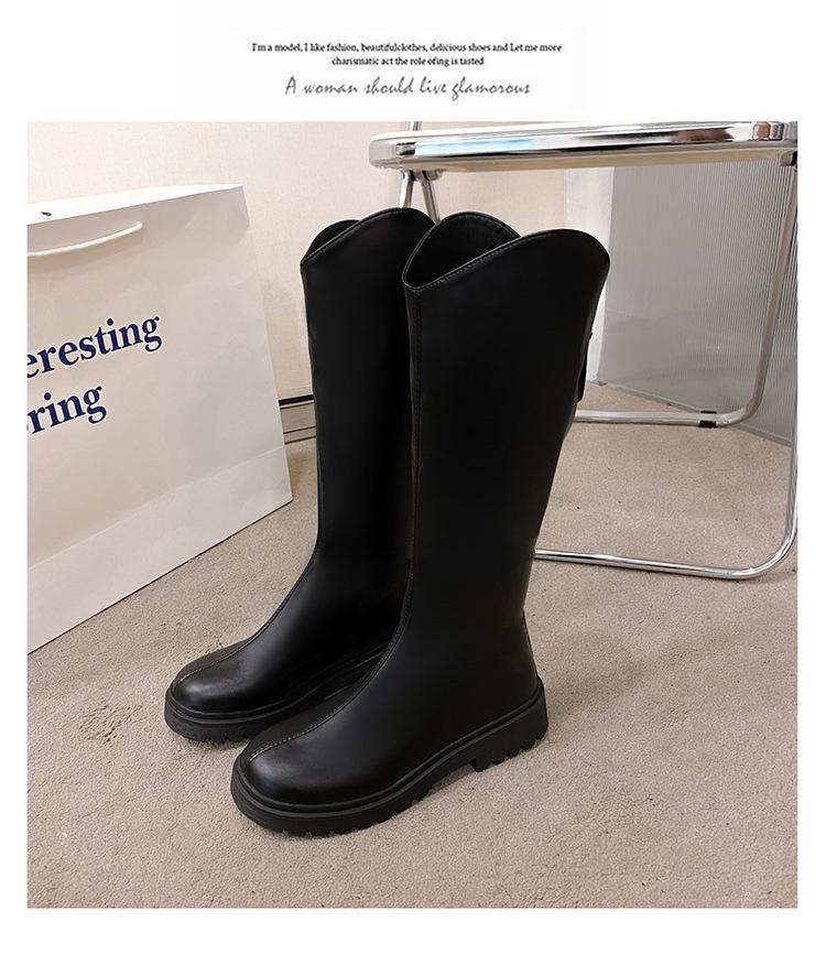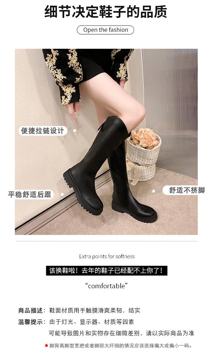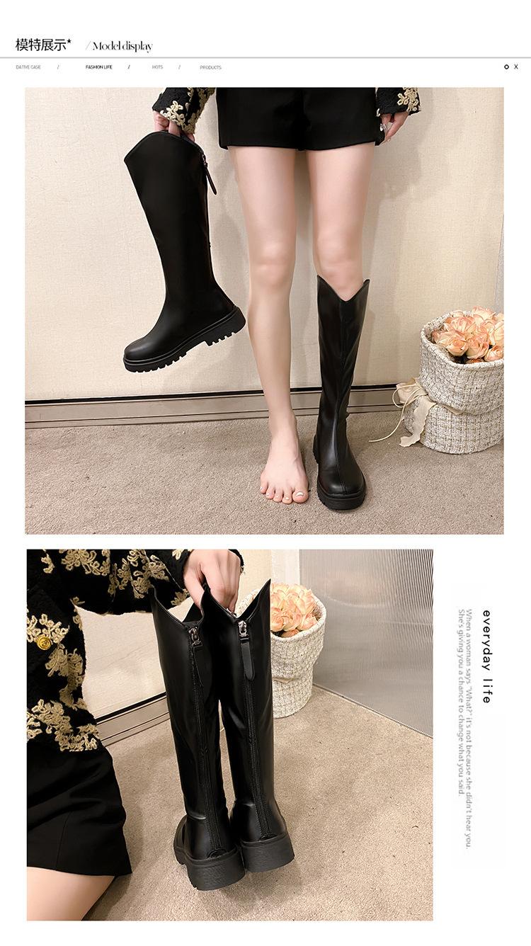 2025 Otoño e Invierno Nuevo Estilo Tacón Medio Tacón Cuadrado Punta Redonda Botas para Mujer Tendencia Europea y Americana Suela Gruesa Exportación Sobre la Rodilla Botas de Mujer