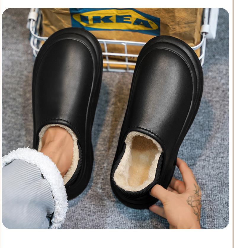 Pantuflas de algodón impermeables para hombre otoño e invierno 2025 nuevo estilo para interior hogar suela gruesa antideslizante pareja zapatos de algodón ropa de mujer