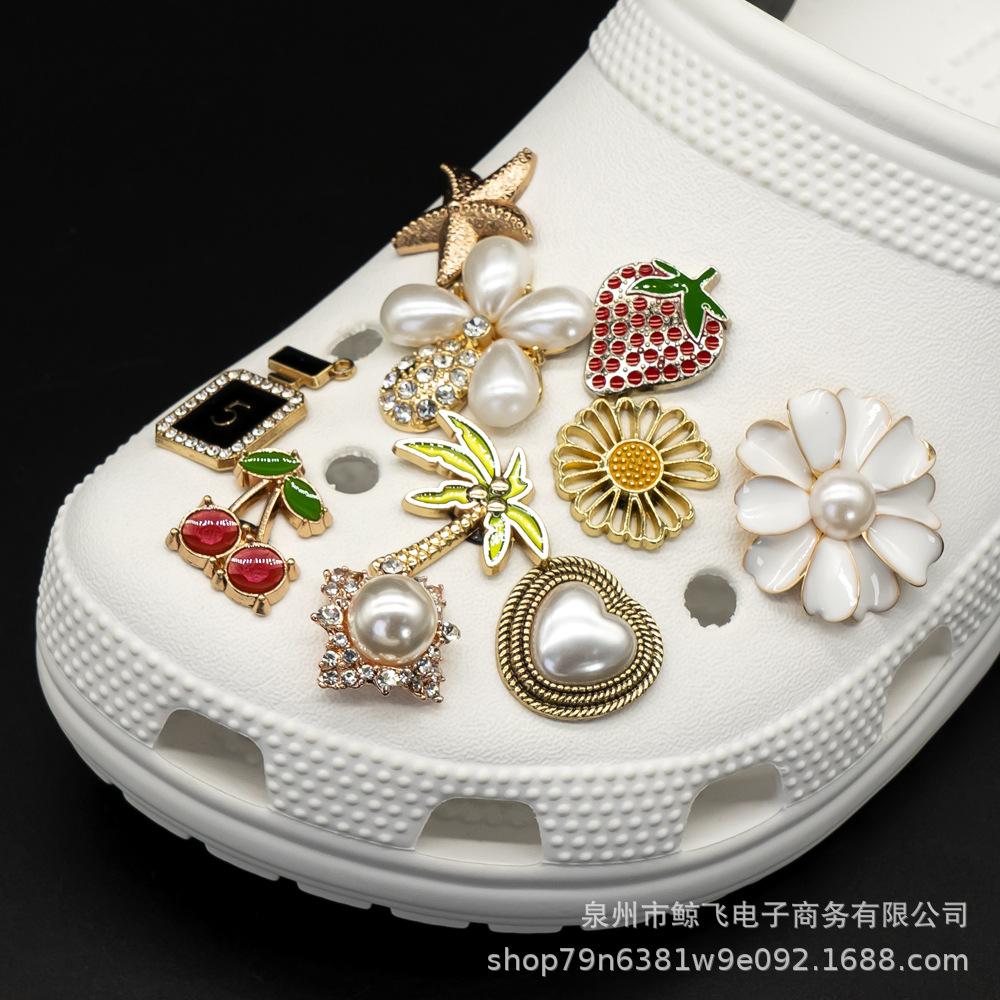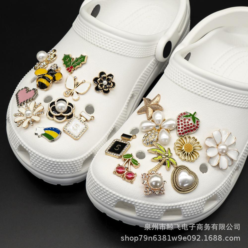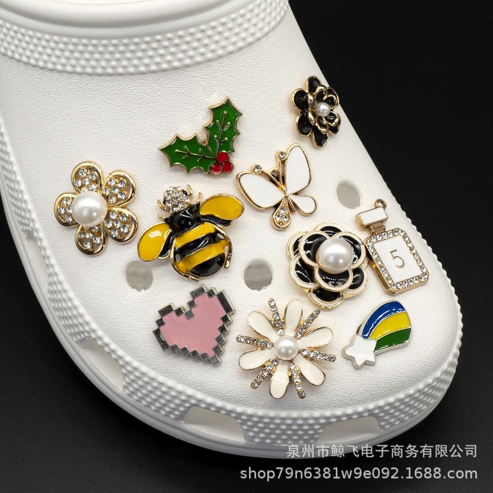 Nuevos Zapatos de Agujeros Transfronterizos Flores Metálicas para Zapatos en Stock Removibles DIY Zapatos de Jardín Agujero Bolsa Accesorios para Pulsera