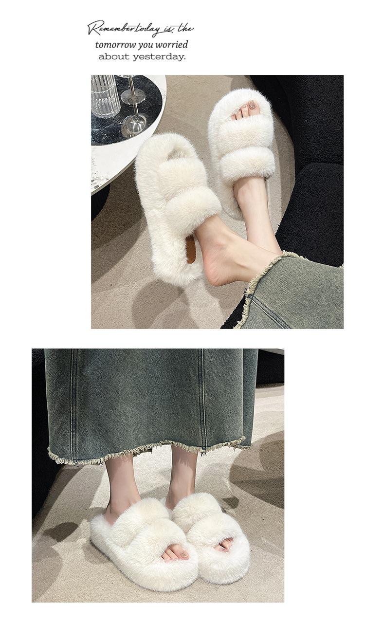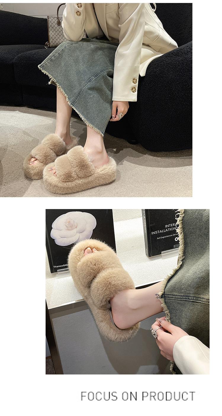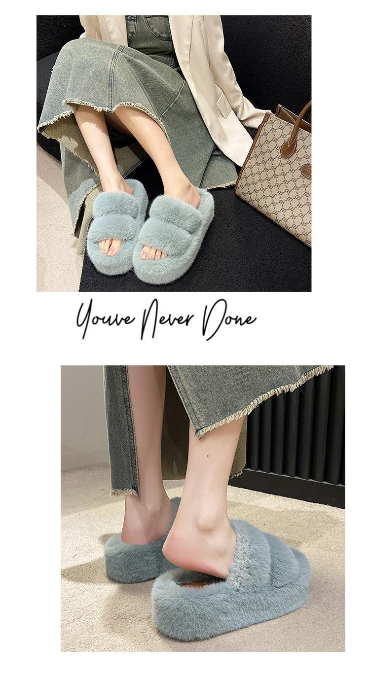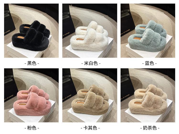 2025 Primavera y Otoño Nuevas Pantuflas de Algodón Afelpadas y Esponjosas de Plataforma Pequeña con Suela Gruesa para Aumentar la Altura para Mujer para Uso Exterior y Hogar