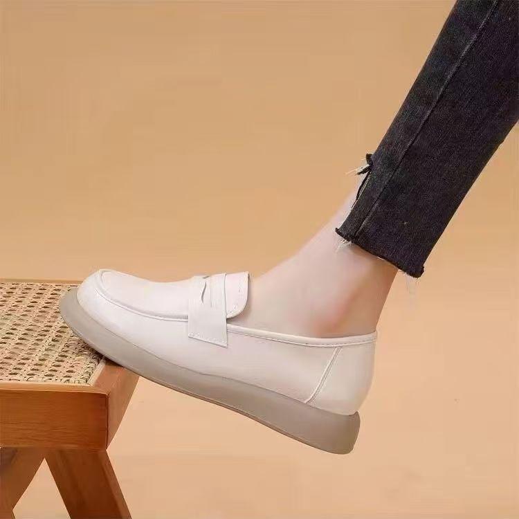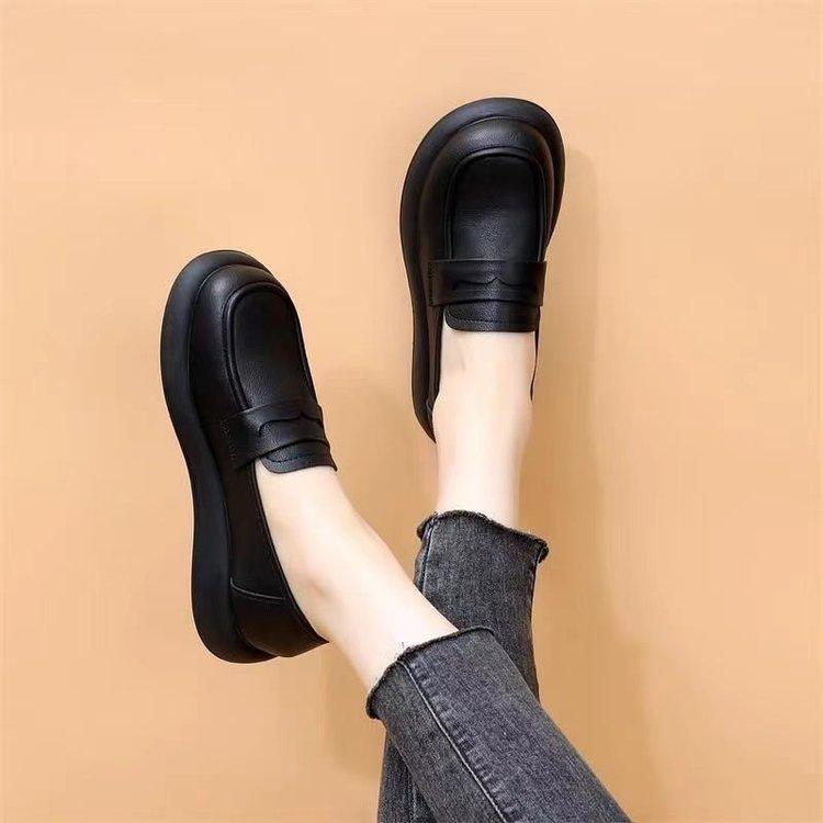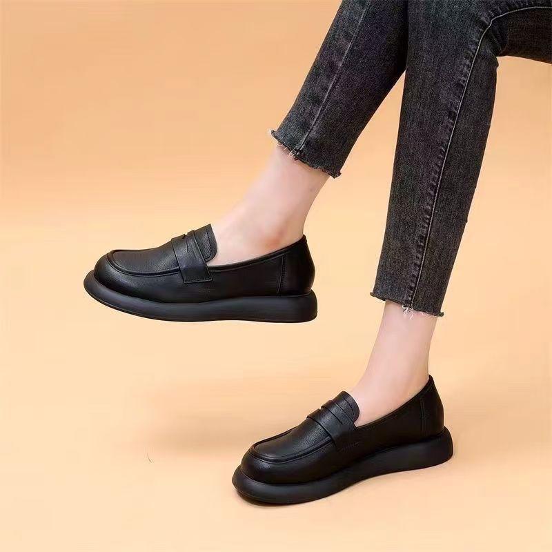 Mocasines de punta redonda Mujer 2025 Otoño Nuevo Retro Súper Suave Plano Simple Versátil Suela Blanda Antideslizante Zapatos de Cuero Pequeños