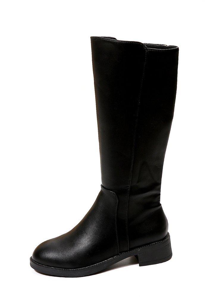 Nuevas Botas Altas de Talla Grande de Comercio Exterior con Punta Redonda y Tacón de Bloque para Mujer, Estilo Europeo y Americano, Botas Largas de Cuero por Encima de la Rodilla, Botas de Caballero