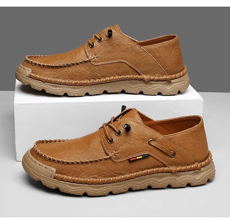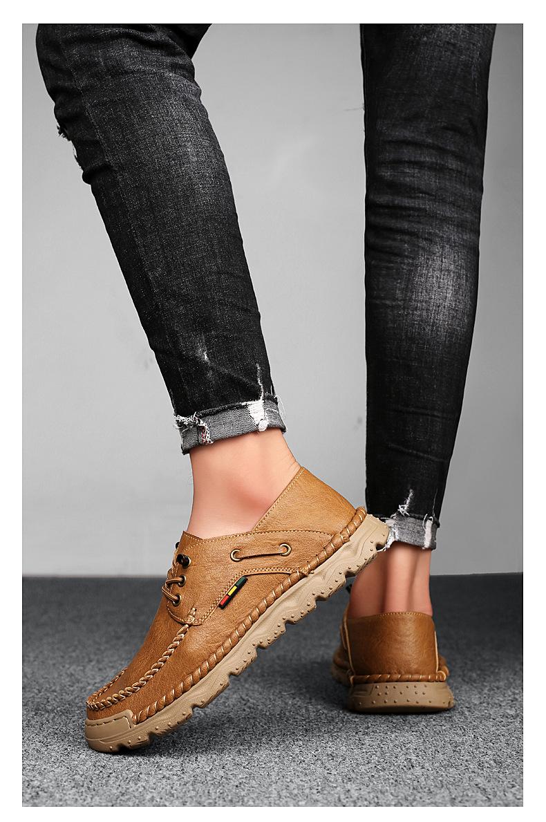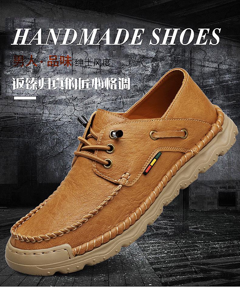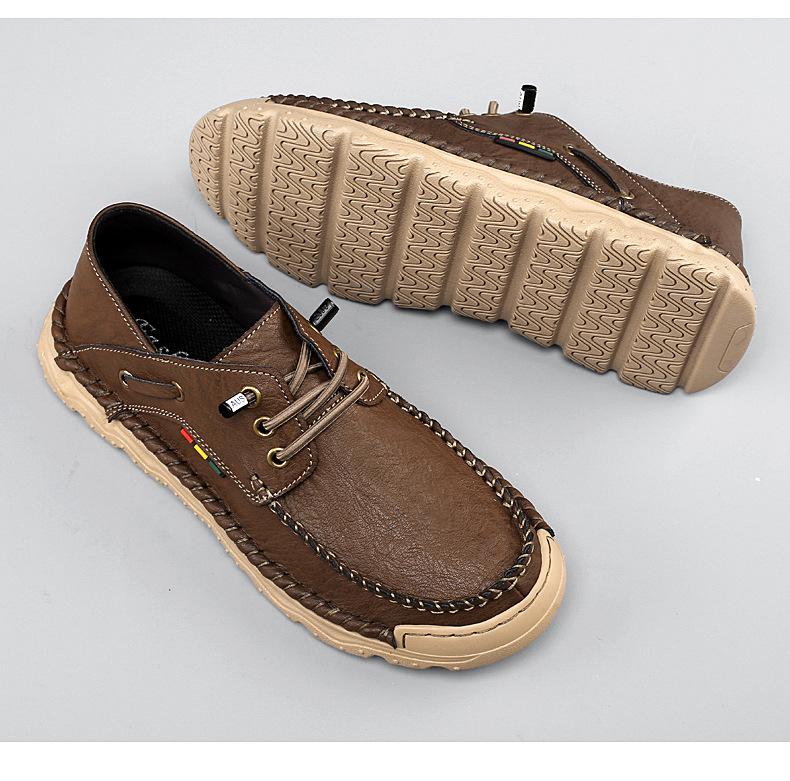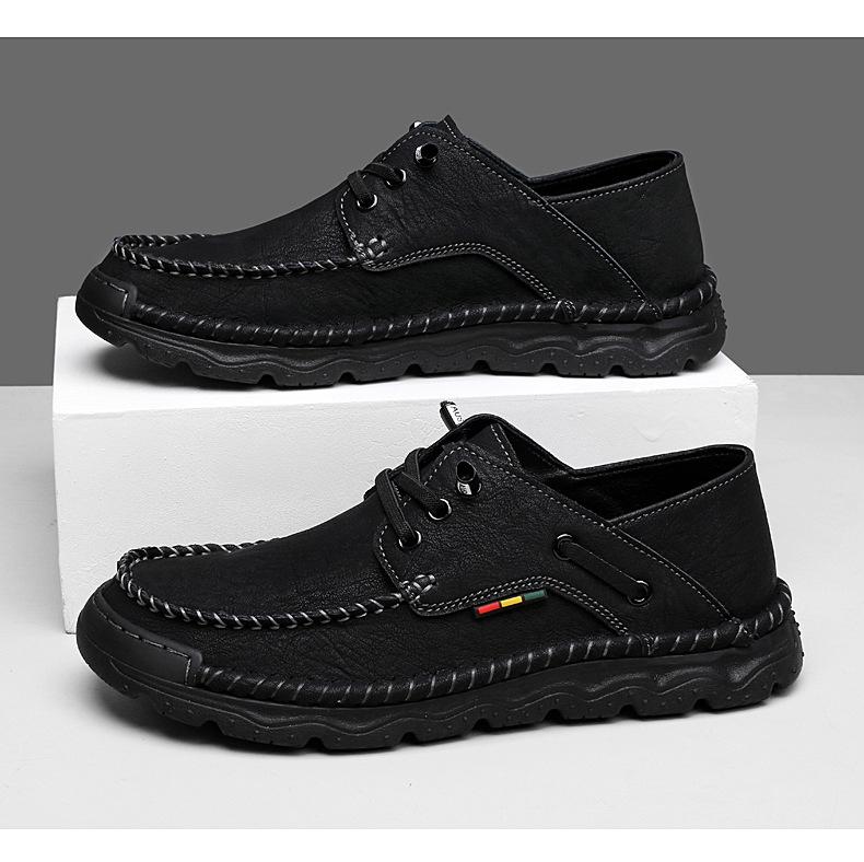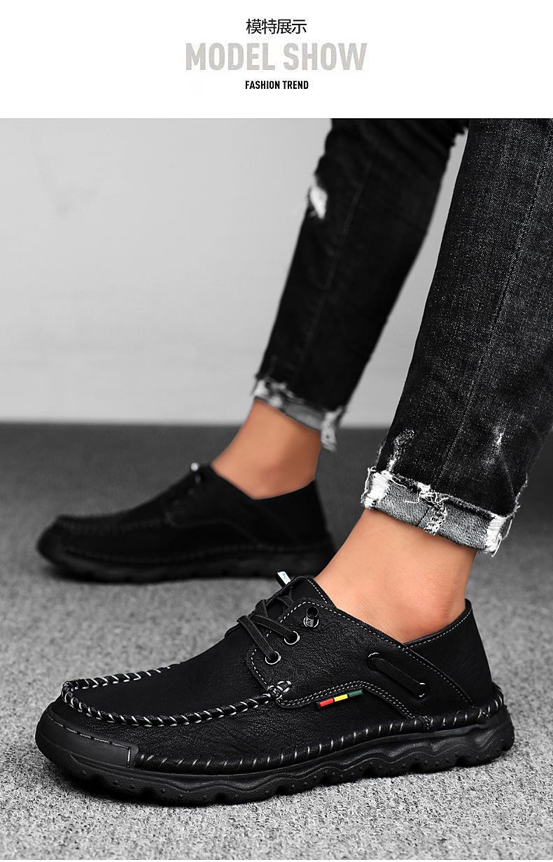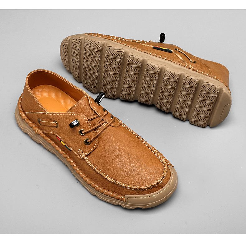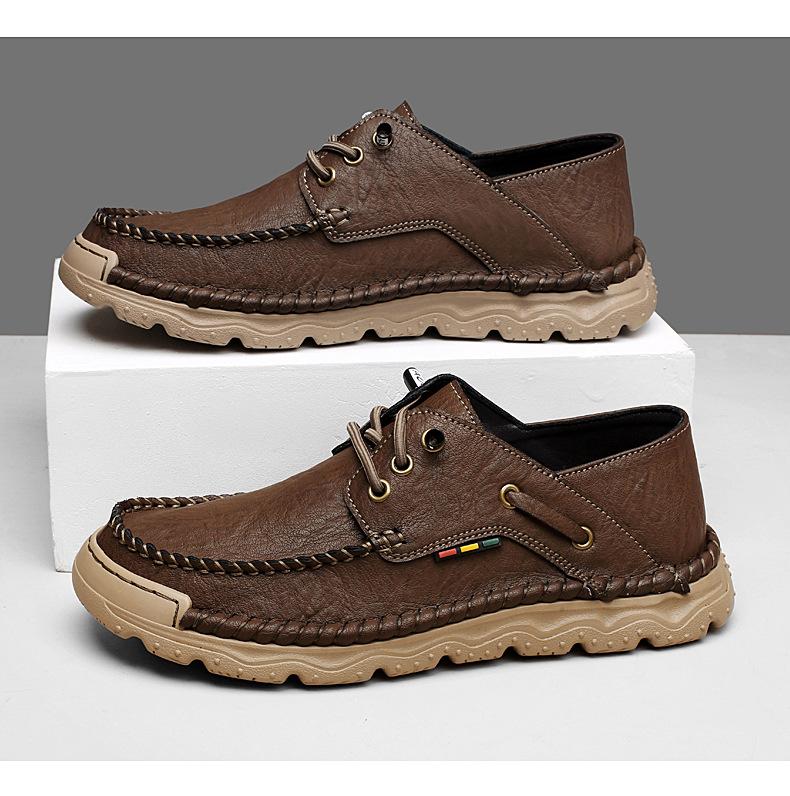 Zapatos casuales de hombre hechos a mano transfronterizos zapatos de cuero para exteriores primavera de corte bajo sin cordones cosidos talla grande mocasines de cuero zapatos de trabajo