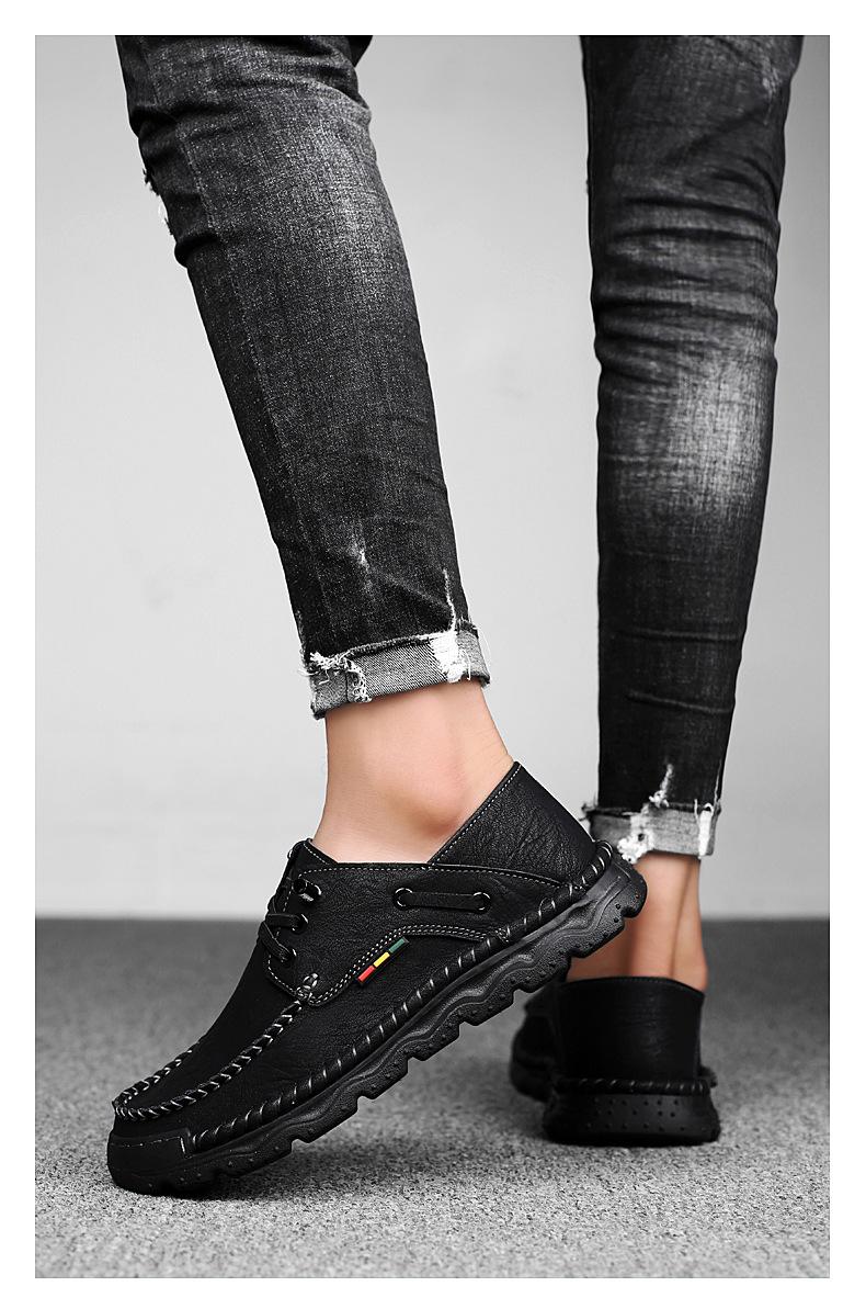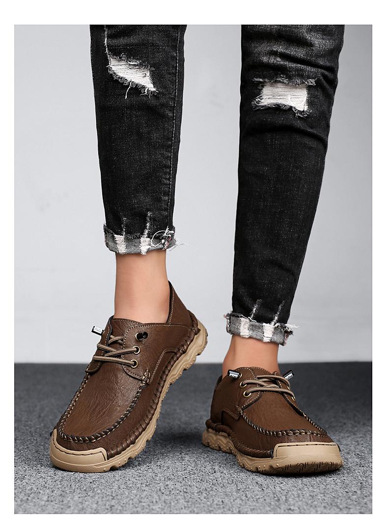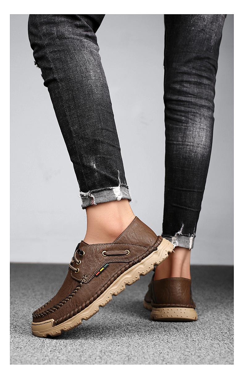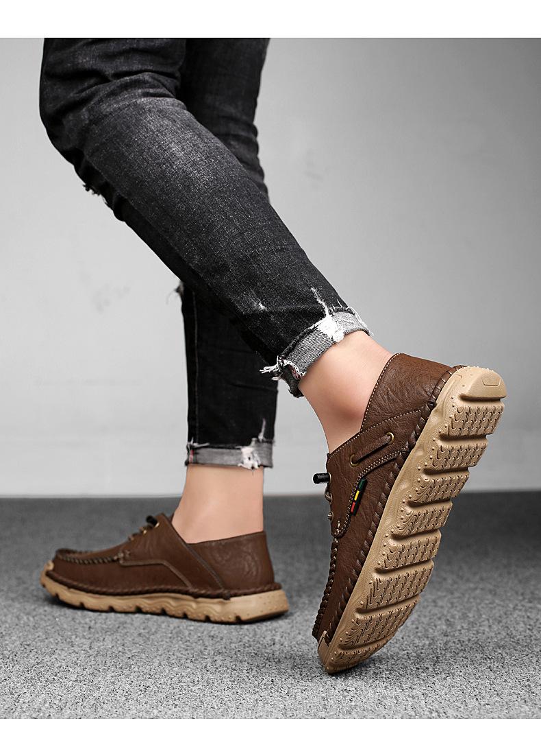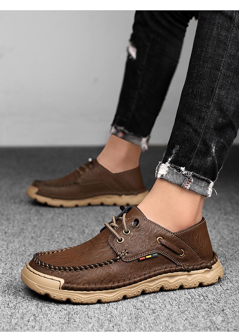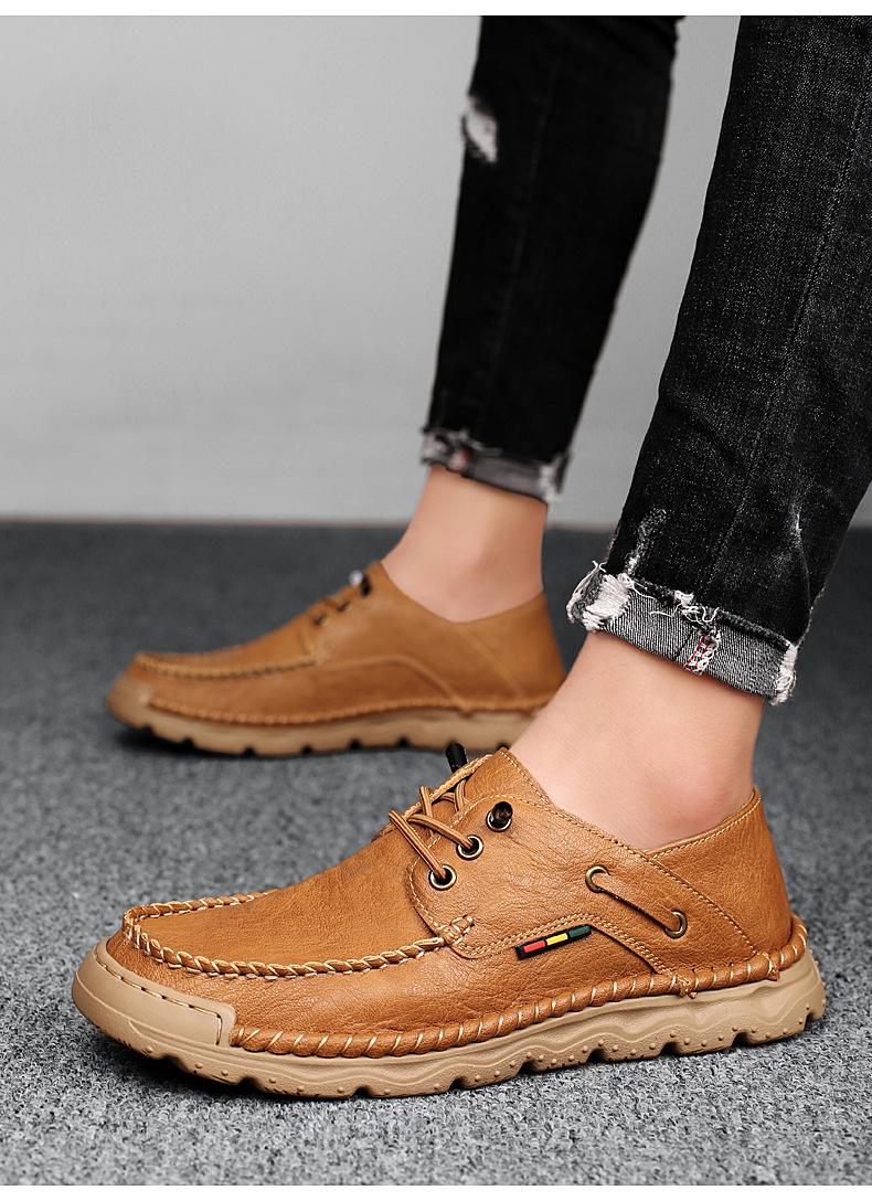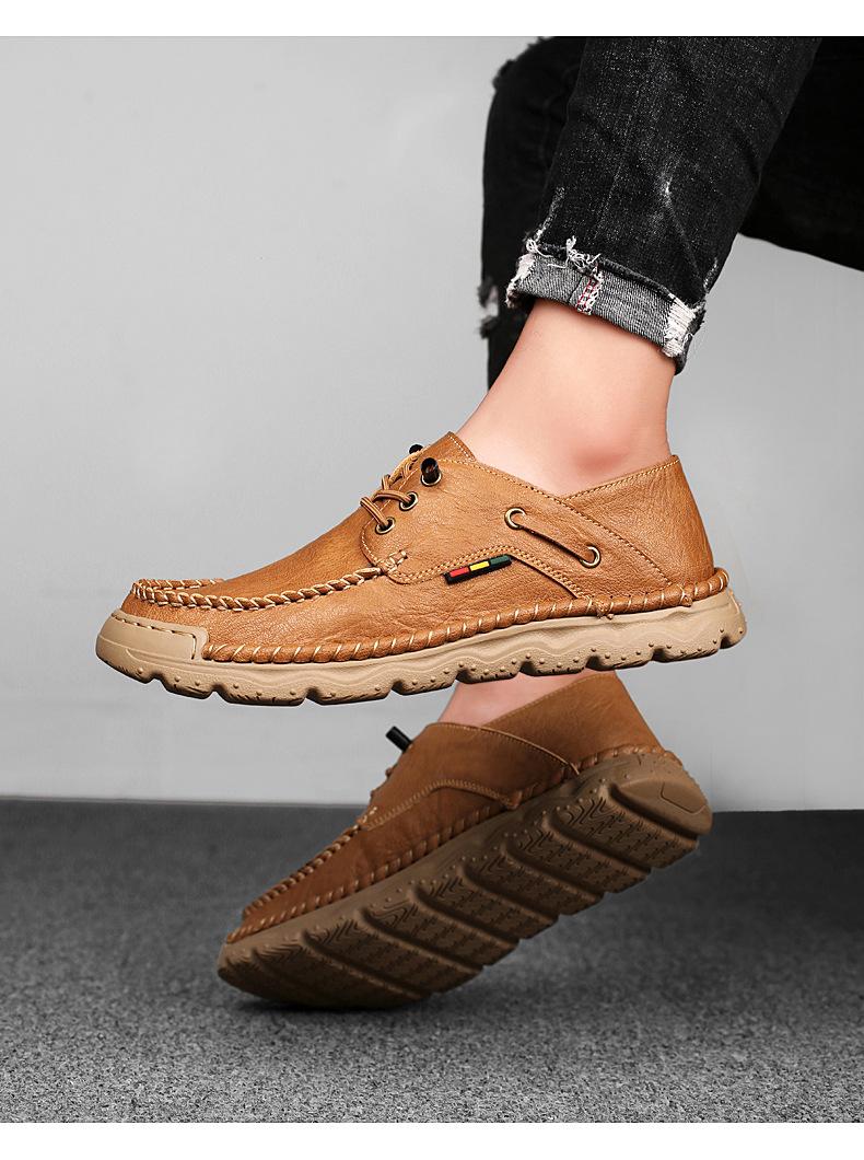 Zapatos casuales de hombre hechos a mano transfronterizos zapatos de cuero para exteriores primavera de corte bajo sin cordones cosidos talla grande mocasines de cuero zapatos de trabajo