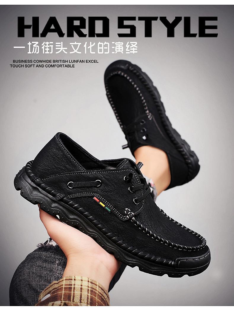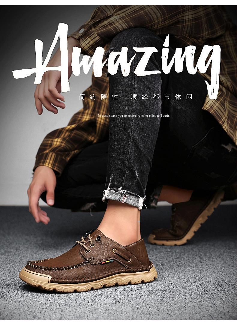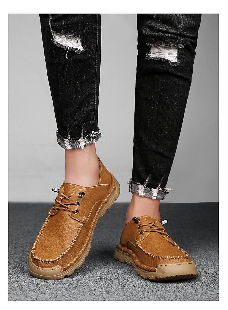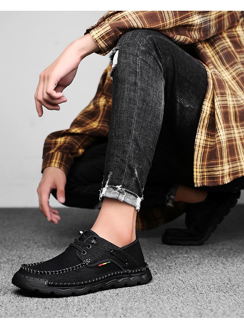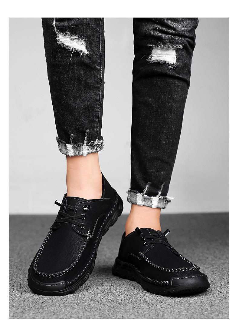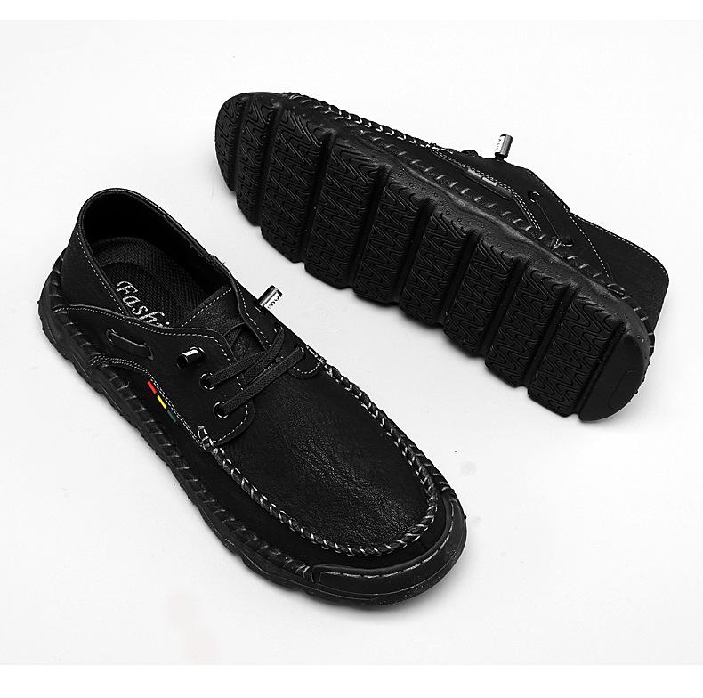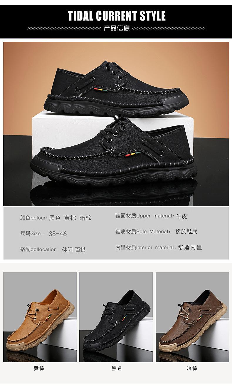 Zapatos casuales de hombre hechos a mano transfronterizos zapatos de cuero para exteriores primavera de corte bajo sin cordones cosidos talla grande mocasines de cuero zapatos de trabajo