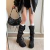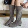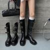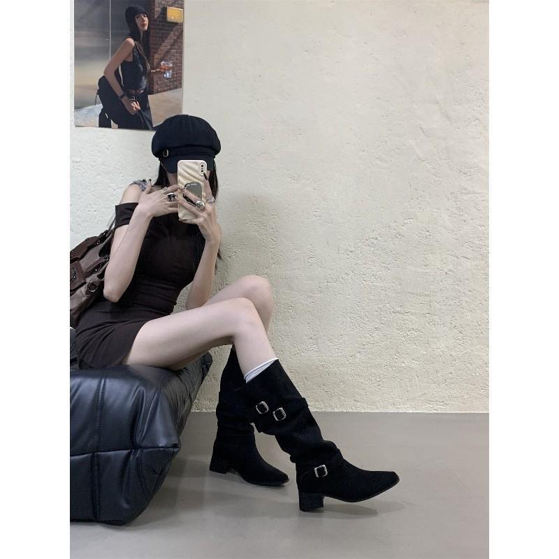 2025 Nuevo Otoño e Invierno Gamuza Punta Cuadrada Tacón Grueso Tacón Medio Botas de Caballero Zapatos de Mujer Hebilla Botas Altas Botas Largas Mujer