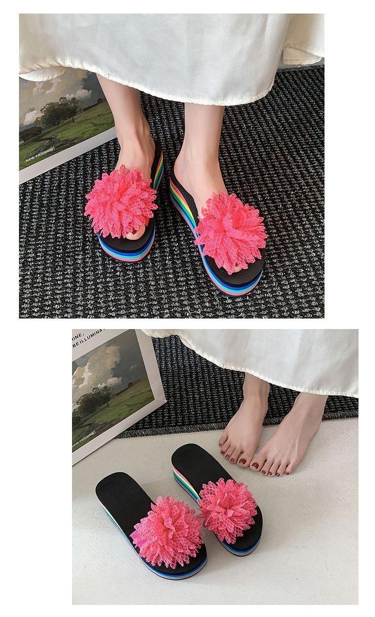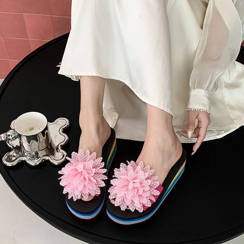 Sandalias y Pantuflas de Playa Ligeras Antideslizantes para Mujer de Moda 2025 Verano Nuevo Estilo Caliente Pantuflas de Flores Dulces de Alto Valor