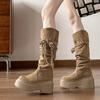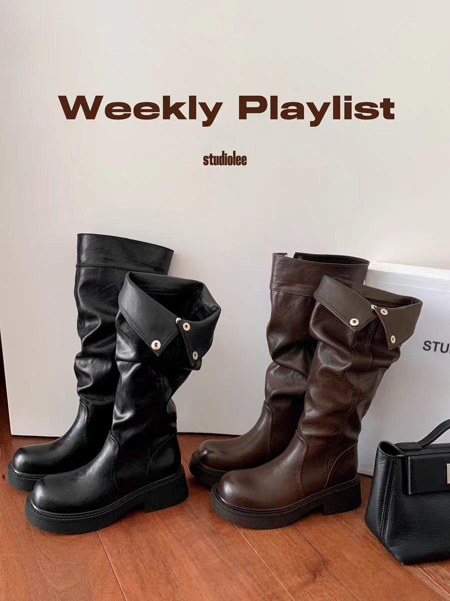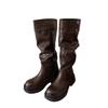 Preventa~Nuevas Botas Slouch Arrugadas Estilo Páramo Dos Usos Plegables Botas Largas Plataforma Tacón Grueso Caña Alta Botas de Caballero