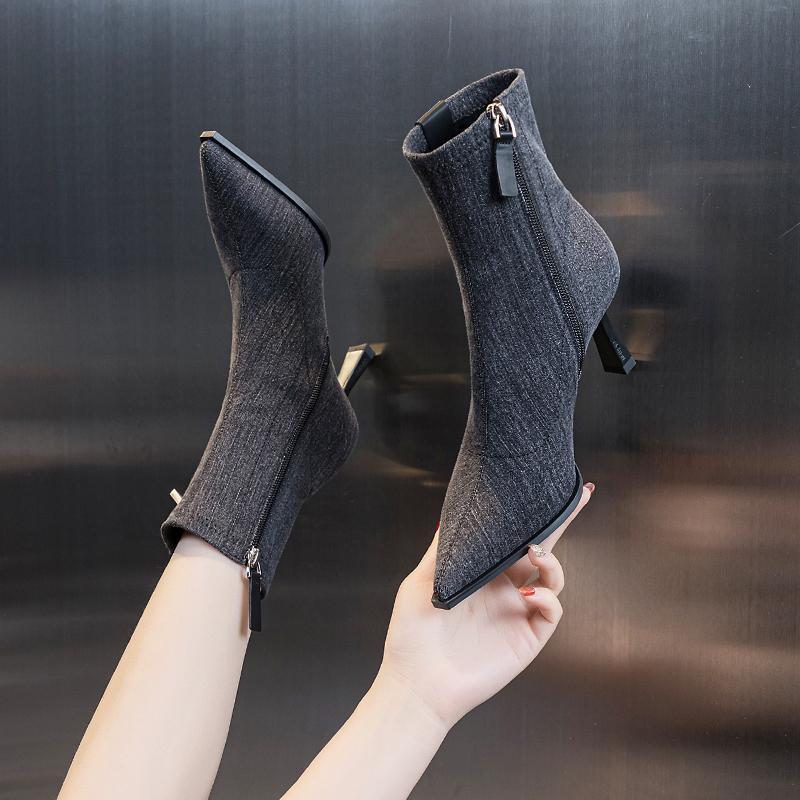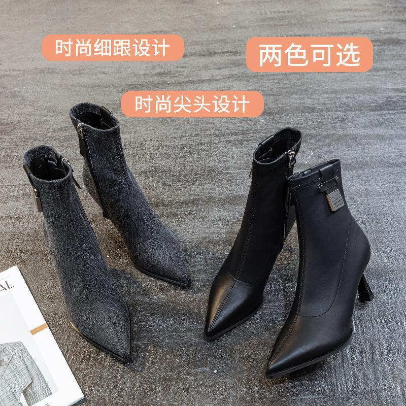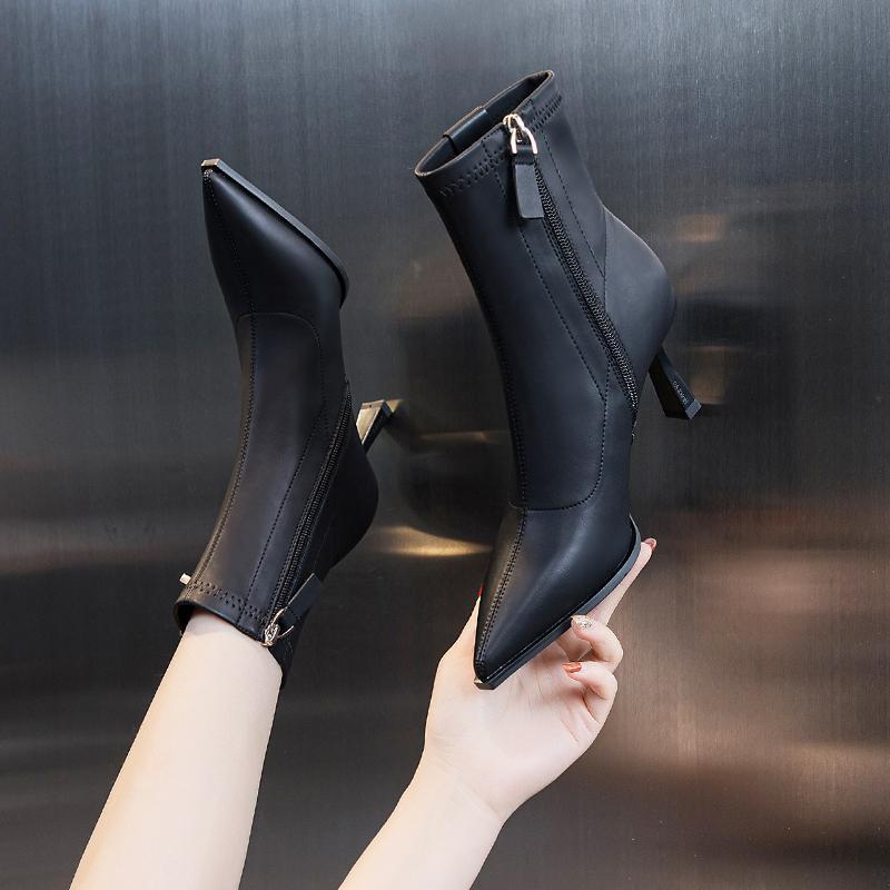 Tacones Altos Mujer Otoño Invierno 2025 Nuevo Estilo Stiletto Punta Afilada Adelgazantes Botines al Tobillo Moda Versátil Media Caña Elásticos Botas Individuales