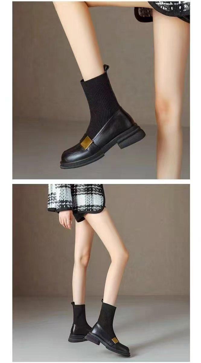 Botas ajustadas de punto retro para mujer 2025 Otoño/Invierno Nuevos mocasines de tacón grueso Botines Botas Martin Tacón medio Botas calcetín