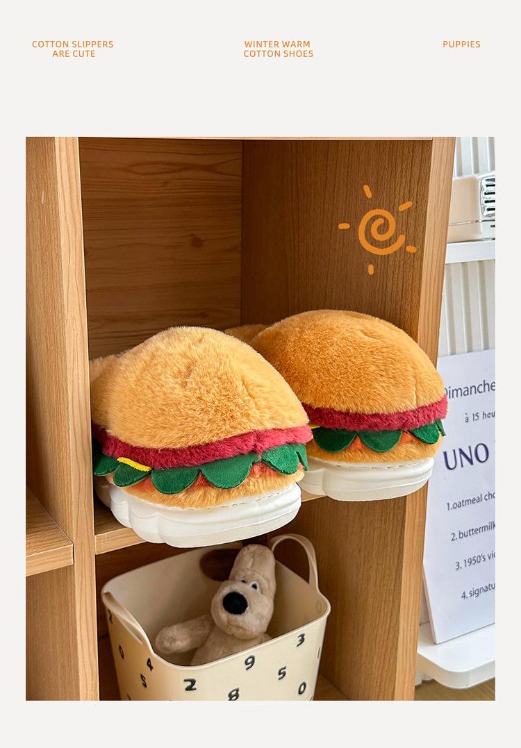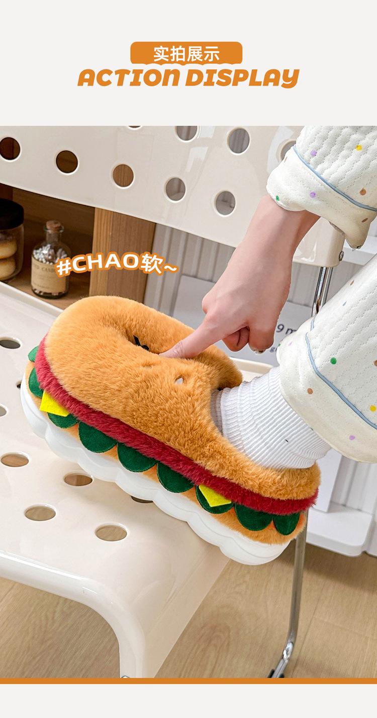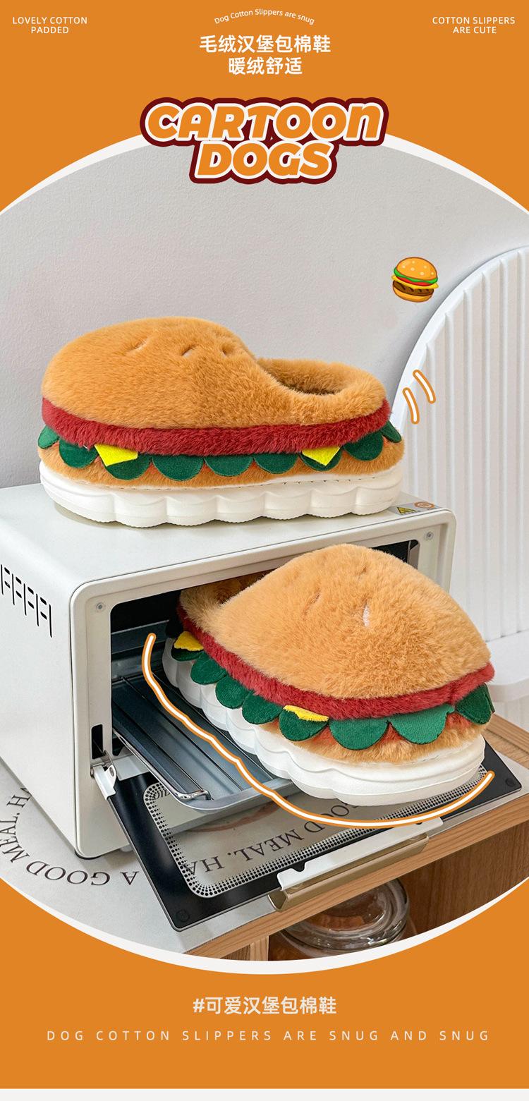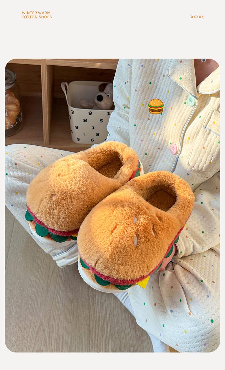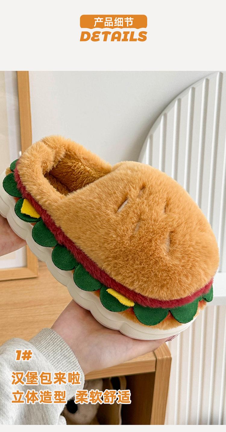 Pantuflas de Algodón de Hamburguesa para Hombre Invierno Nuevo Hogar Lindo Tacón Completo Engrosado Cálido Estilo de Pareja Peludas de Felpa Zapatos de Algodón