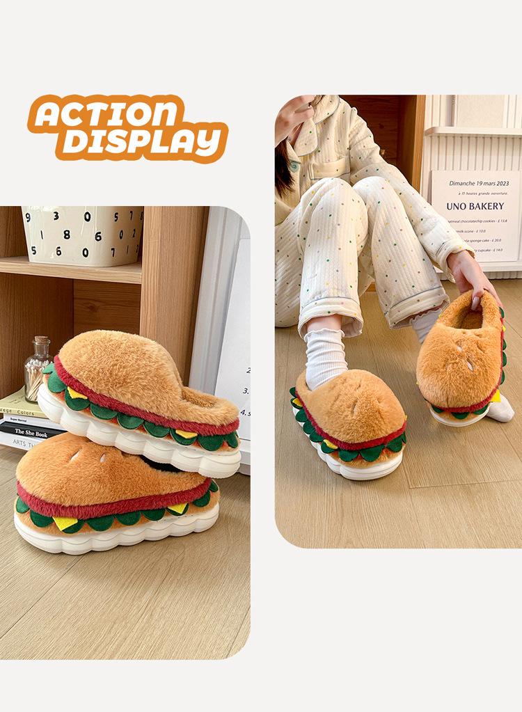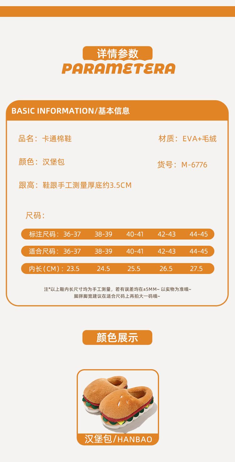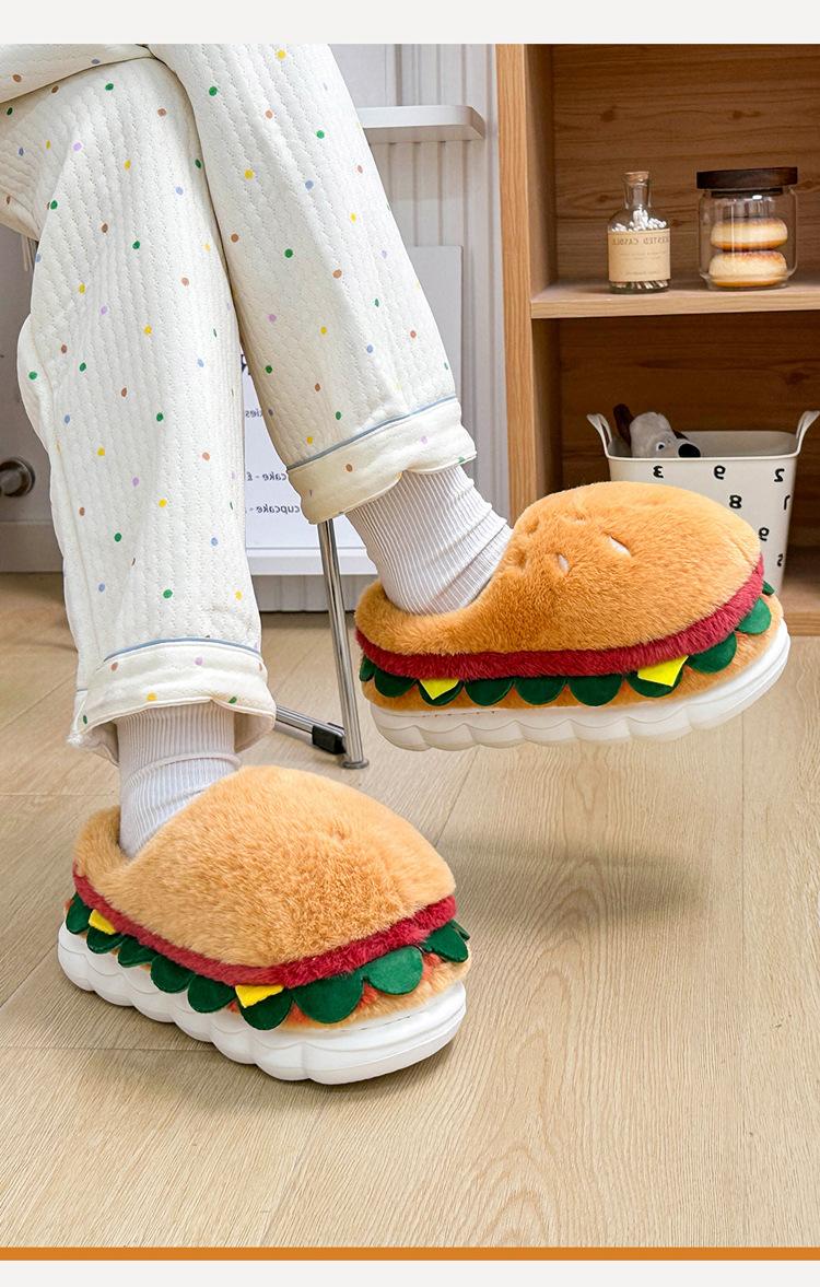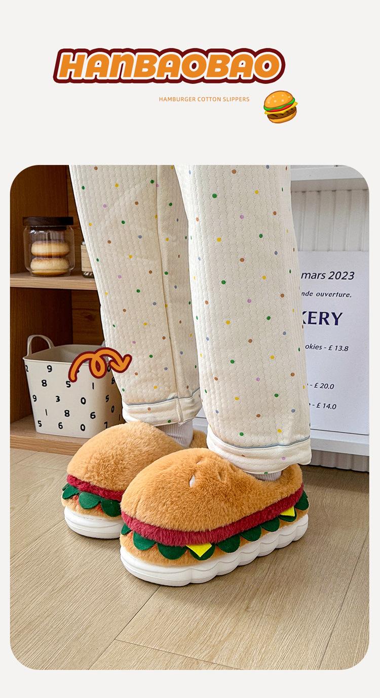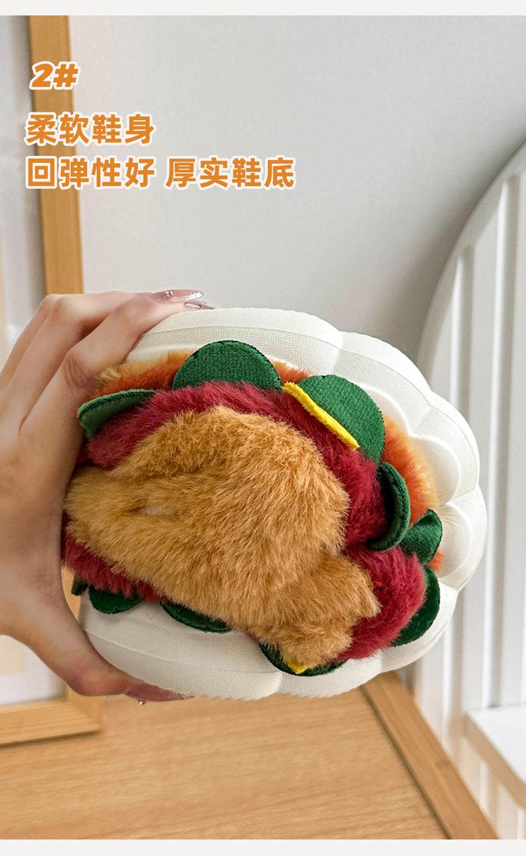 Pantuflas de Algodón de Hamburguesa para Hombre Invierno Nuevo Hogar Lindo Tacón Completo Engrosado Cálido Estilo de Pareja Peludas de Felpa Zapatos de Algodón