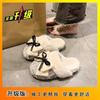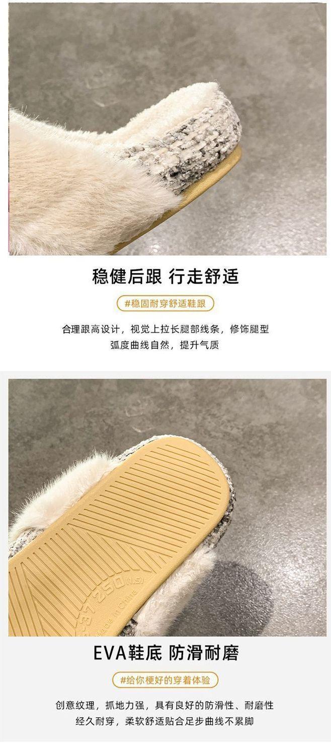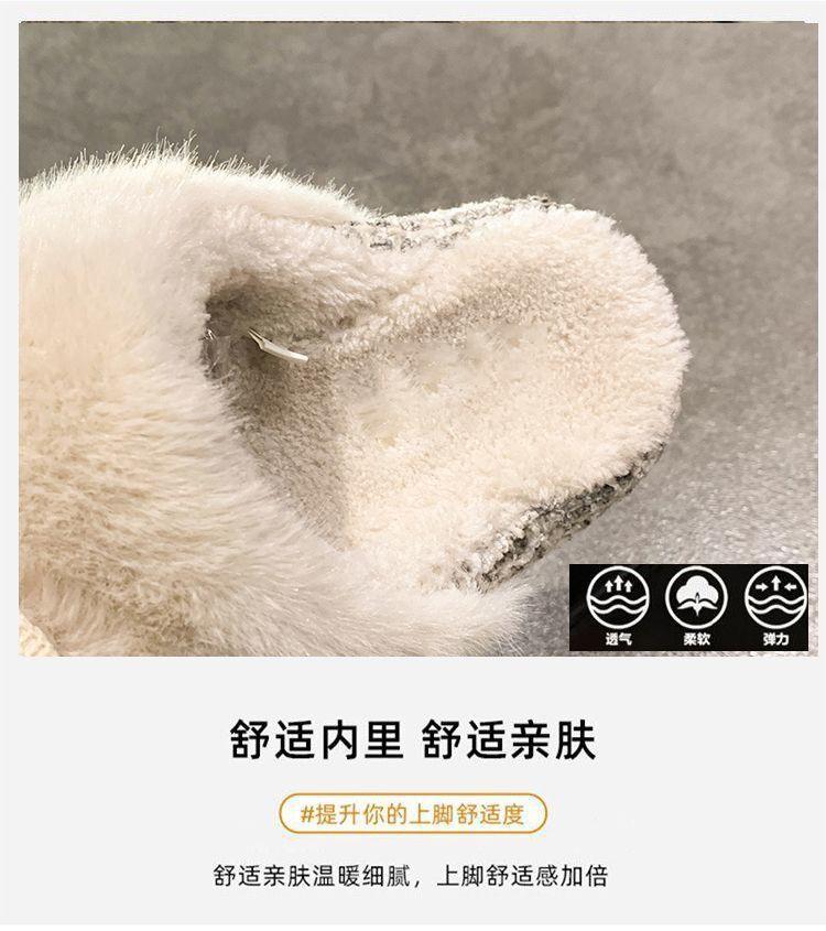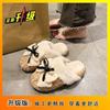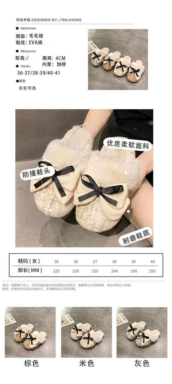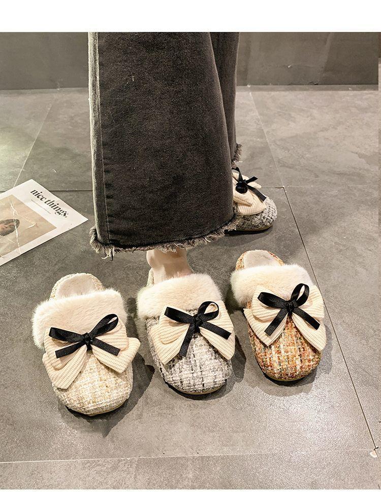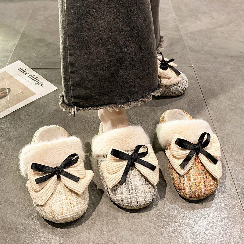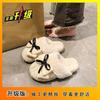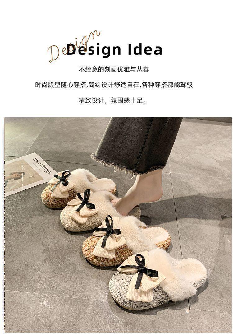 Pantuflas de Algodón Cómodas para el Hogar para Mujer Estilo de Hada Lazo Pantuflas Peludas para Exterior 2025 Otoño e Invierno Nuevo Versátil de Suela Gruesa
