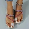 Verano Nuevo Exportación Talla Grande Planas Fondo Zapatillas de Pedrería para Mujer Europeas y Americanas Textura Metálica Uso Exterior Sandalias de Playa Ebay