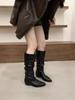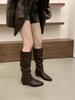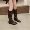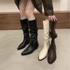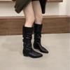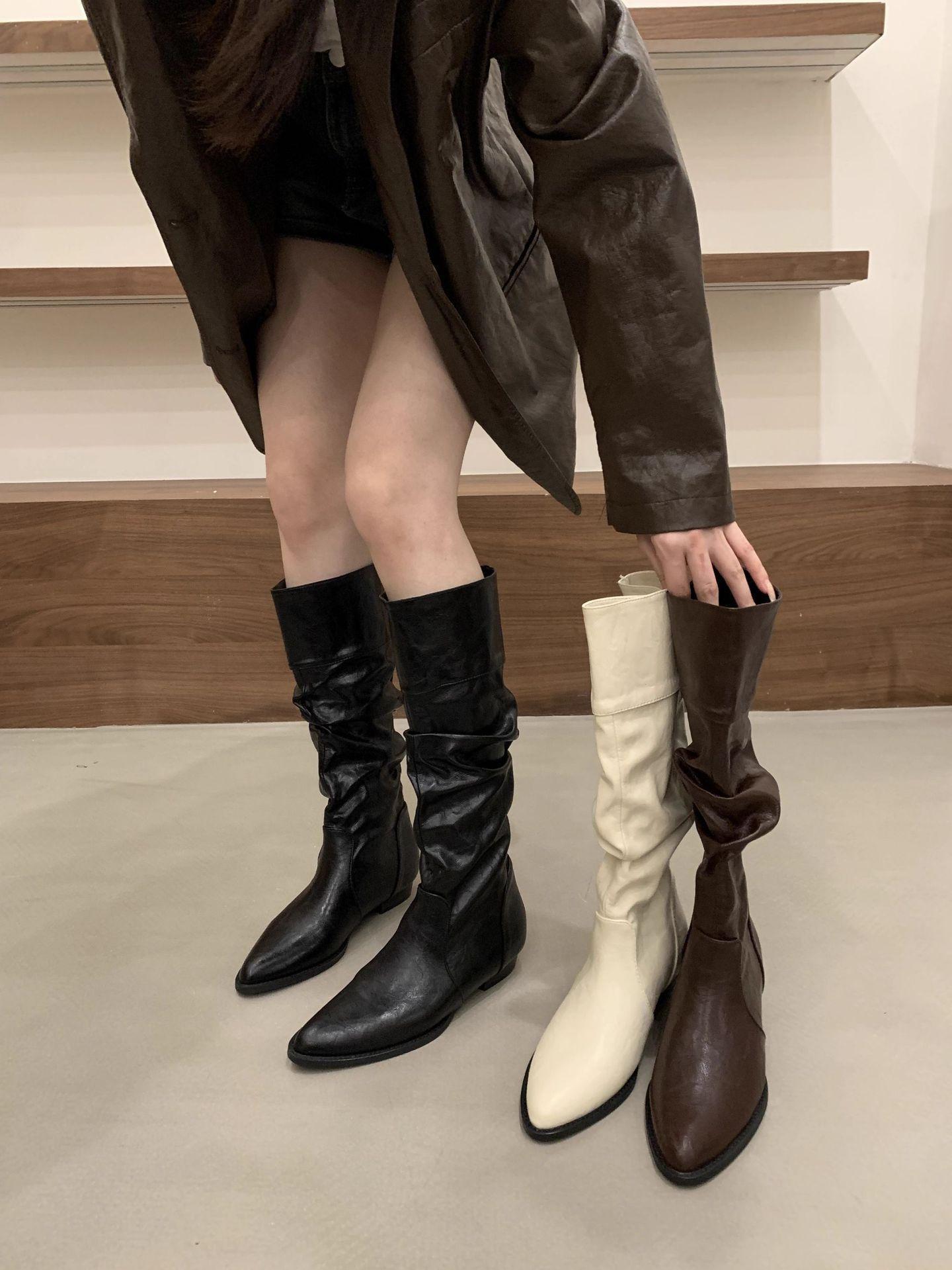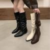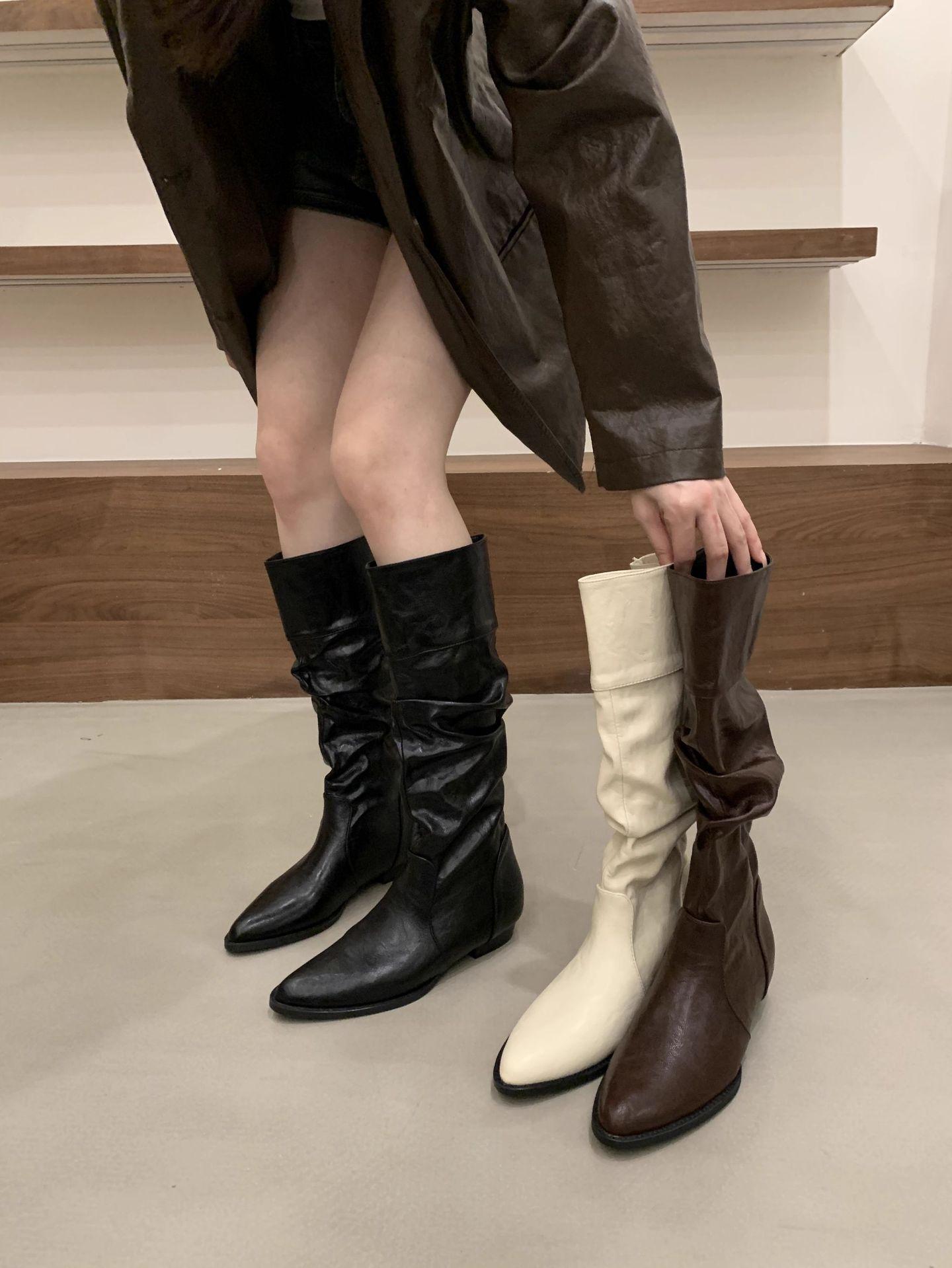 Botas Cortas de Tacón Oculto Blancas Slouch de Media Caña Tipo Caballero Zapatos de Mujer Otoño/Invierno 2025 Botas Largas Adelgazantes