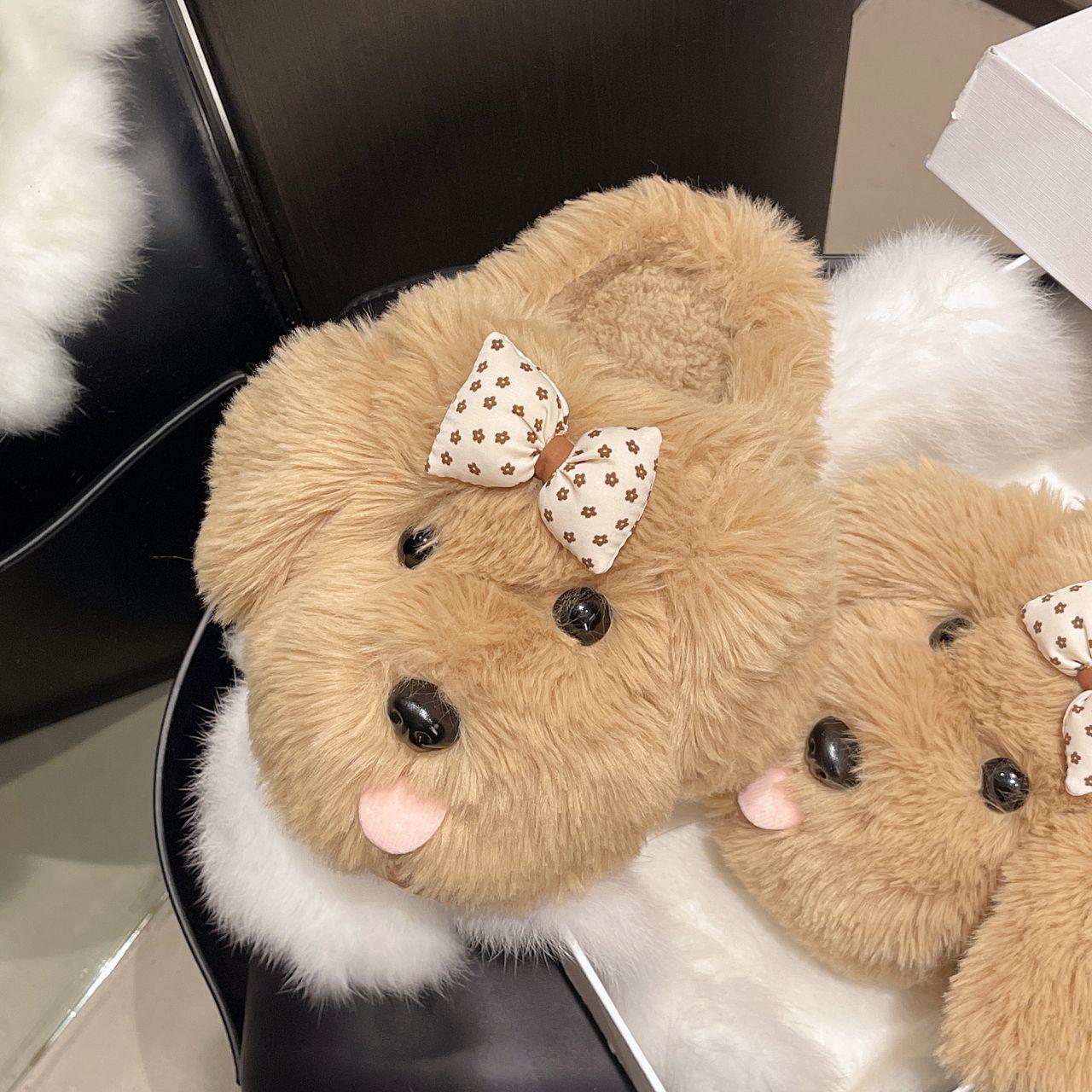 Pantuflas Peludas para Casa Mujer 2025 Otoño/Invierno Nuevo Exterior Lindo Femenino Cachorro de Dibujos Animados Pantuflas Medias Cerradas
