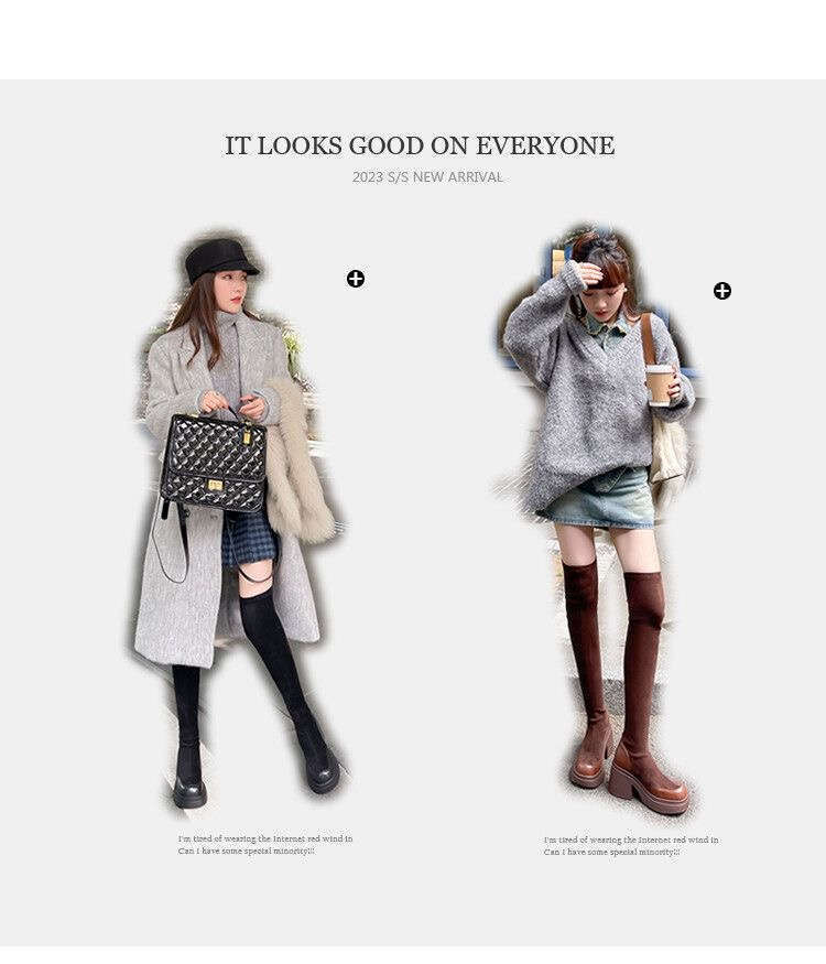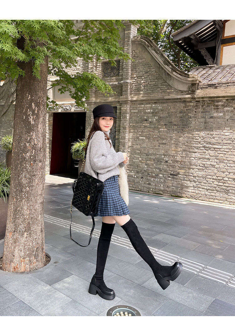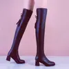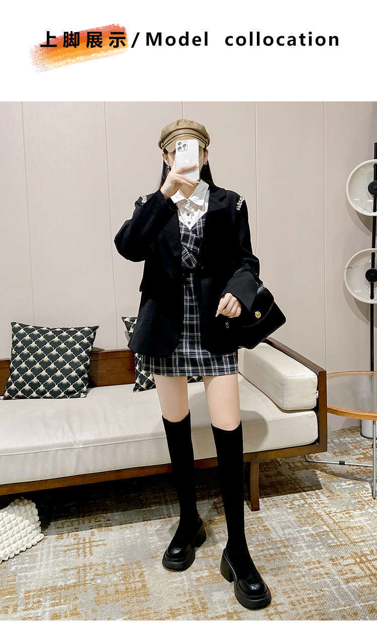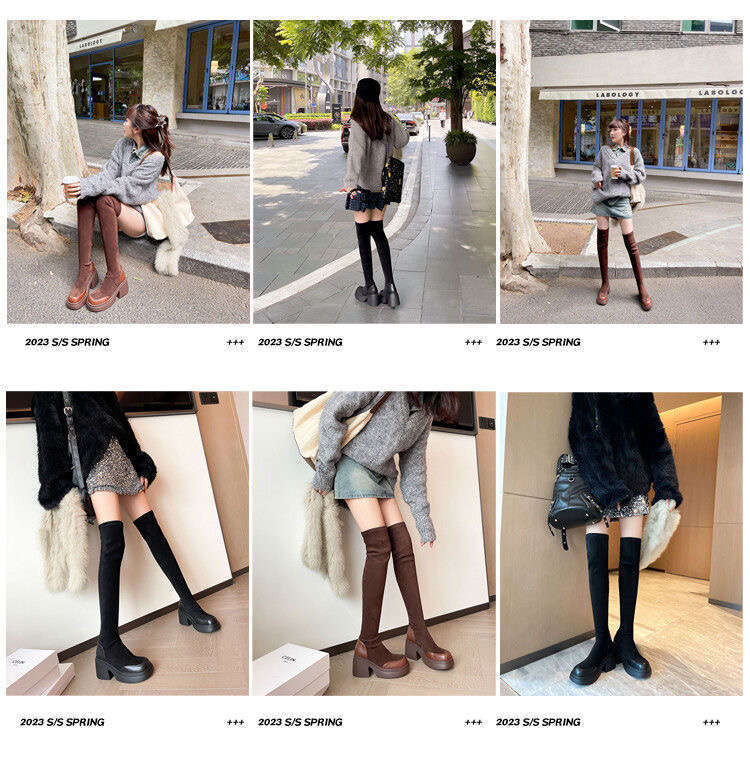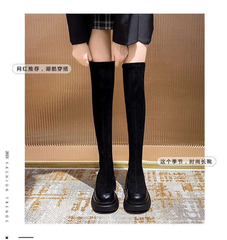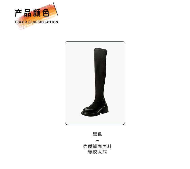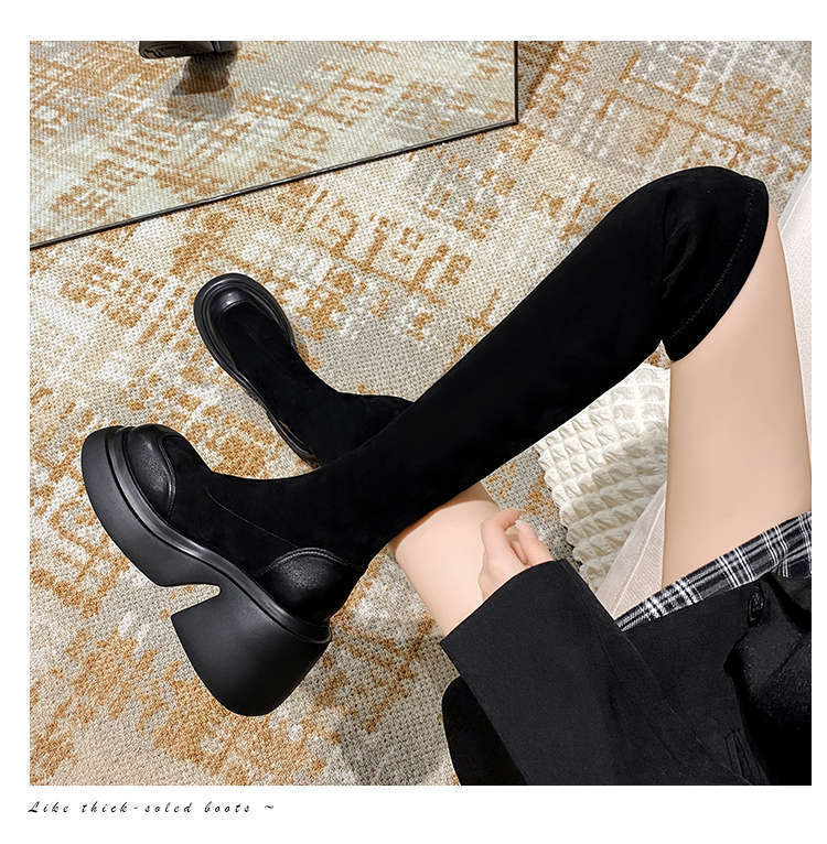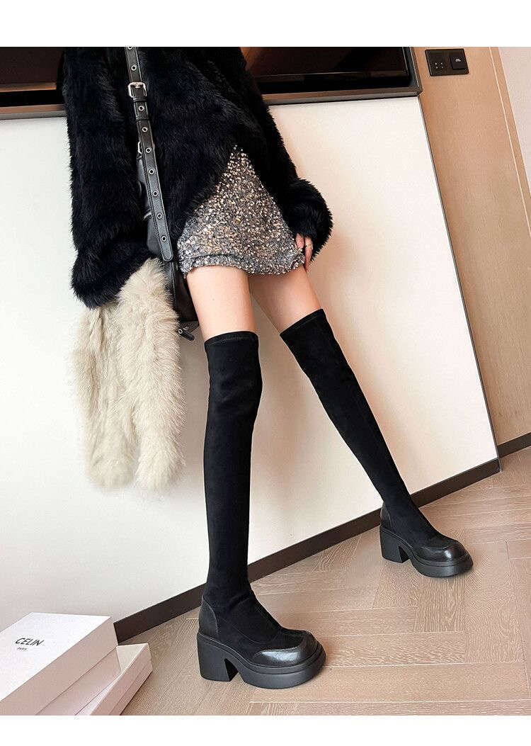Botas Stretch de Gamuza Negra para Mujer 2025 Invierno Nuevo Tacón Grueso Chunky Botas Sobre la Rodilla Adelgazantes Botas tipo Calcetín Botas Largas