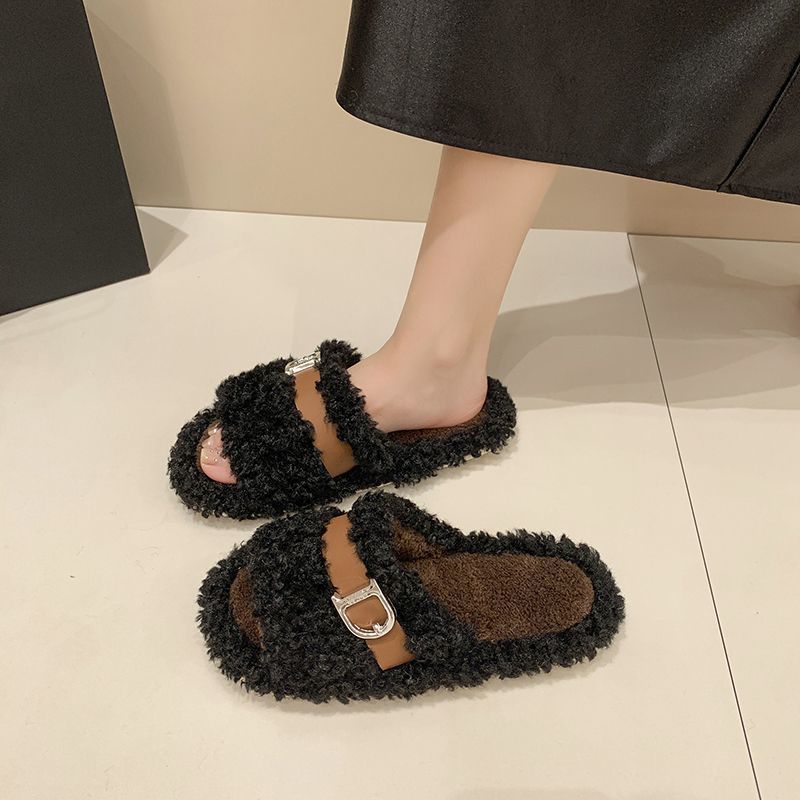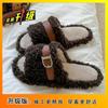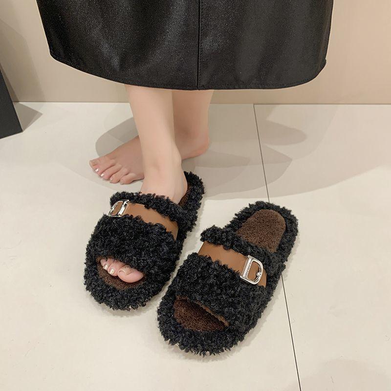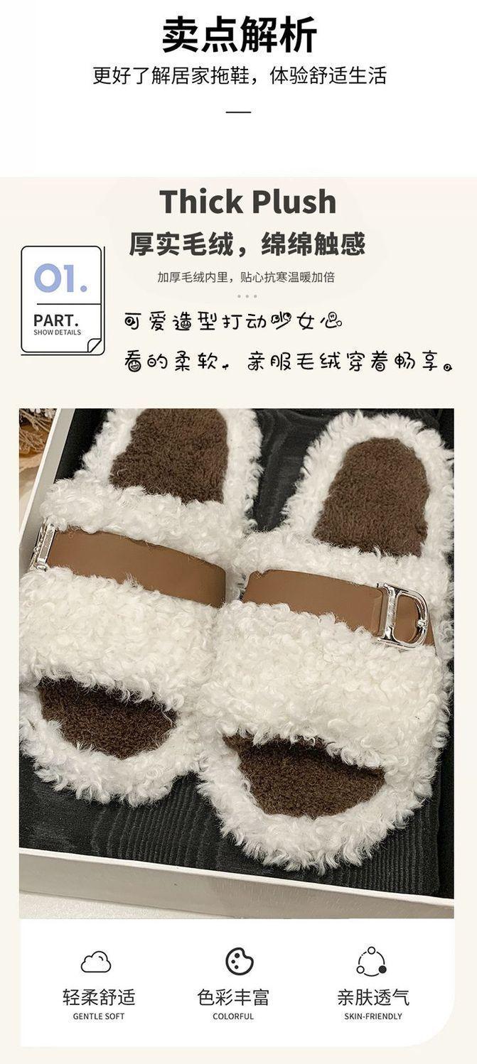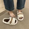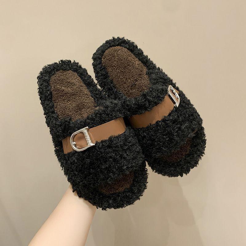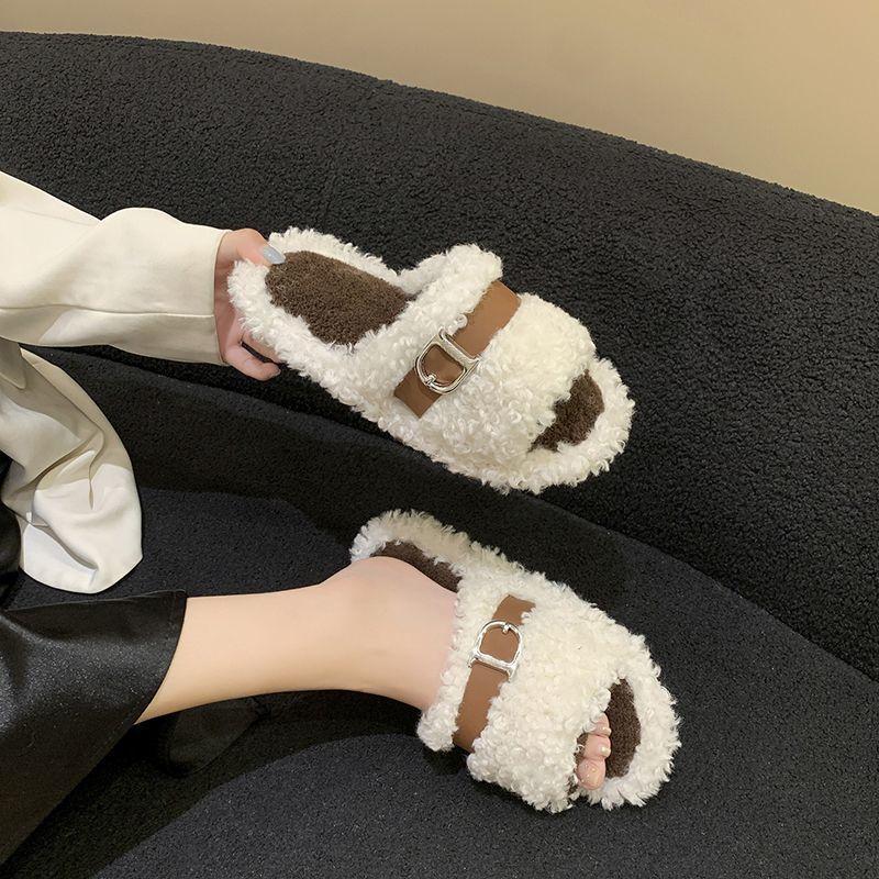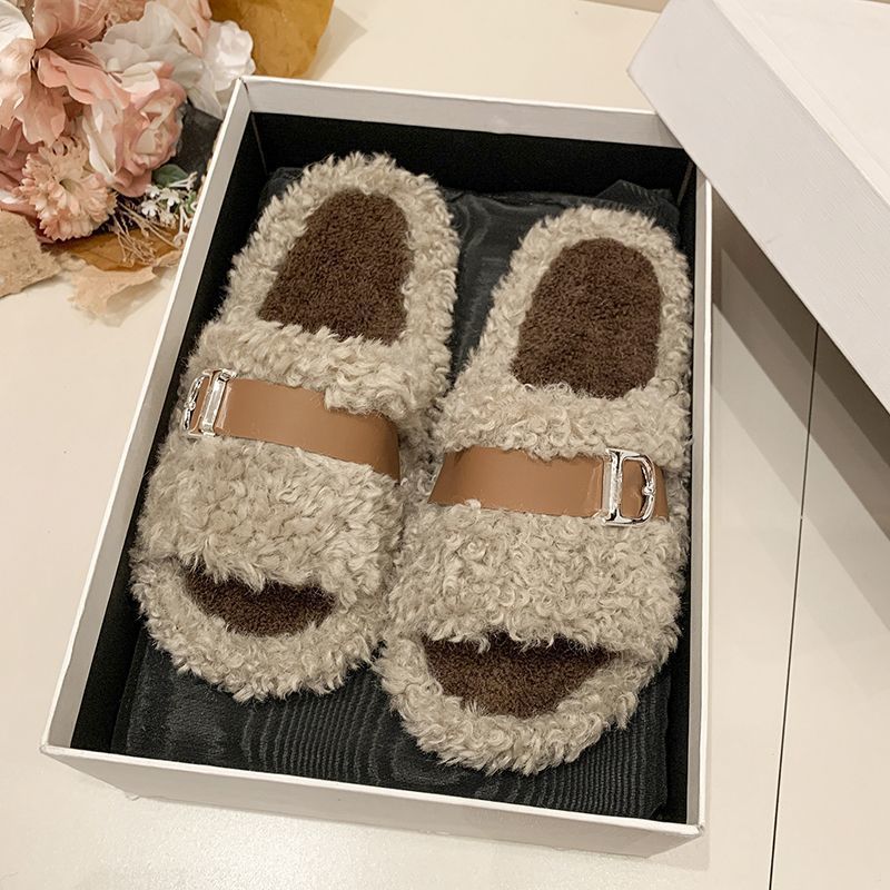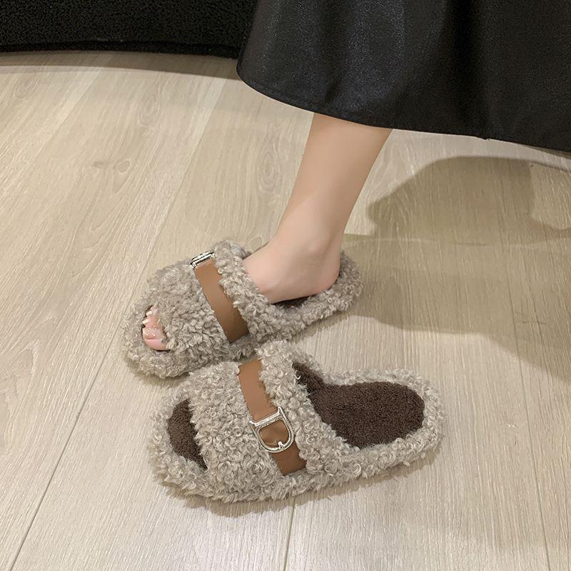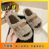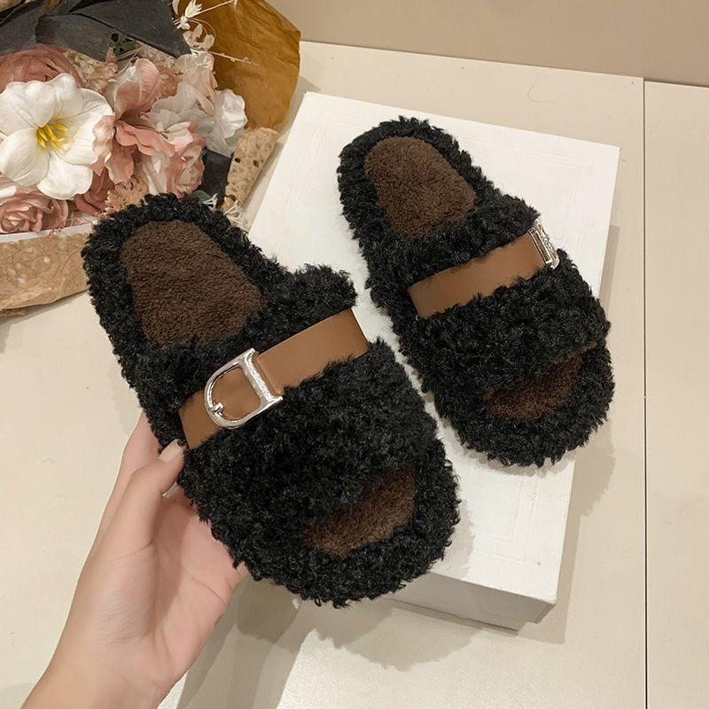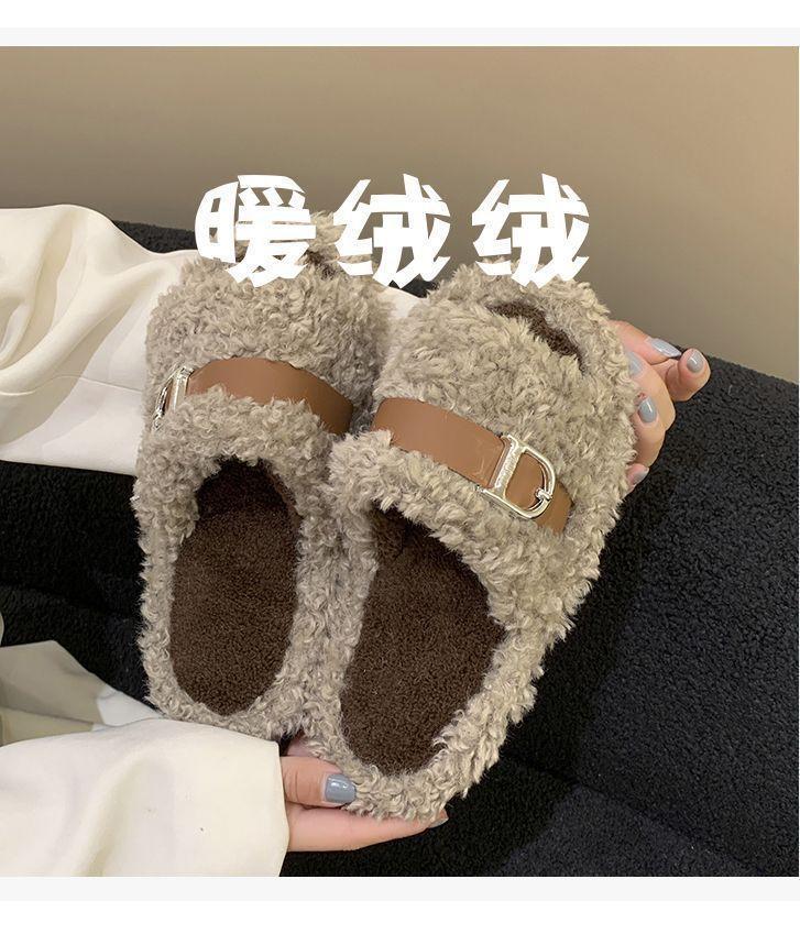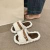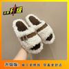 Pantuflas de Algodón Cómodas de Una Tira para Niñas Retro Ropa Exterior Moda Pantuflas Peludas 2025 Otoño/Invierno Nueva Moda Versátil