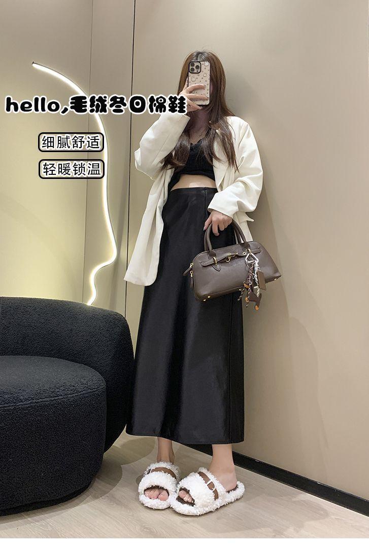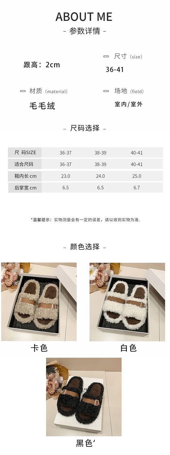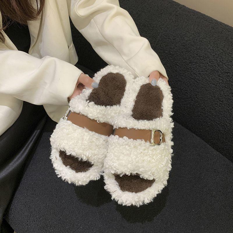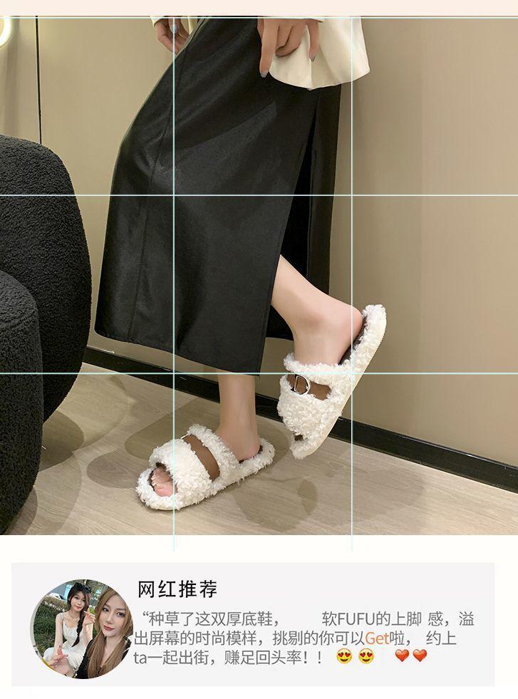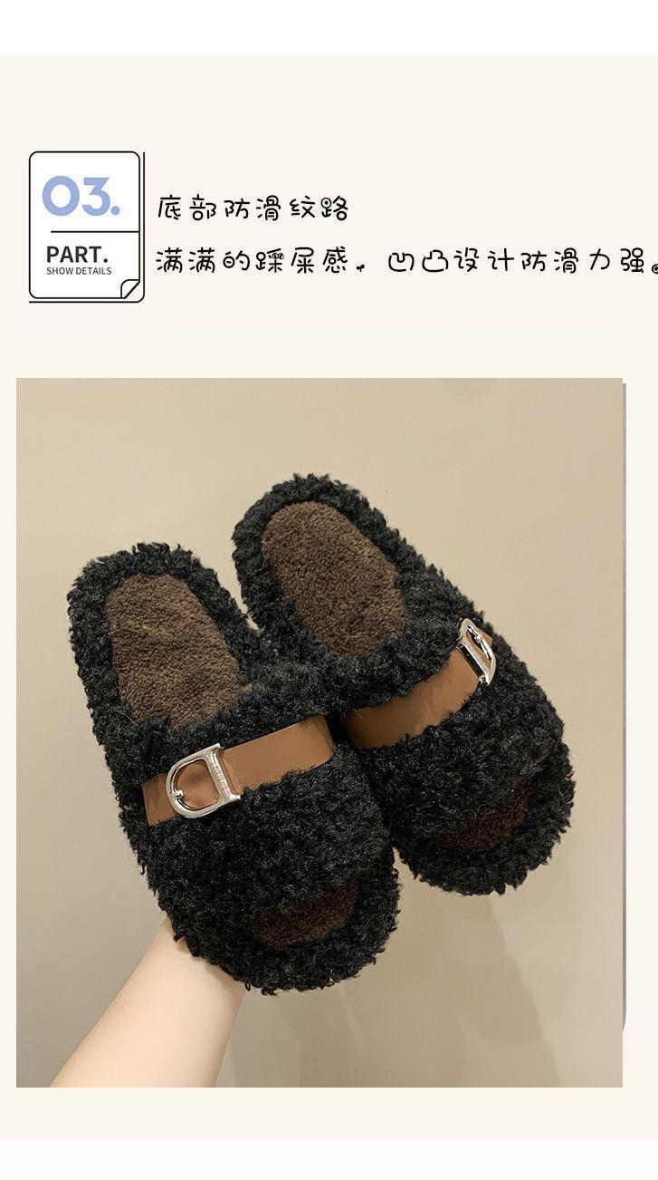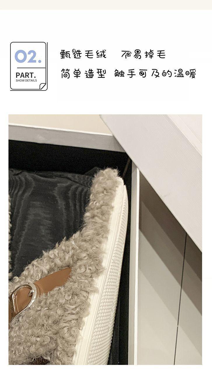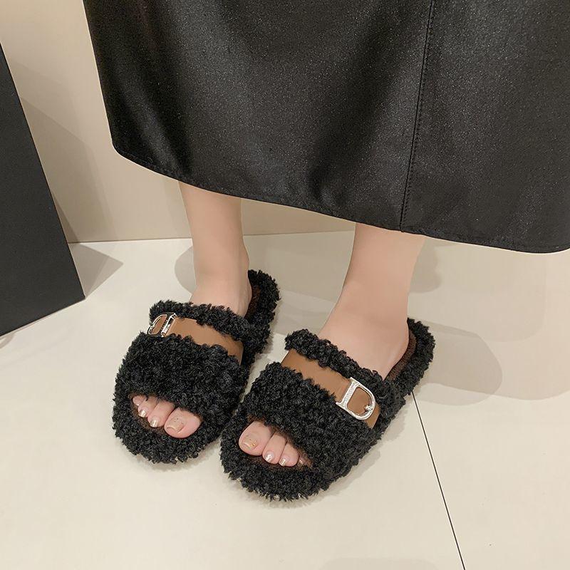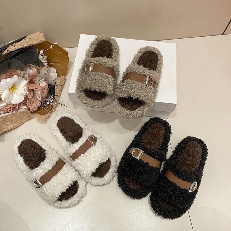 Pantuflas de Algodón Cómodas de Una Tira para Niñas Retro Ropa Exterior Moda Pantuflas Peludas 2025 Otoño/Invierno Nueva Moda Versátil