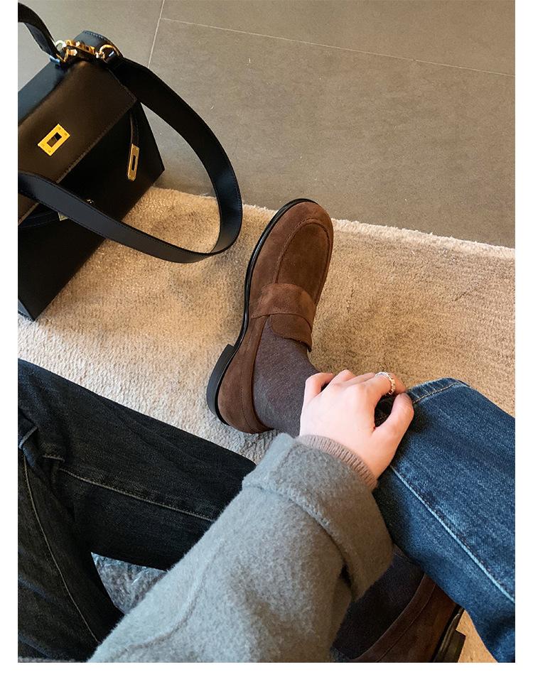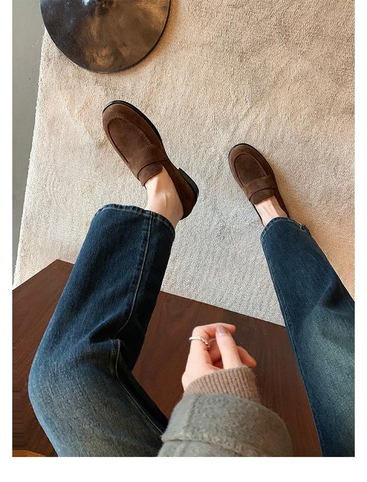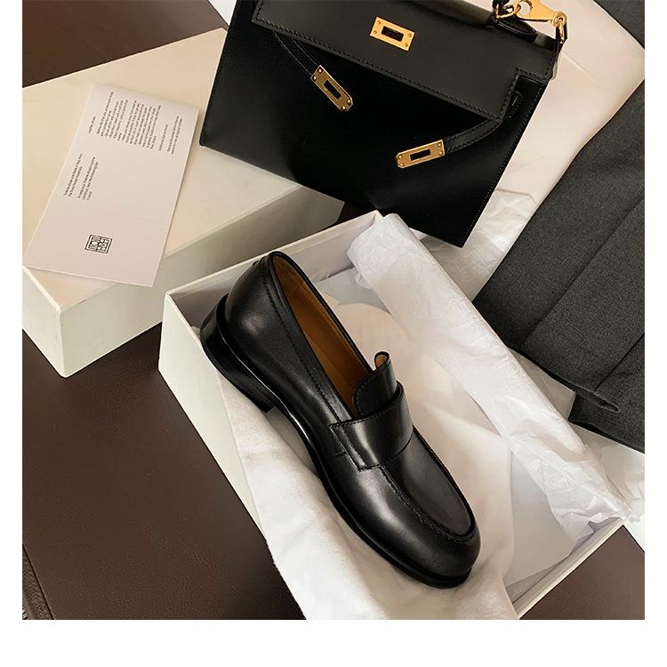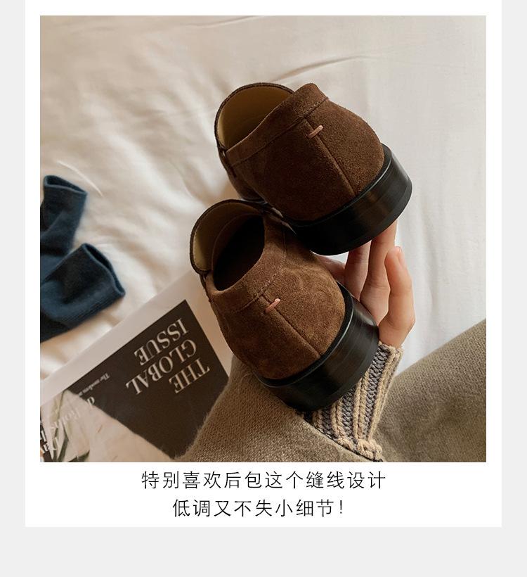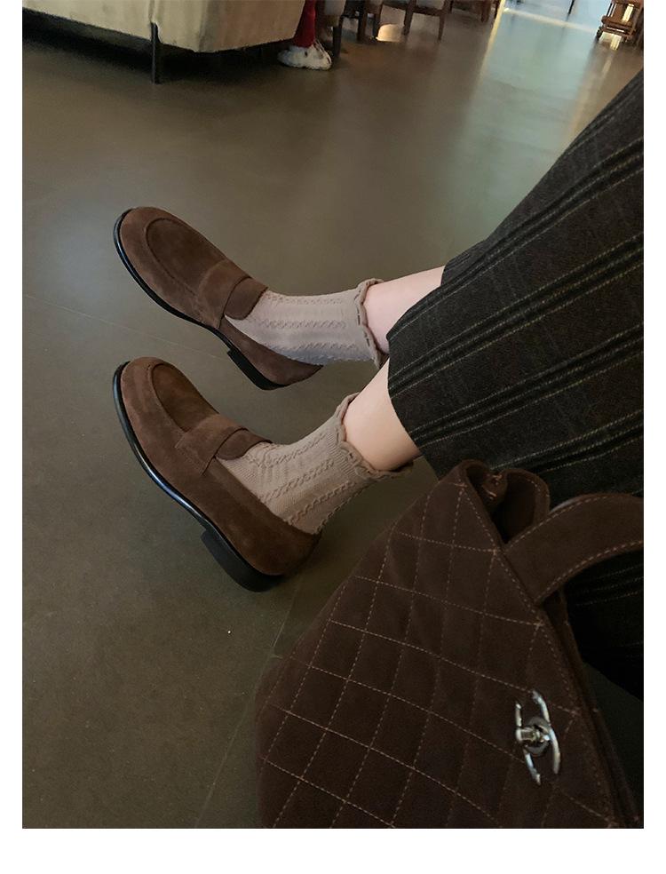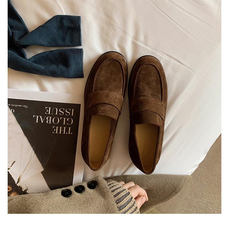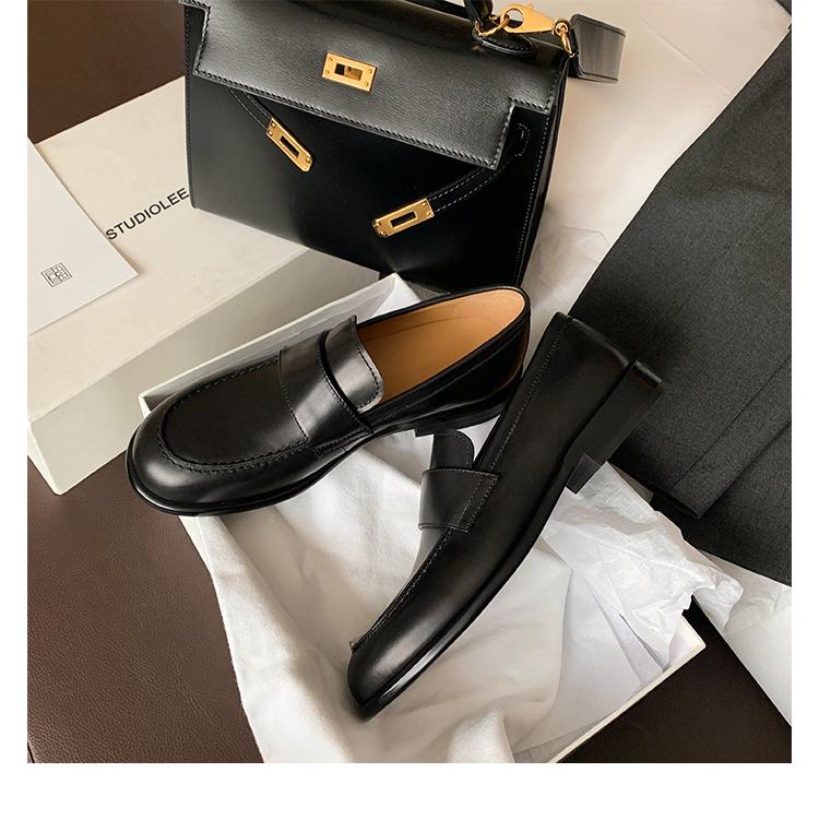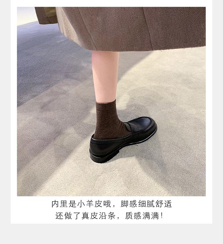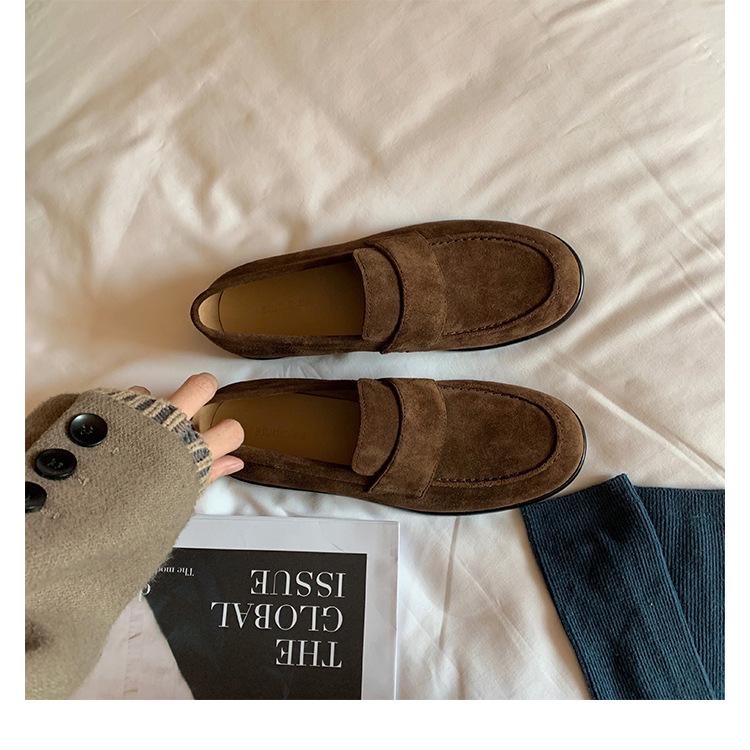 Piel de oveja Estilo Mamá Uva Vintage Estilo Británico Tacón Grueso Zapatos Pequeños de Cuero Mujer Slip-on Perezosos Cuero Genuino Suela Gruesa Mocasines